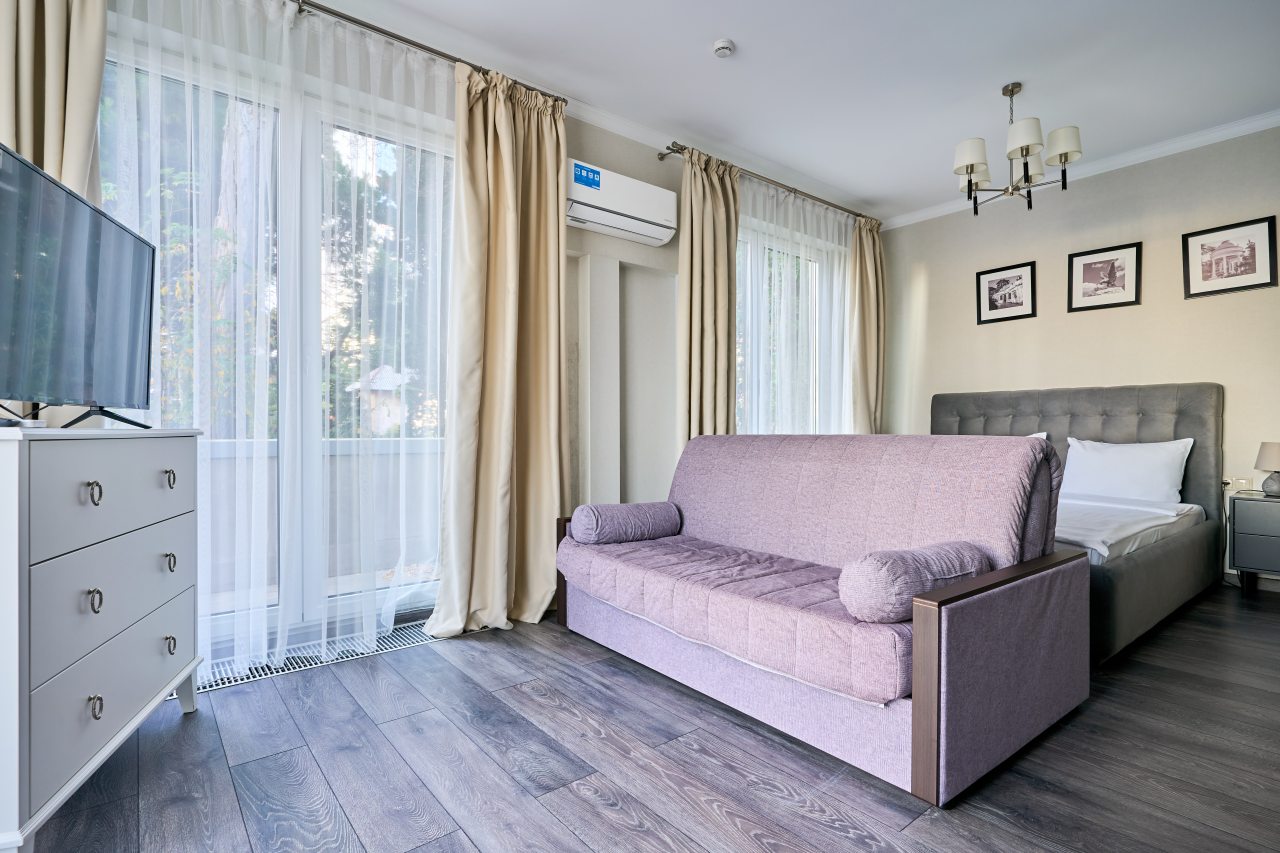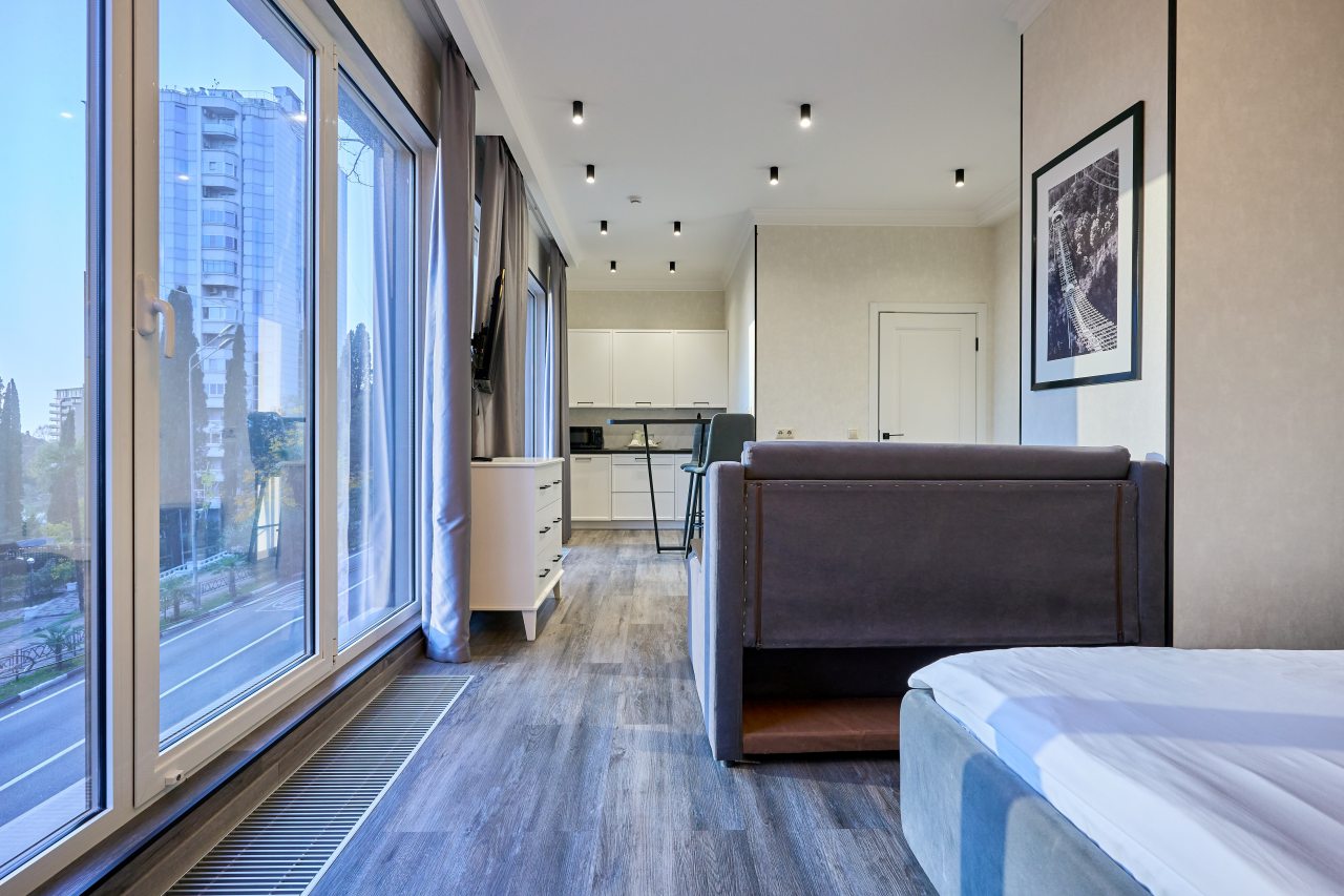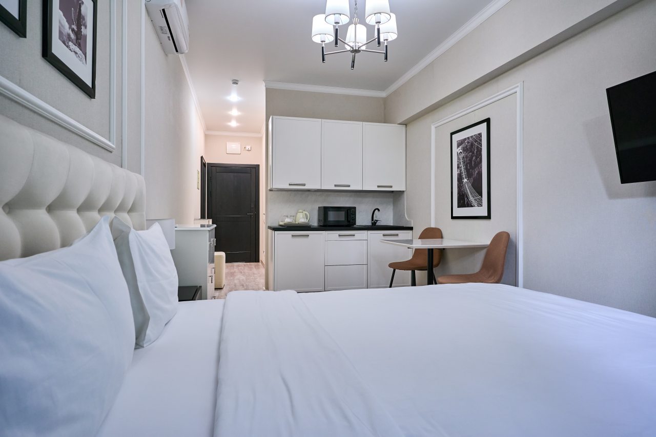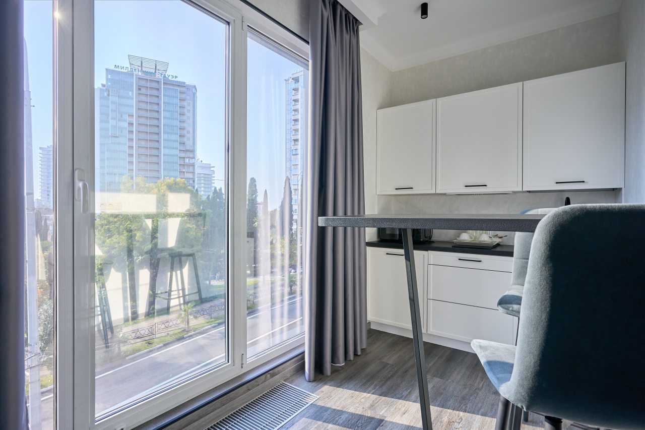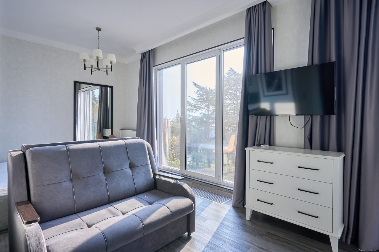Бутик-отель хорошенький. Находится в центре Сочи. Недалеко пляж, канатная дорого, Дендрарий. В другие места также легко добраться при желании. В номере приятная кровать, необходимая техника. Даже стиральная машинка и СВЧ-печь была, что просто супер. Завтрак на выбор из нескольких блюд. Еда вкусная.
