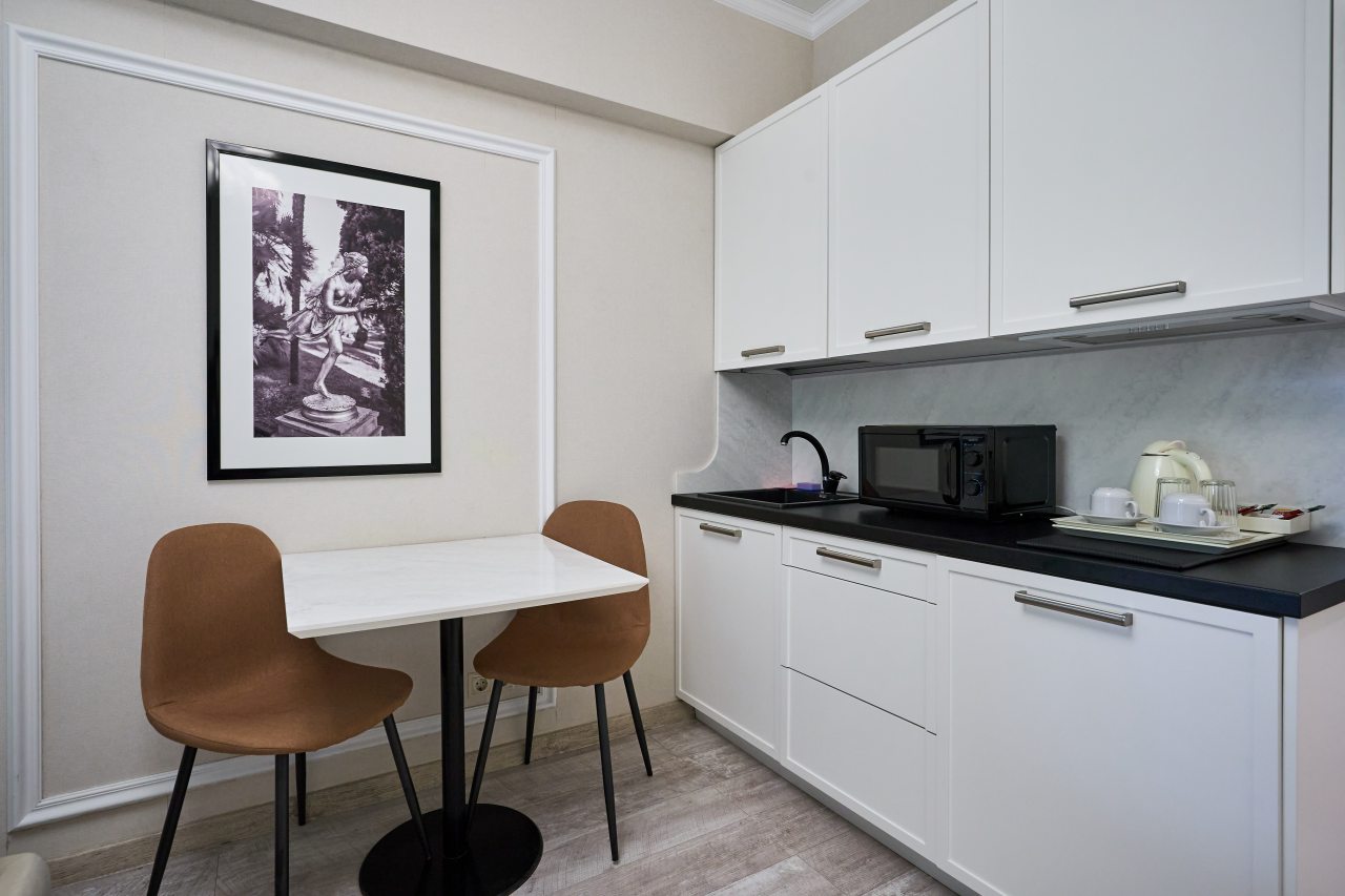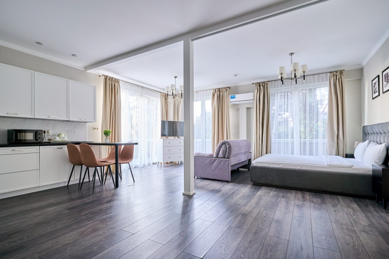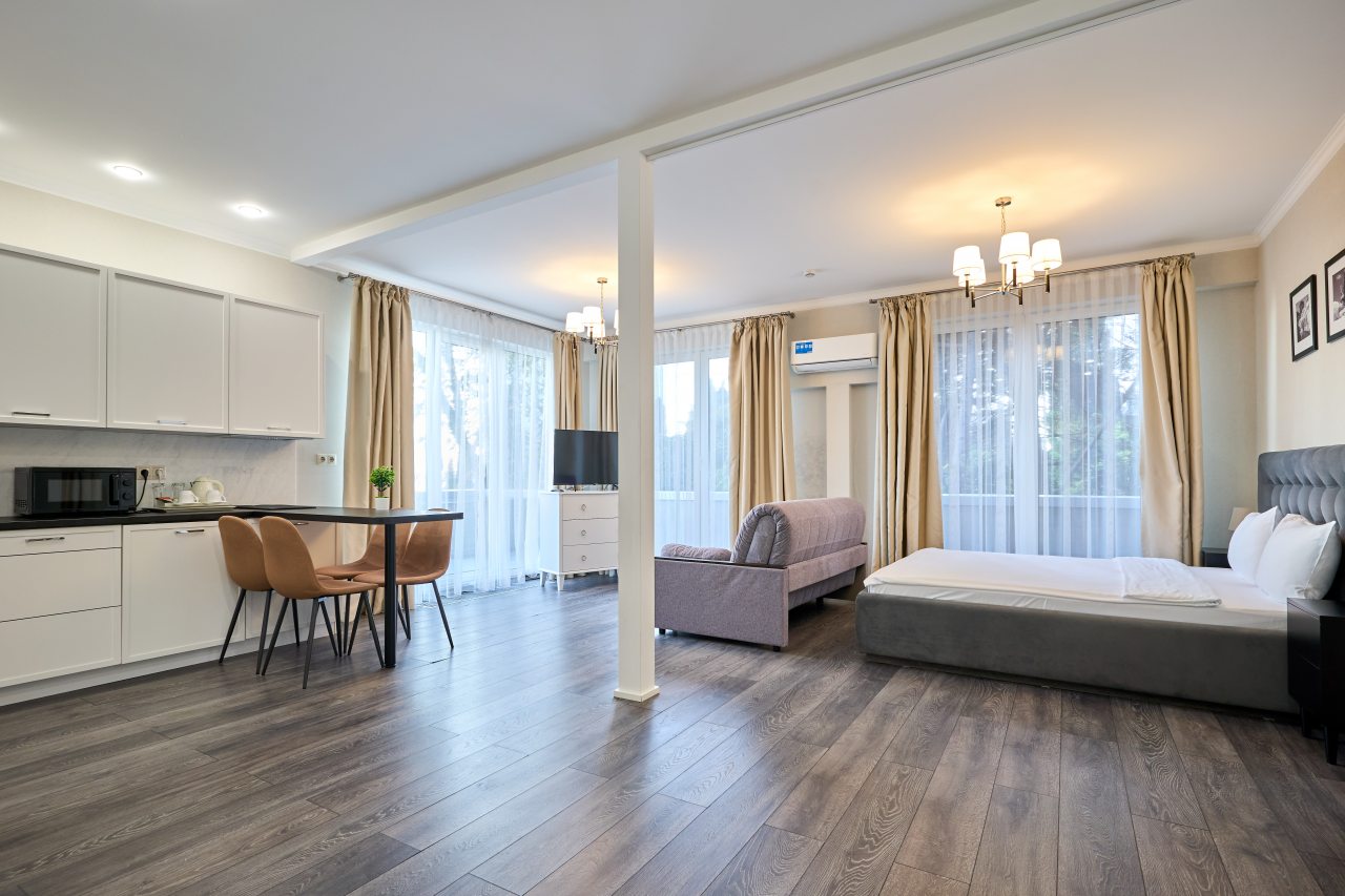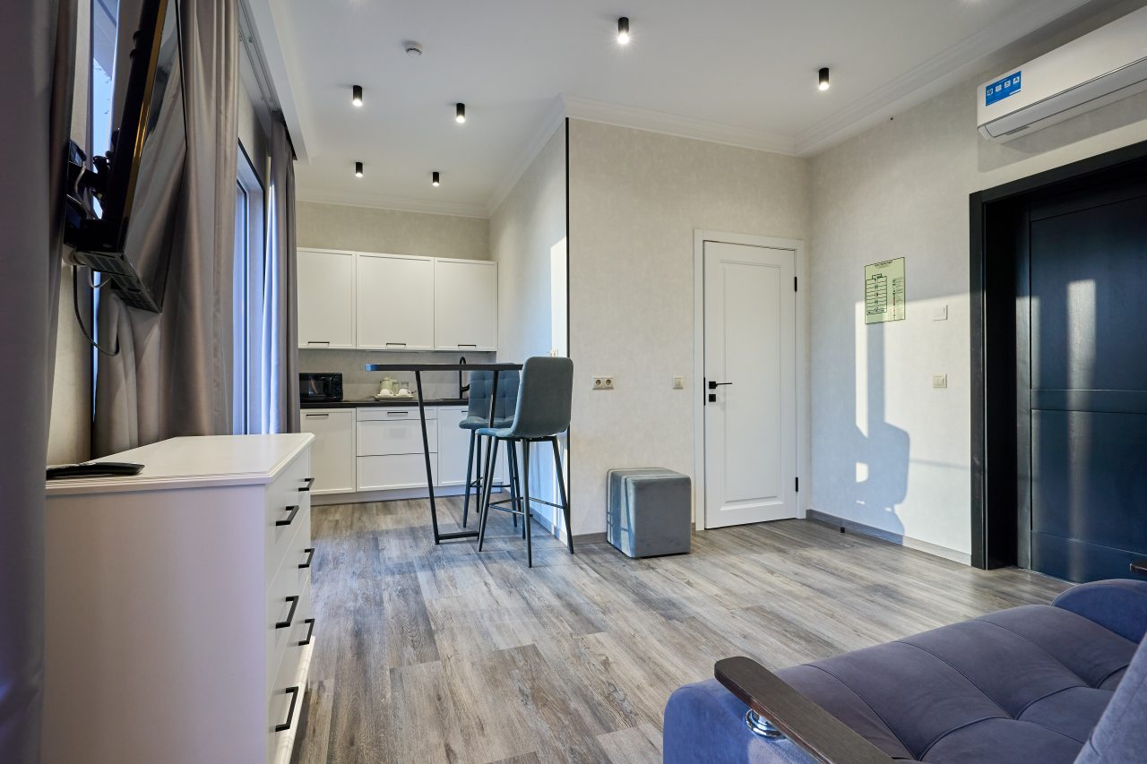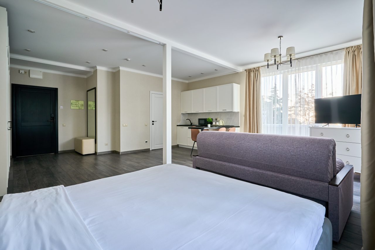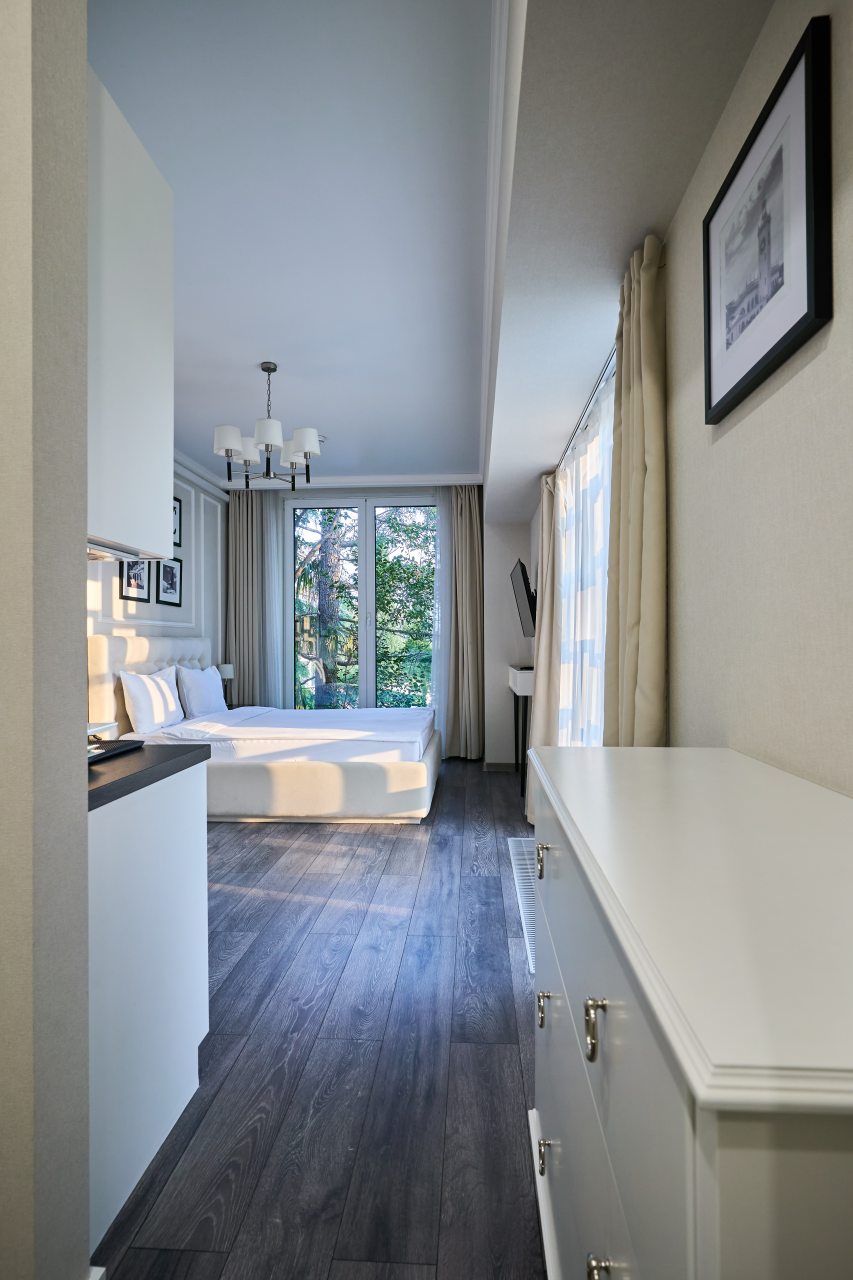 Бутик-отель хорошенький. Находится в центре Сочи. Недалеко пляж, канатная дорого, Дендрарий. В другие места также легко добраться при желании. В номере приятная кровать, необходимая техника. Даже стиральная машинка и СВЧ-печь была, что просто супер. Завтрак на выбор из нескольких блюд. Еда вкусная.