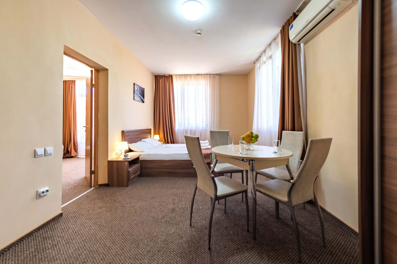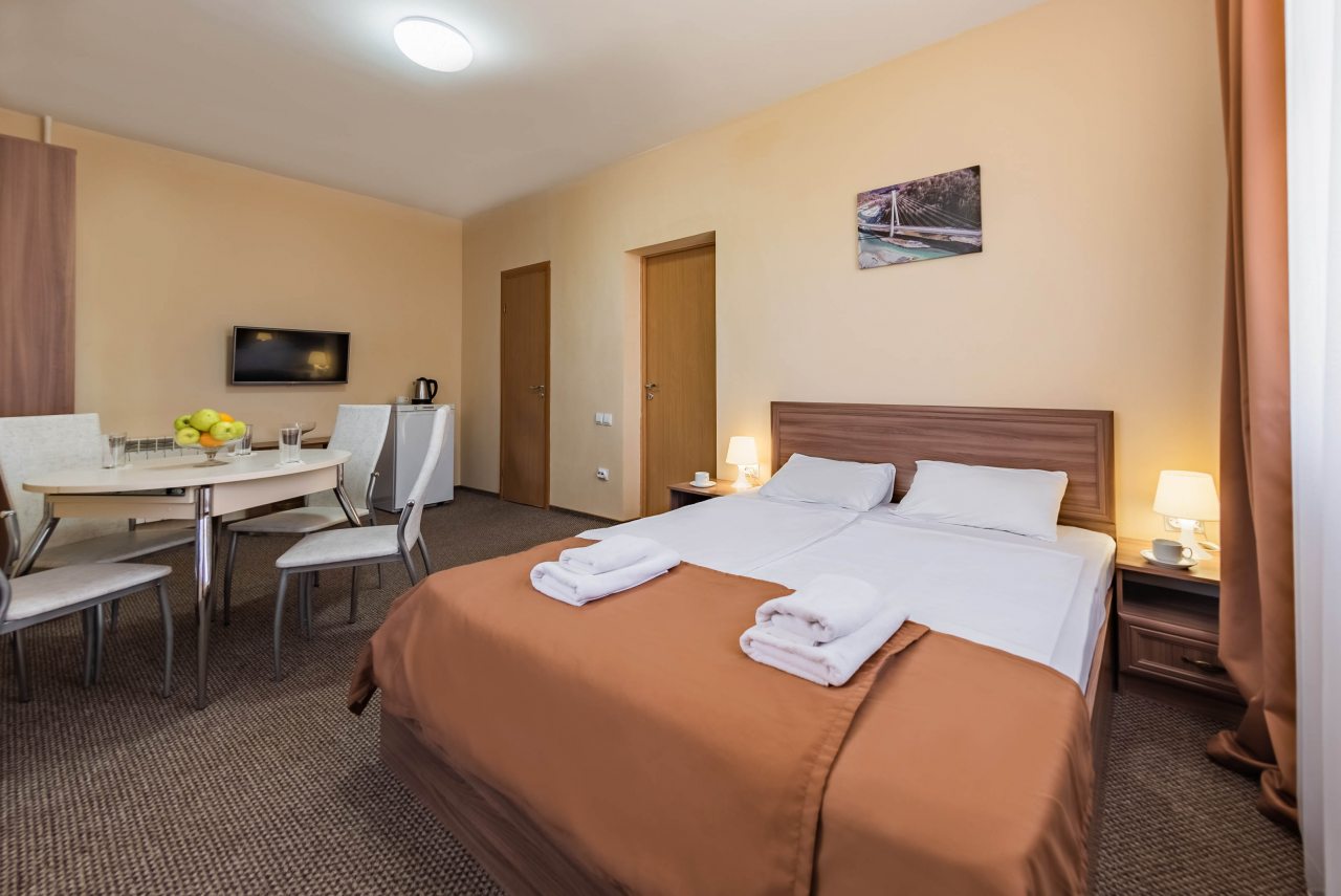 Тот, кто выберет этот отель, точно не пожалеет. Он большой по габаритам, в нем много номеров. Территория с собственным бассейном, зонами отдыха, спортивной площадкой и детским уголком. Игровая комната для детей есть и в закрытом помещении. Номеров очень много, и все они оформлены в современном стиле. Цены разные, выбрать несложно. Санузел практически во всех случаях свой отдельный. Ресторан на территории имеется, выбор блюд предоставлен. Интернет на всей территории ловит хорошо.