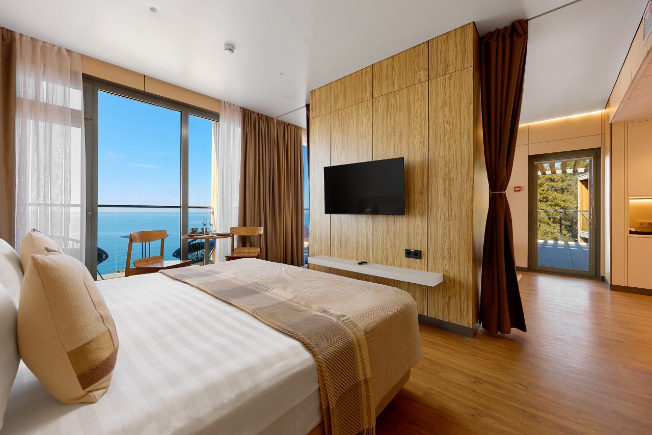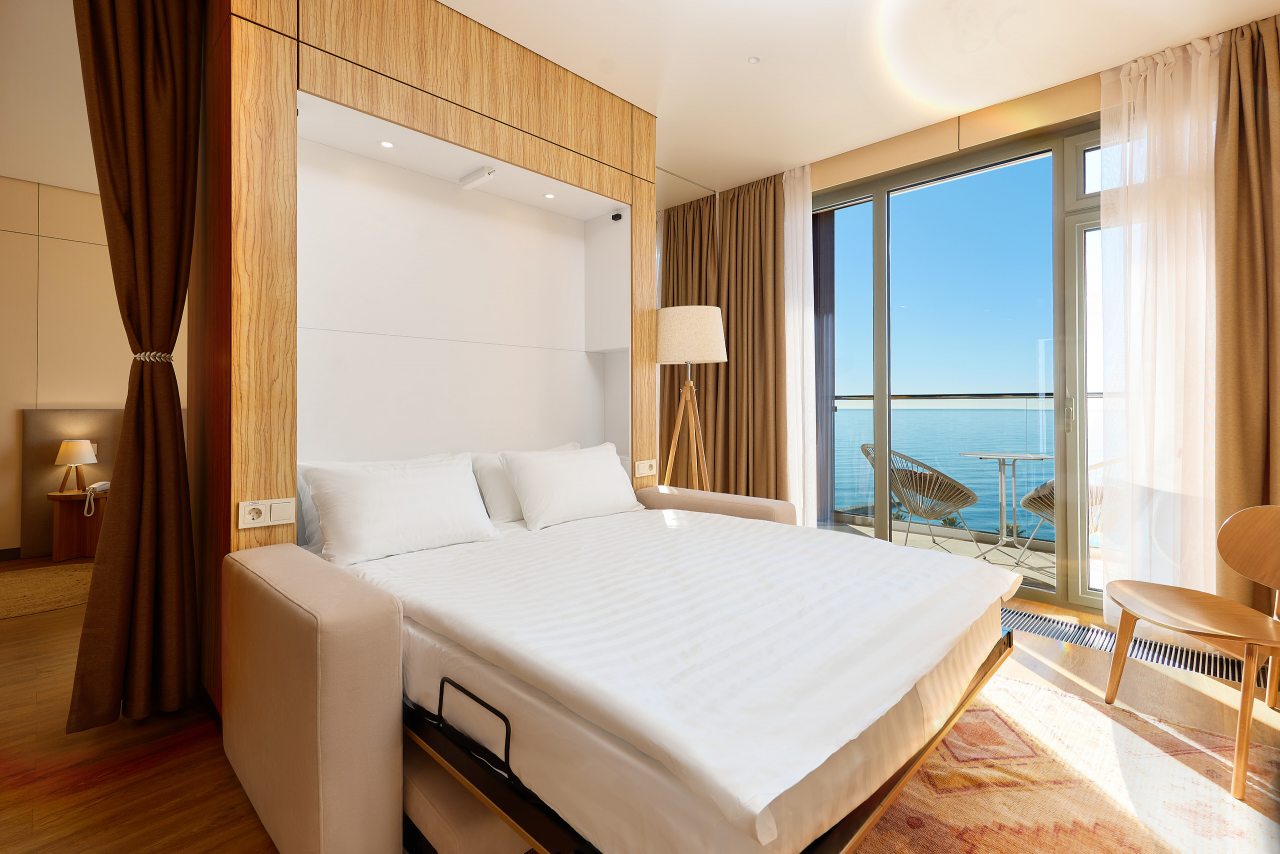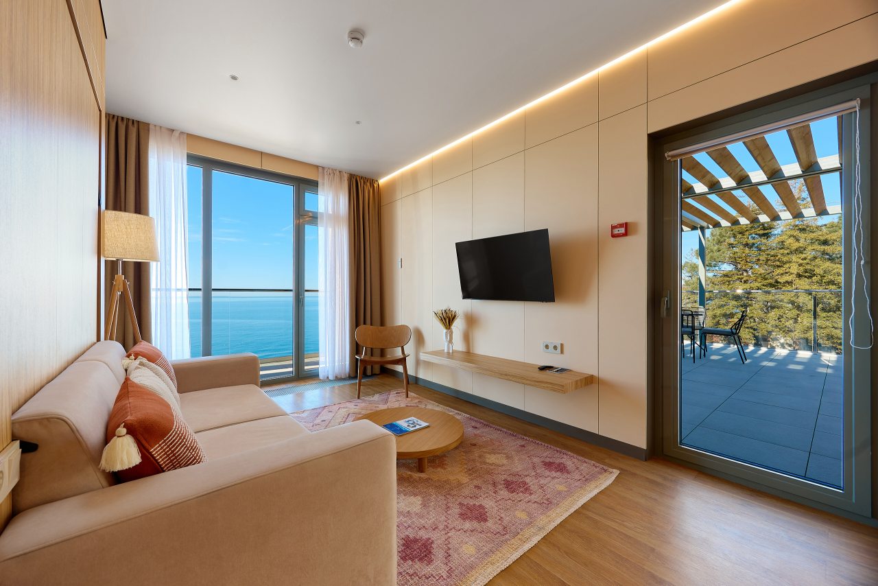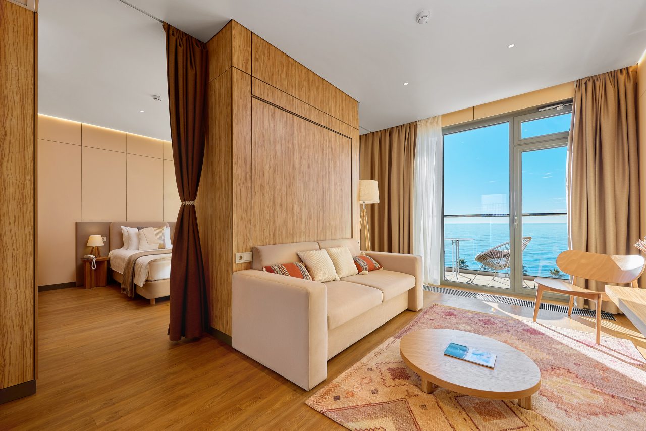 Рекомендую этот санаторий всем. Сама уже не первый год тут отдыхаю, и всем довольна. Множество услуг, развлечений, море недалеко, комплекс бассейнов с водными горками. Номер современный, уютный, уборка регулярная. Кормят вообще отлично! На шведском столе чего только нет. Беседки есть на территории.