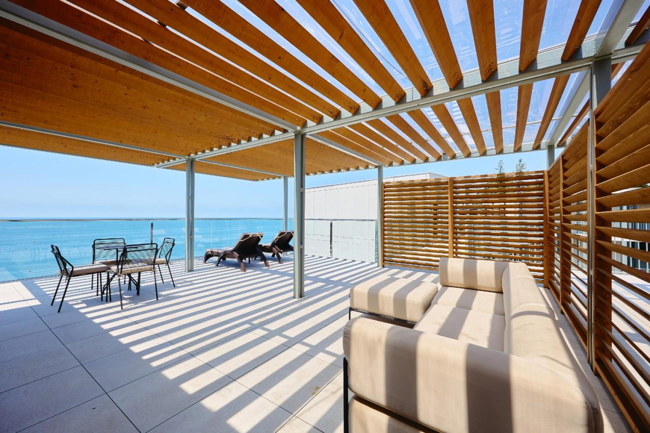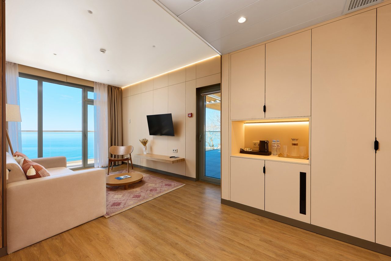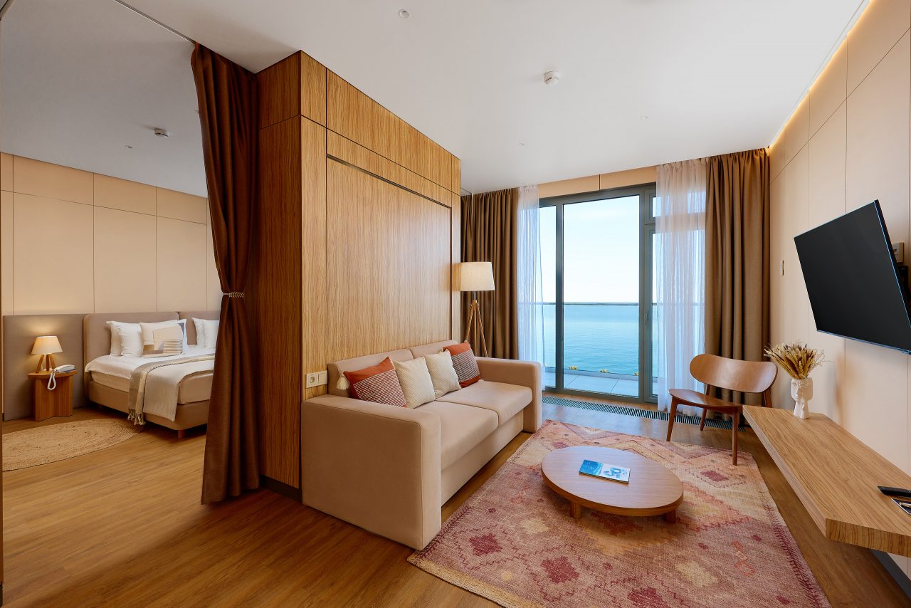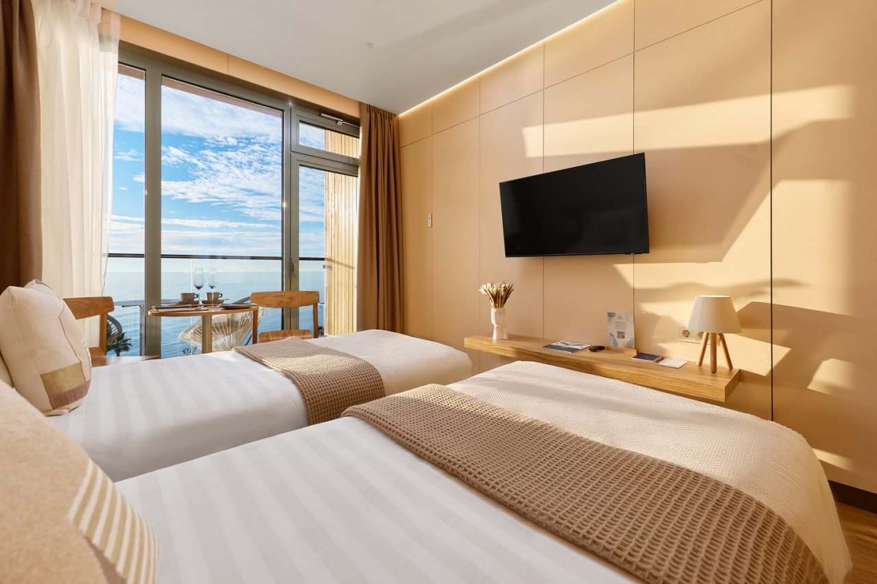 Рекомендую этот санаторий всем. Сама уже не первый год тут отдыхаю, и всем довольна. Множество услуг, развлечений, море недалеко, комплекс бассейнов с водными горками. Номер современный, уютный, уборка регулярная. Кормят вообще отлично! На шведском столе чего только нет. Беседки есть на территории.