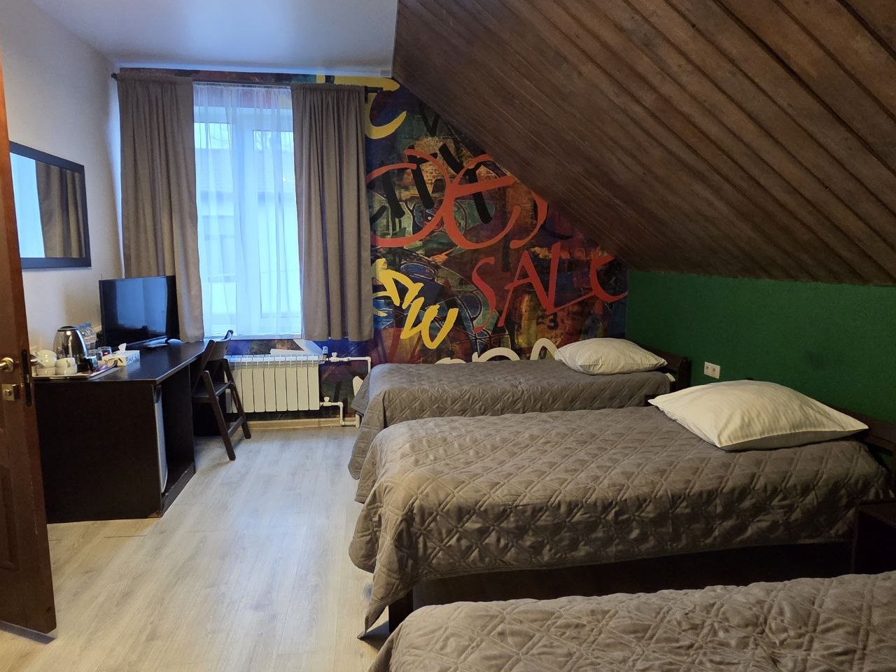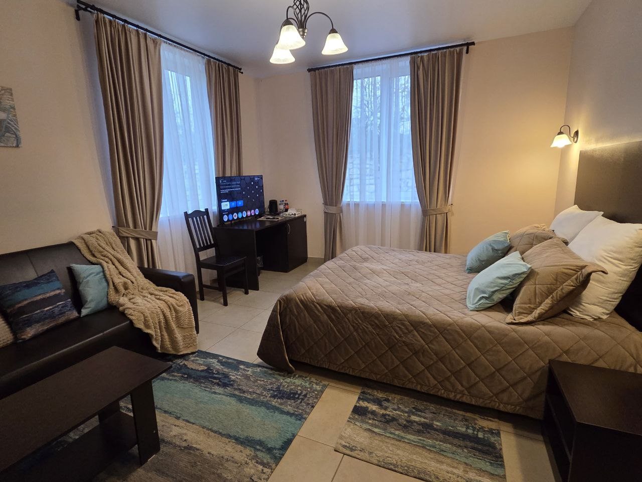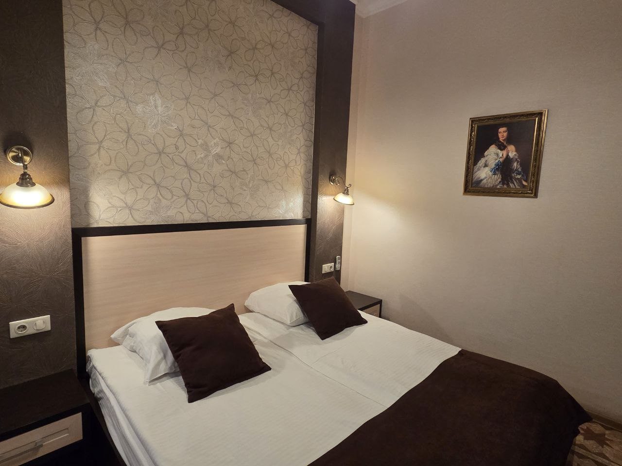 Милый уютный отель, стильно оформленный, чистый. Заботливость о гостях почувствовали с первого взгляда менеджера (заезд 13 августа в 14+ ч) - и это не натянутая улыбчивая маска, как часто бывает. Это реально искренне доброе отношение к гостям, внимательность и уважение. Спасибо! Таких работников надо ценить и беречь ибо они - лицо отеля. Машину загнали за ворота на территорию отеля и это очень приятно и важно для нас. Номер 4 на втором этаже - отличный! Чисто, свежий воздух, есть все необходимое (кондиционер, холодильник, телевизор, набор чайной посуды, чайник, пакетики чая, фен, расходники для душа, тапочки, полотенца, фен). Окна во двор, из окна вид на зелень, деревья - нам понравилось!