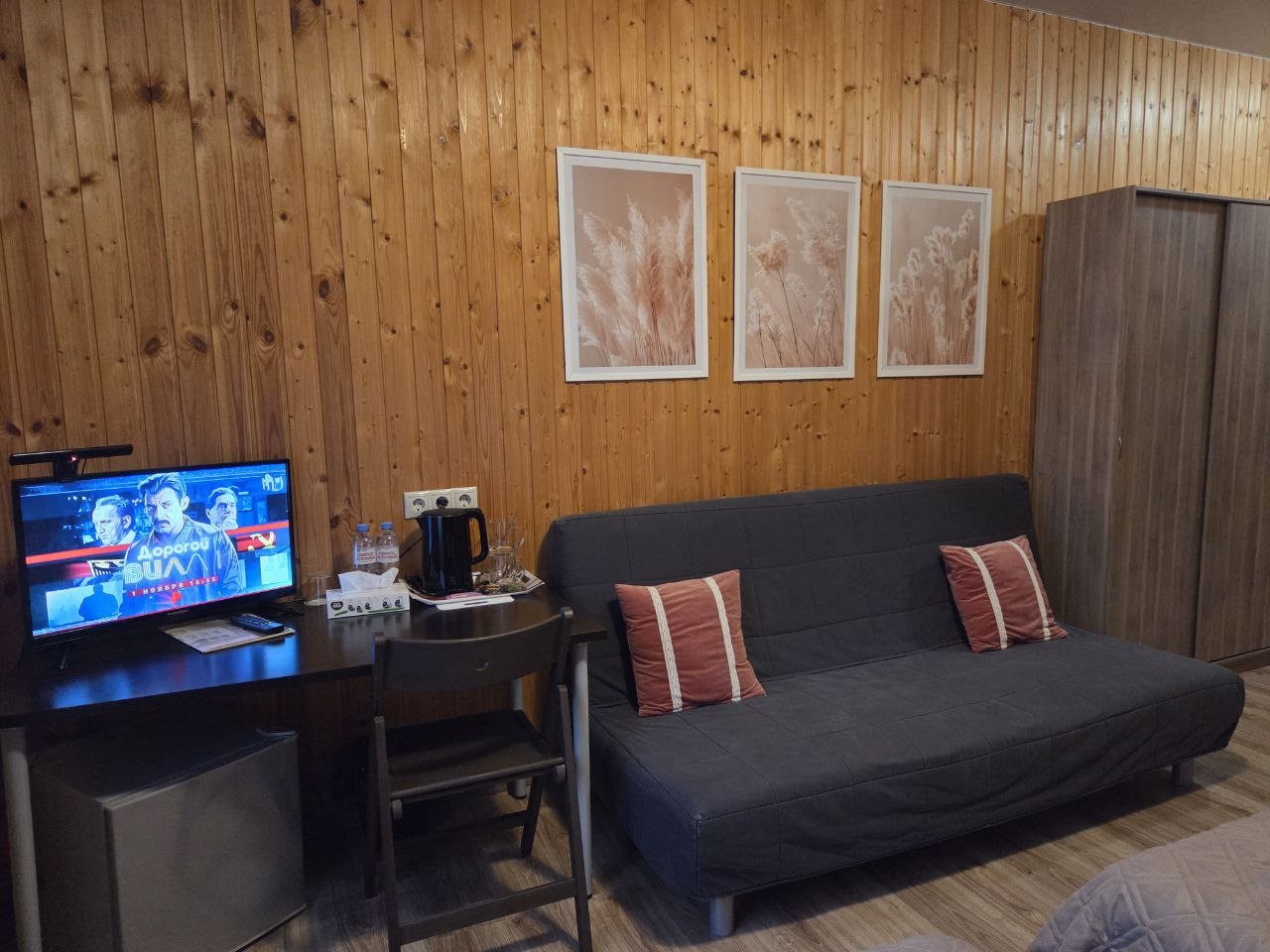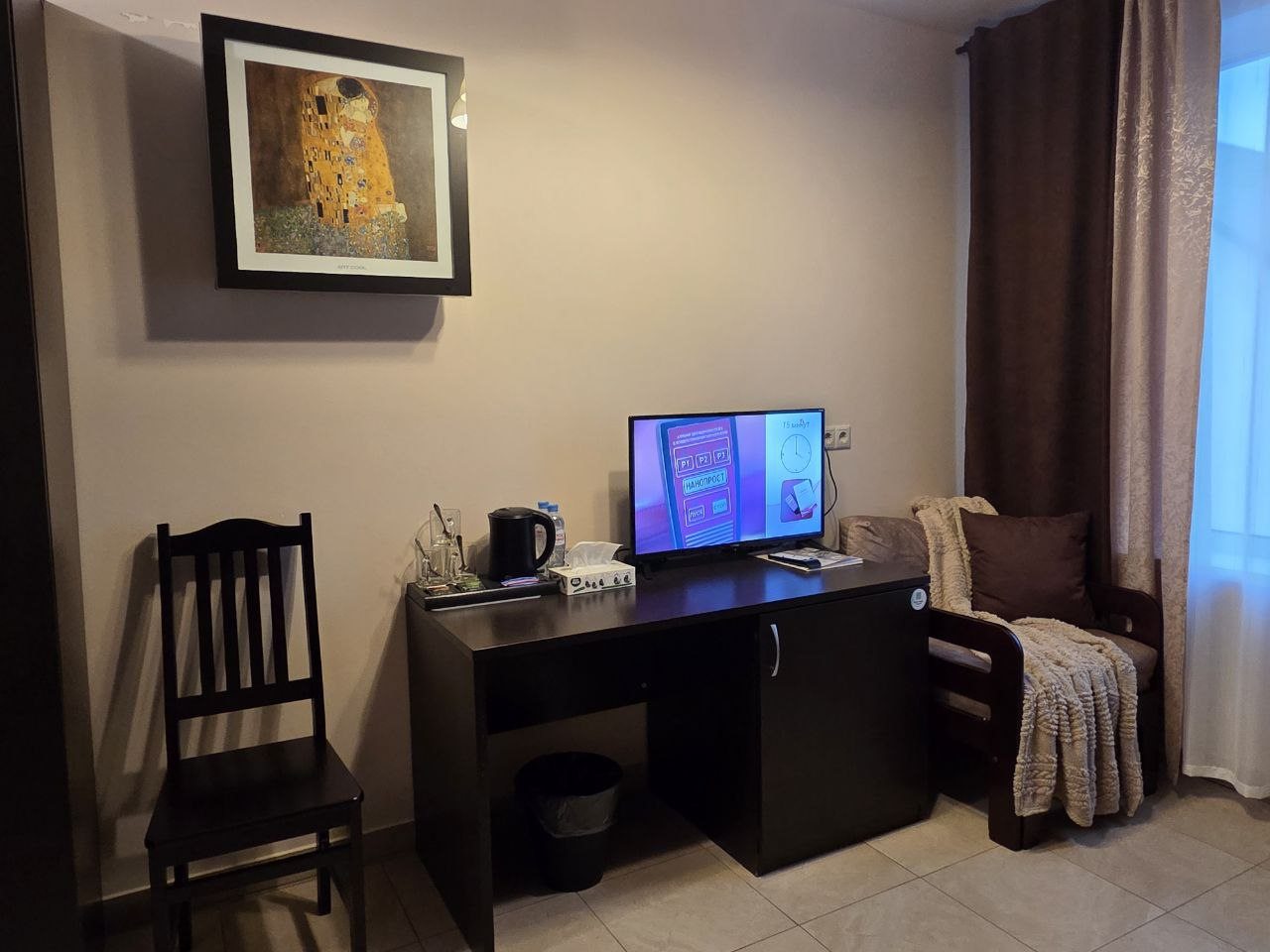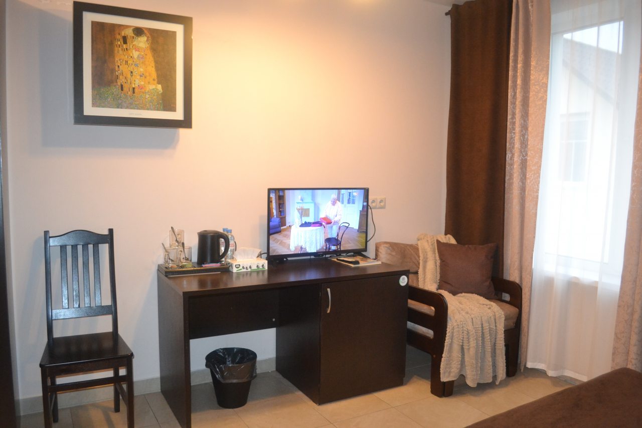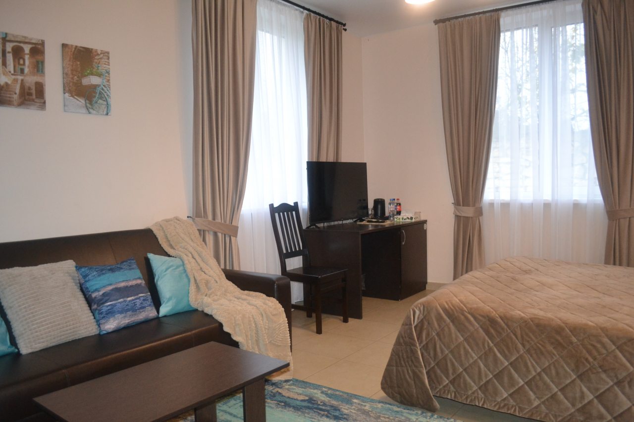 Милый уютный отель, стильно оформленный, чистый. Заботливость о гостях почувствовали с первого взгляда менеджера (заезд 13 августа в 14+ ч) - и это не натянутая улыбчивая маска, как часто бывает. Это реально искренне доброе отношение к гостям, внимательность и уважение. Спасибо! Таких работников надо ценить и беречь ибо они - лицо отеля. Машину загнали за ворота на территорию отеля и это очень приятно и важно для нас. Номер 4 на втором этаже - отличный! Чисто, свежий воздух, есть все необходимое (кондиционер, холодильник, телевизор, набор чайной посуды, чайник, пакетики чая, фен, расходники для душа, тапочки, полотенца, фен). Окна во двор, из окна вид на зелень, деревья - нам понравилось!