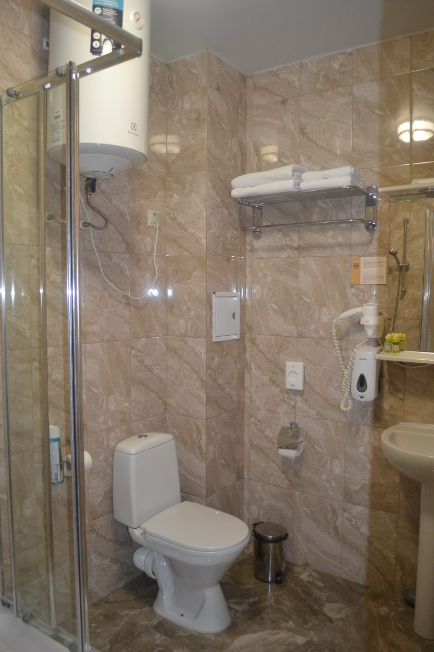 Из недостатков: единственный минус - горячей воды в душе хватало только на одного человека (если мыться с головой). Потом приходилось ждать не меньше часа, чтобы вода снова нагрелась.