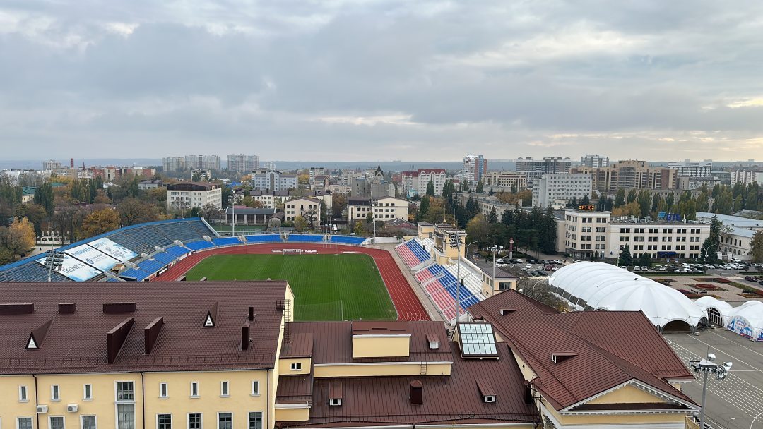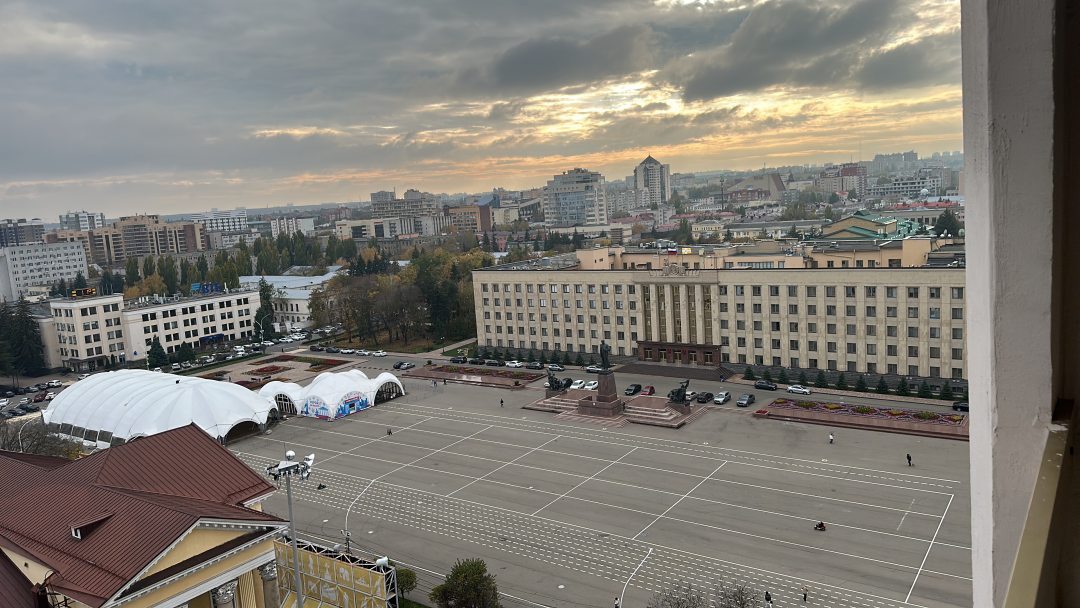 Вид из окна на площадь и стадион