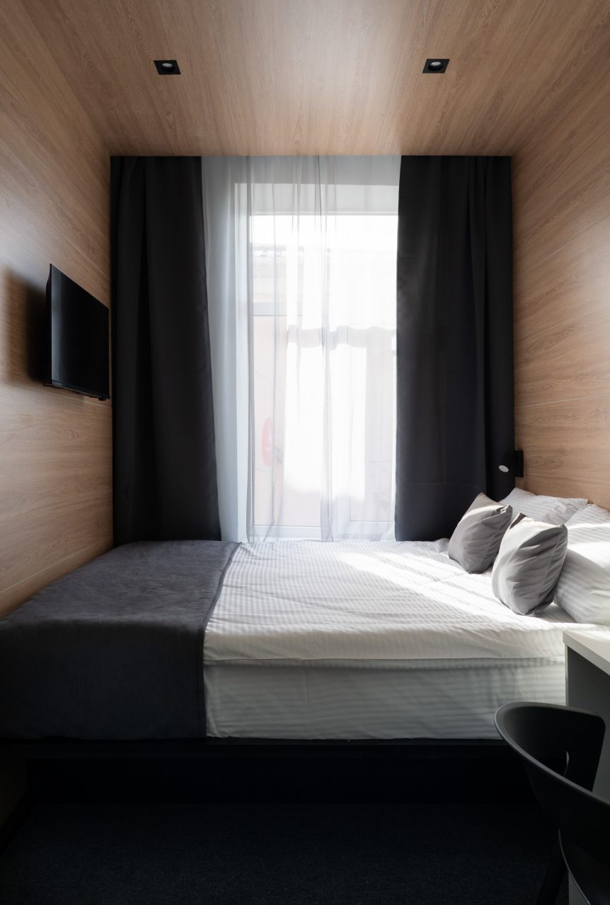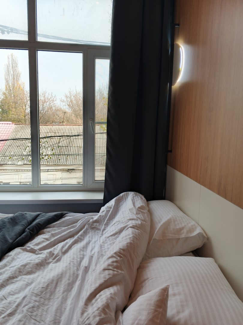 Матрац хороший, постельное белье, шторы black out, штора в душевой тканьевая. Чисто, уютно, все как хотелось.