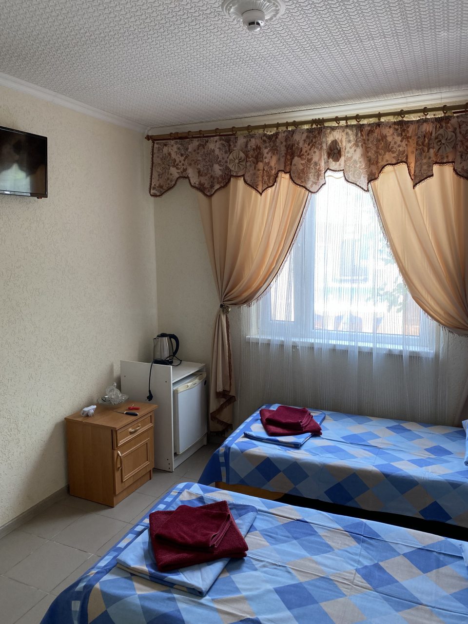 Отдыхали в гостевом доме с1 по 10 августа 2024 года вдвоём с мужем. Нам всё понравилось . Мы не привередливые гости. Хозяин Ашот показал нам сперва тот номер, который мы забронировали, а потом повёл в другой, сказав, что он получше, но стоить будет столько же, сколько забронированный. Номер двухместный. Две кровати, туалетный столик, тумбочка у кровати, кондиционер, телевизор. В прихожей шкаф для одежды, холодильник, электрический чайник , посуда. В санузле душевая с нормальным напором и температурой воды, унитаз, раковина. Постельное бельё и полотенца чистые, свежие. У нашего номера была терраса на два номера
