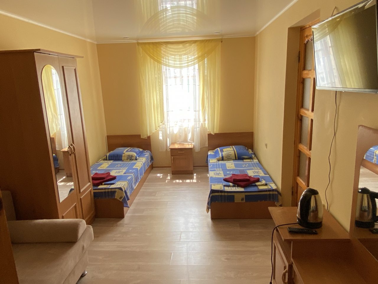 Хозяева оказались гостеприимными, приятными и отзывчивыми людьми. Они предоставили советы о том, как лучше всего добраться до отеля. Уборку и размещение проводят незаметно, не создавая неудобств для постояльцев. Местоположение удобное: есть выход на улицу Таврическая, и можно дойти до пляжа пешком за 15 минут, минуя аквапарк, без подъемов. По улице Гагарина можно проехать две остановки на автобусе, чтобы попасть на пляж, в центр города или на автовокзал.