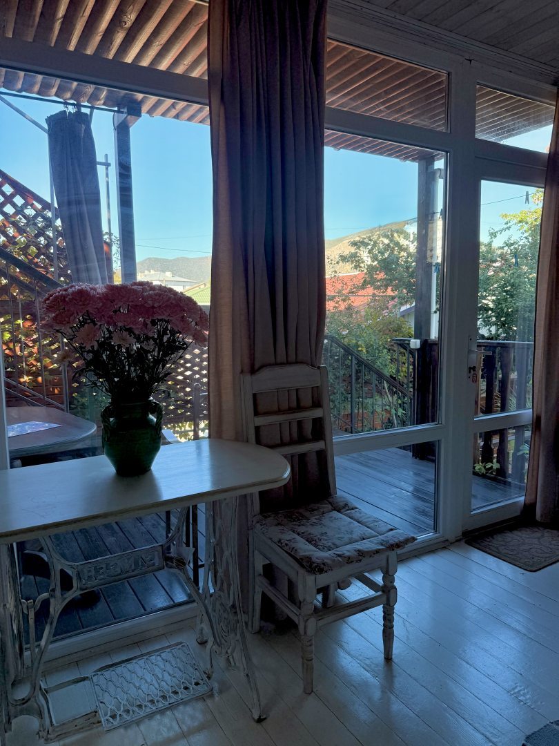 Как здесь красиво! Такая винтажная мебель. Очень мне понравилось. Совершенное удовольствие здесь находиться. В номере есть выход на террасу, удобная кровать, много места для хранения и красивые декоративные элементы. Подают завтрак, входит в стоимость, блюда незамысловатые, но вкусные.