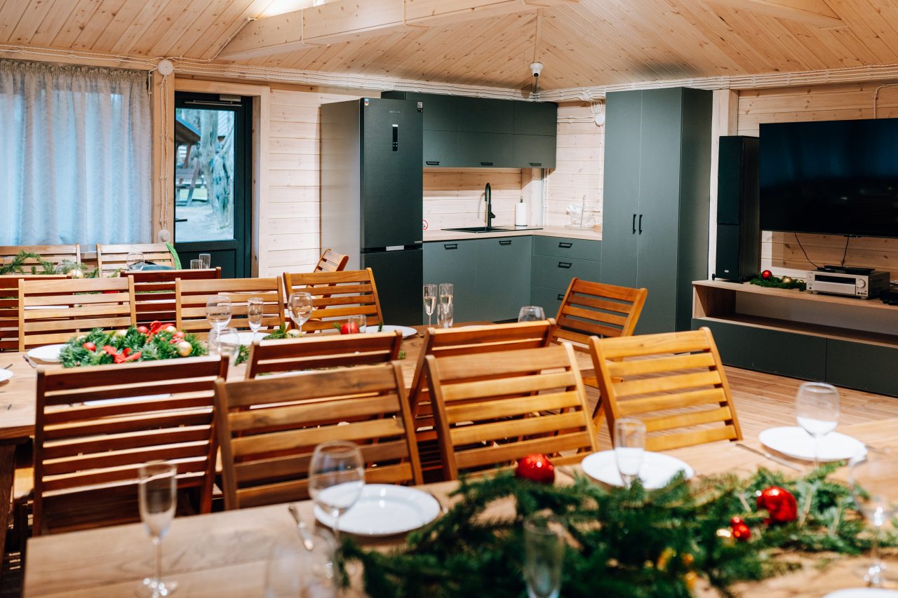 10 домиков-шалашей в уединенном месте, но далековато от моря. Зато множество тропинок, по которым можно гулять сколько угодно, а затем вернуться в теплый домик и выпить чашку какао. Велосипеды брали с собой, поэтому многое успели посмотреть в окрестностях. Если велика нет, рекомендую взять в прокат.