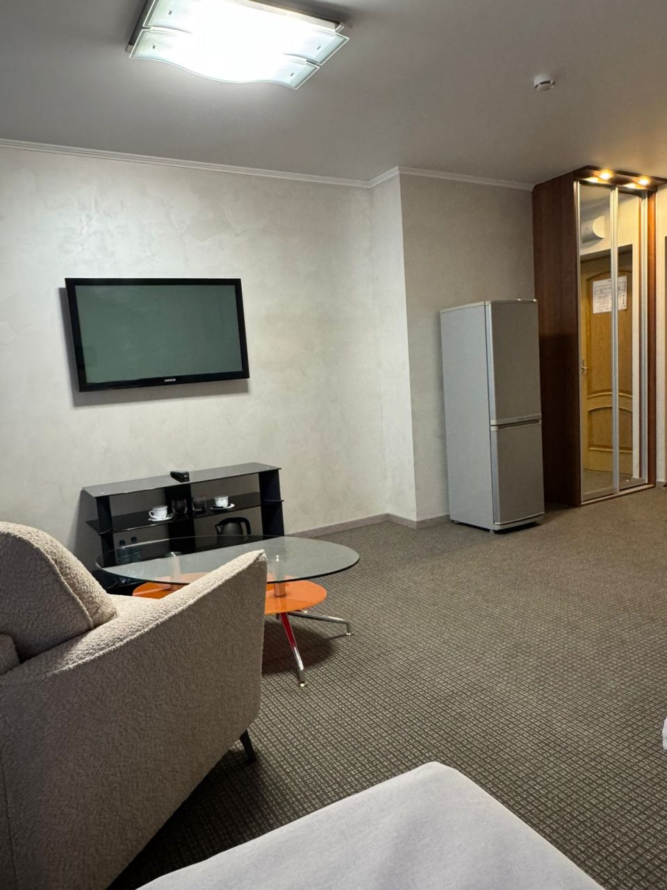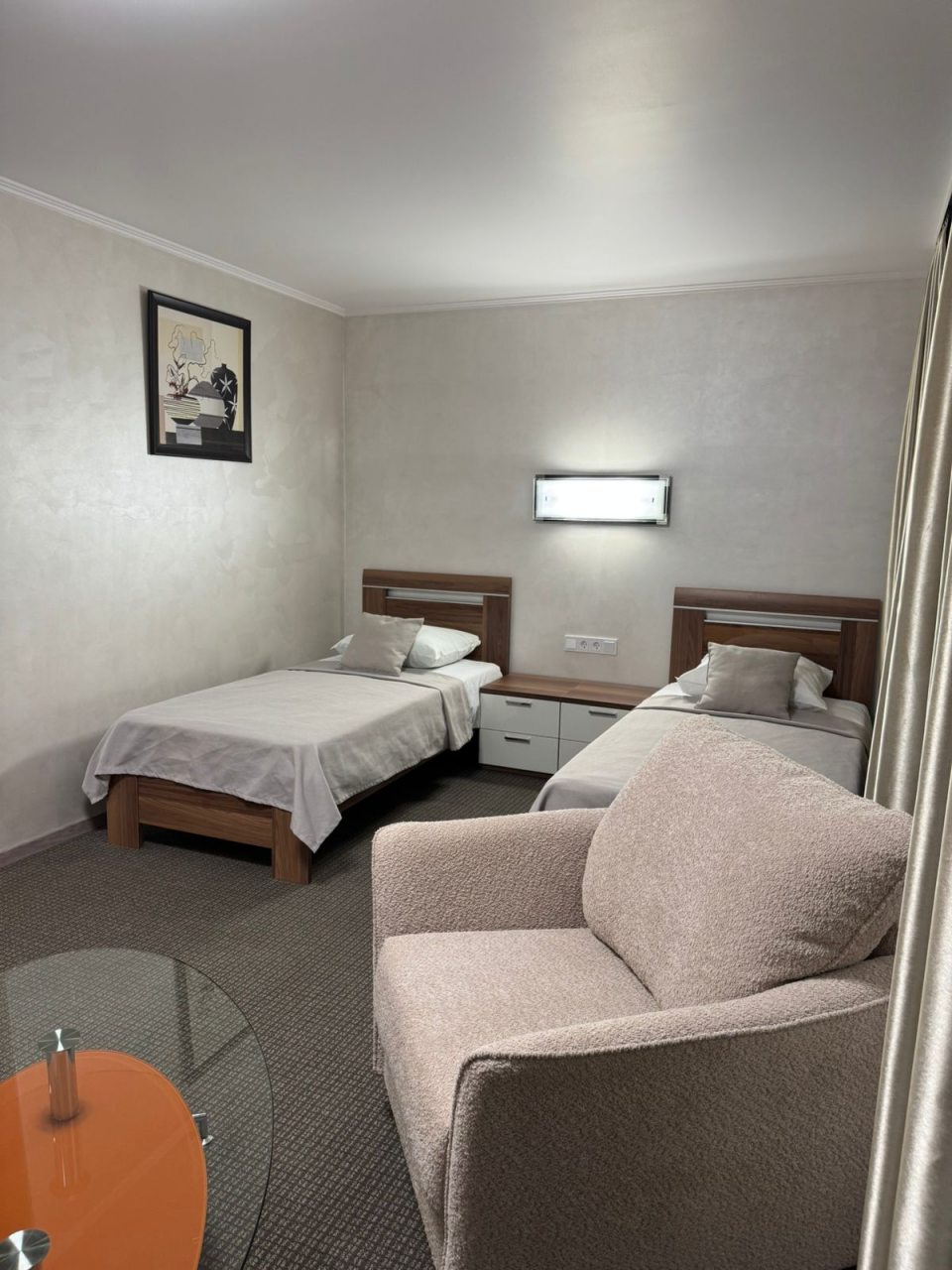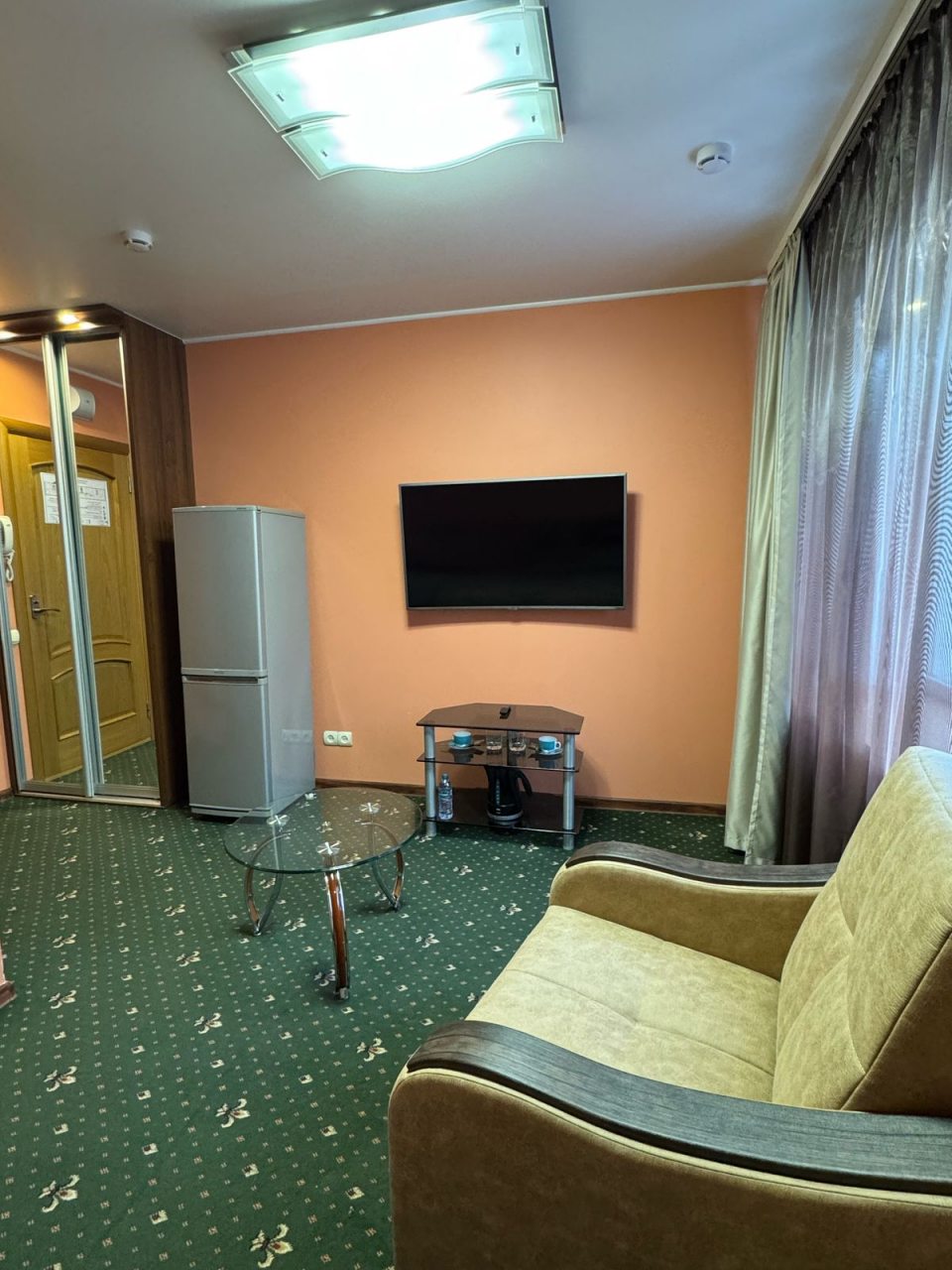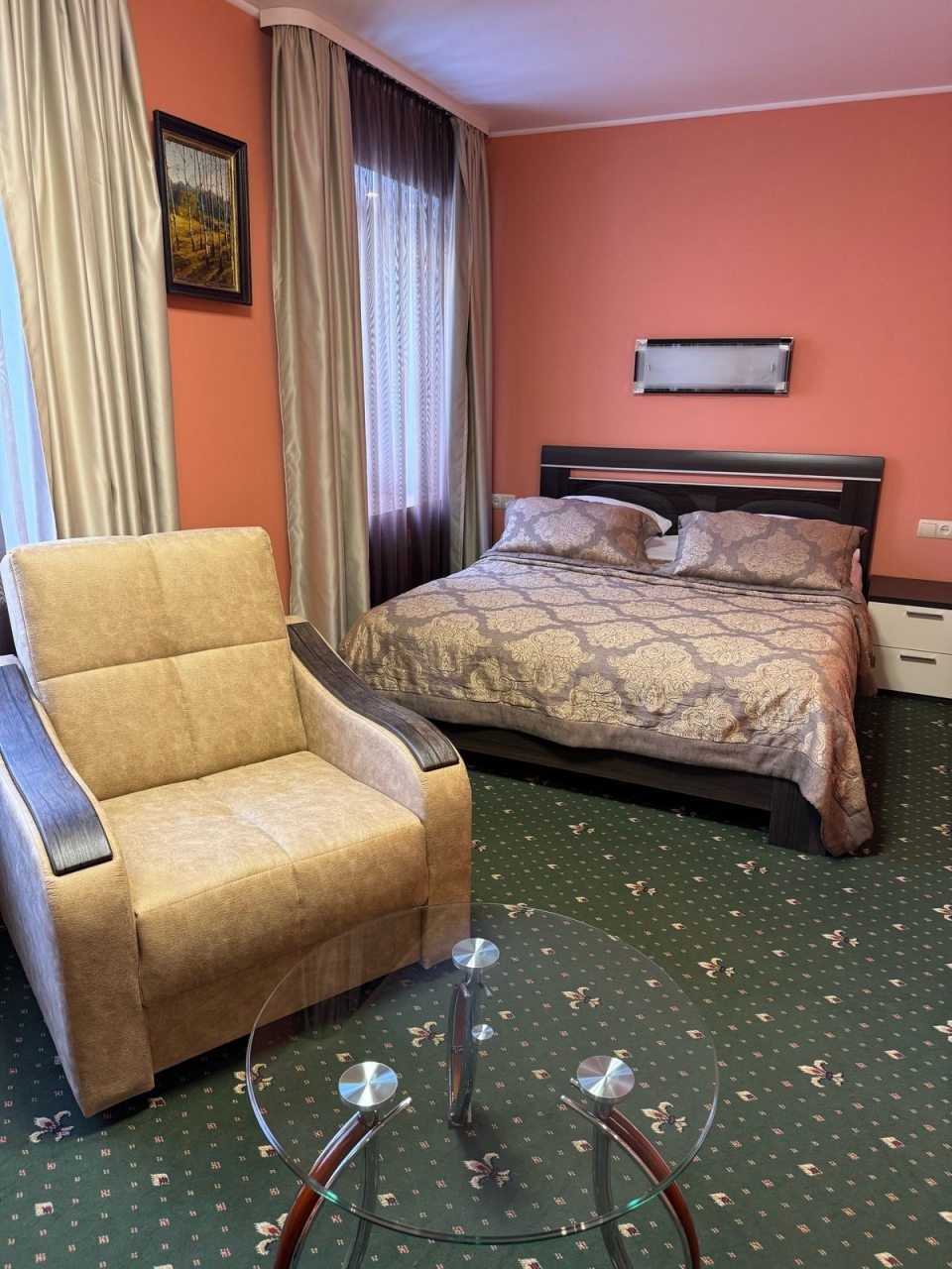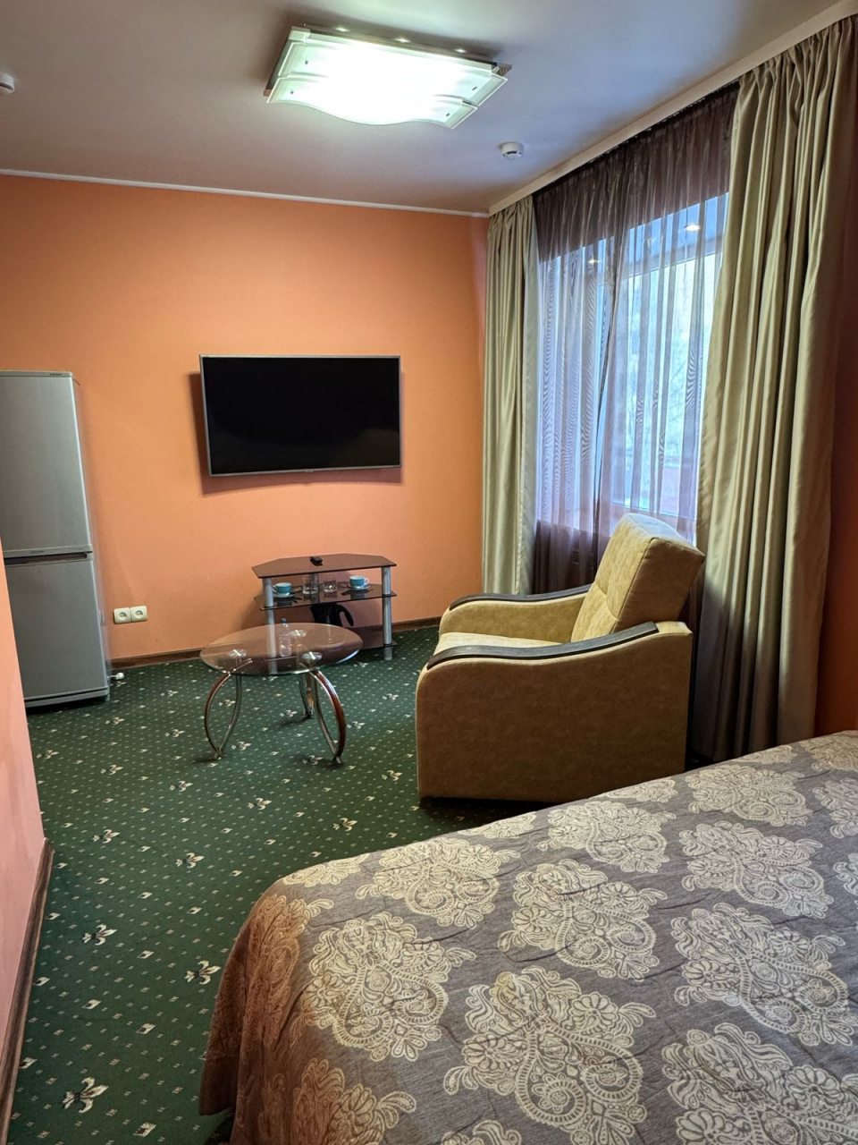 Понравилось нам всё.Чистота,порядок в номере.Удобная кровать, шикарное кресло,белоснежное бельё,полотенца.Есть в номере холодильник,чайник,чай,сахар.