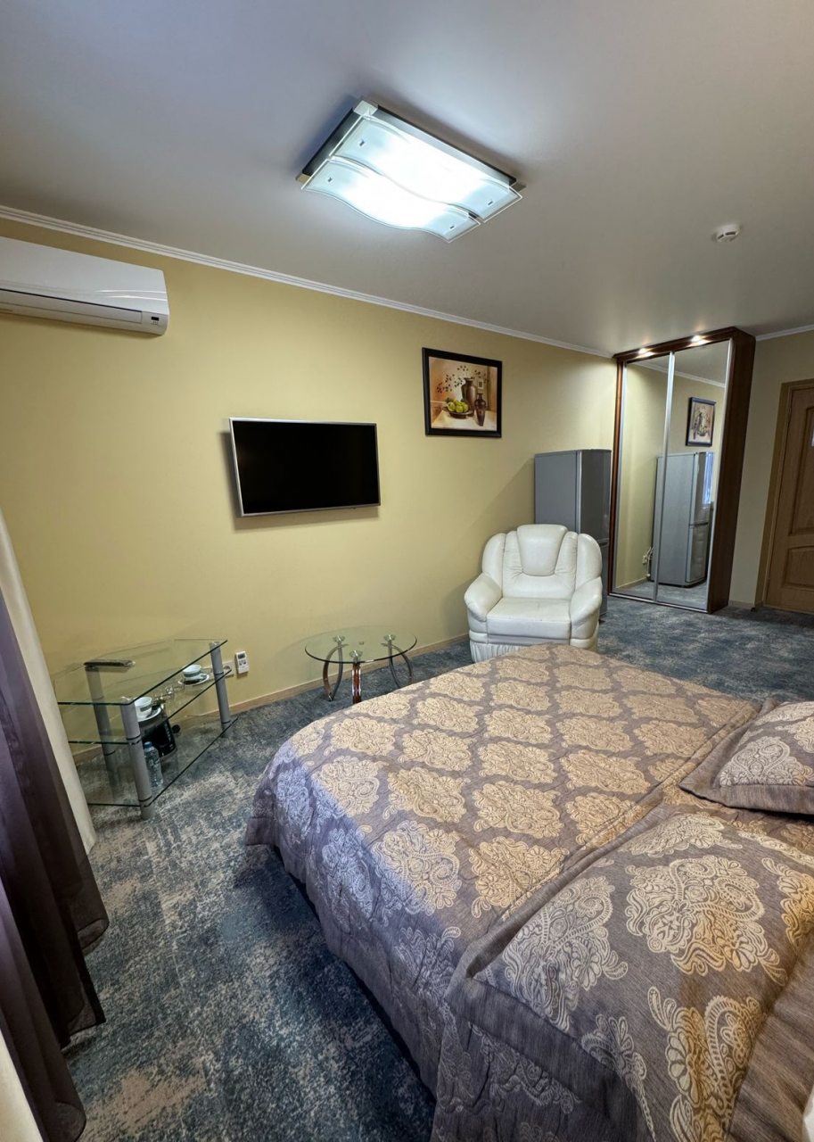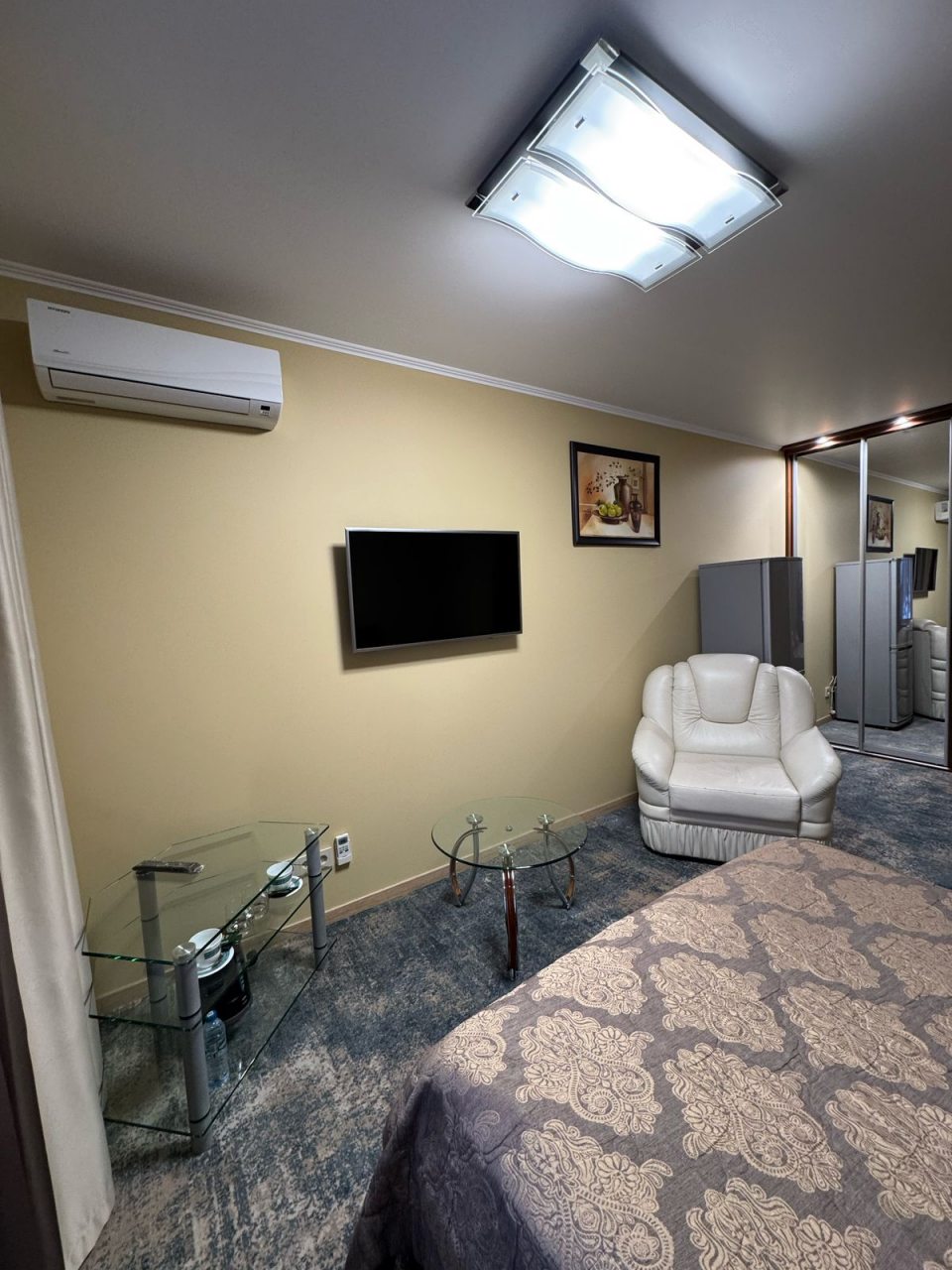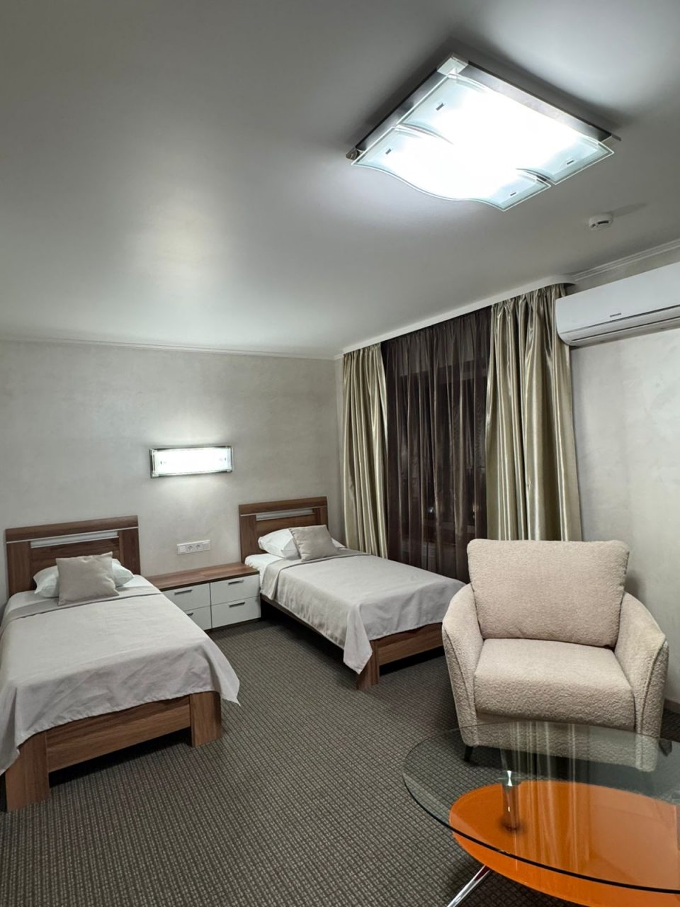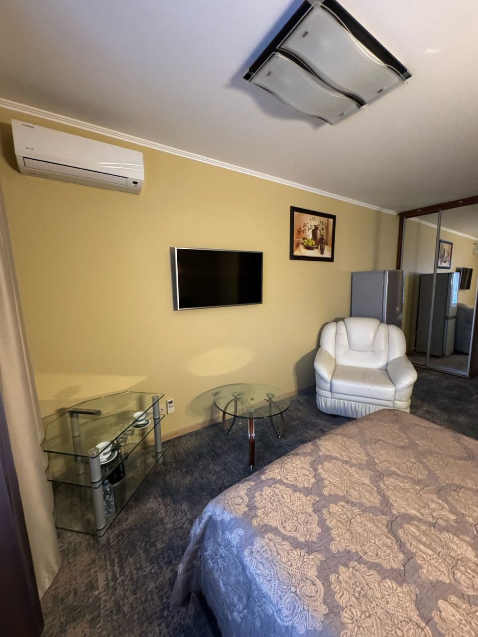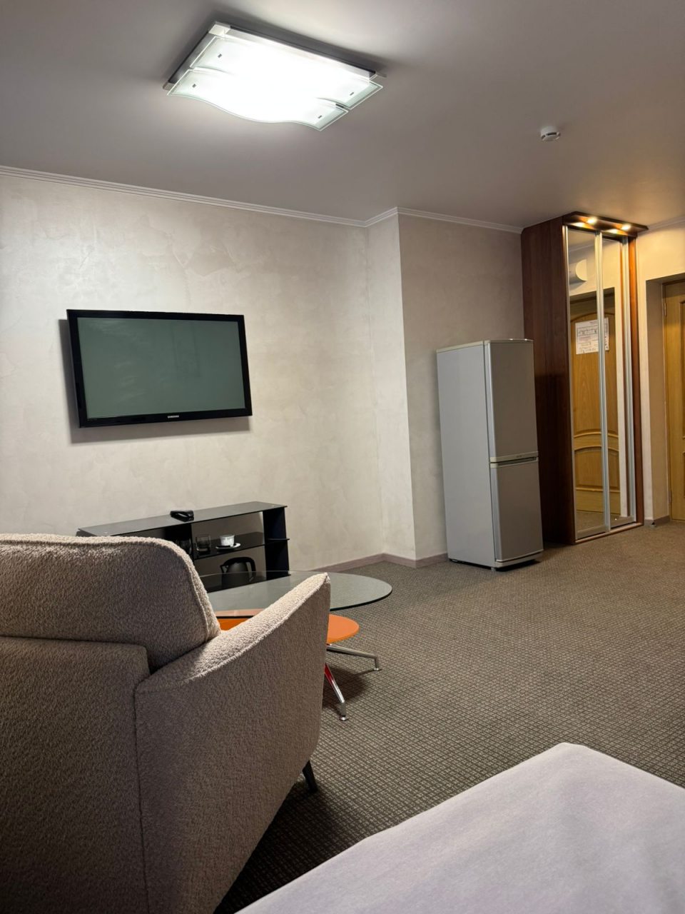 Понравилось нам всё.Чистота,порядок в номере.Удобная кровать, шикарное кресло,белоснежное бельё,полотенца.Есть в номере холодильник,чайник,чай,сахар.