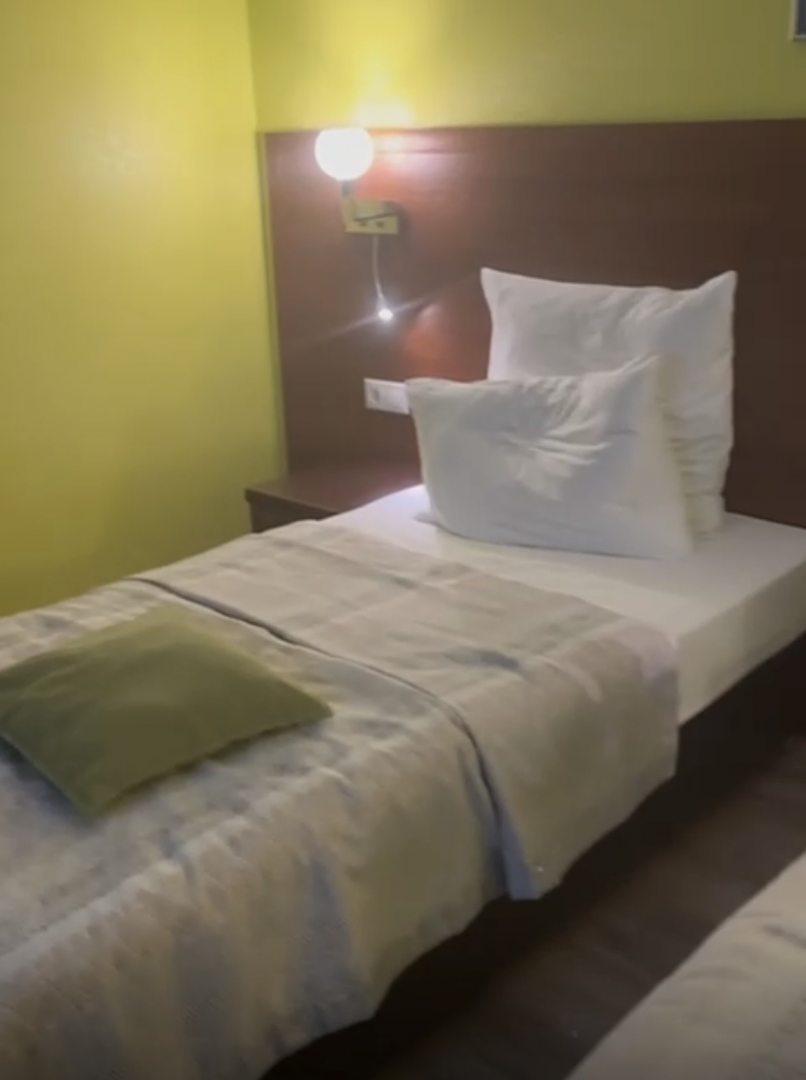 Удобные матрасы с подушками, чистые номера, наличие гигиенических принадлежностей. Чайник, вода, чай.