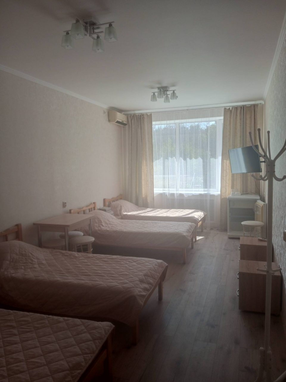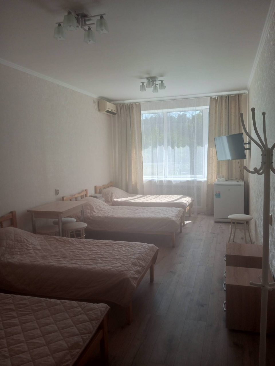 цена на пять человек адекватная, номера новые удивила цена за большой номер хороший сан узел, шикарный диван напротив телевизора, есть кондиционер и приятный персонал, для большой семьи просто спасения, рекомендую однозначно.
