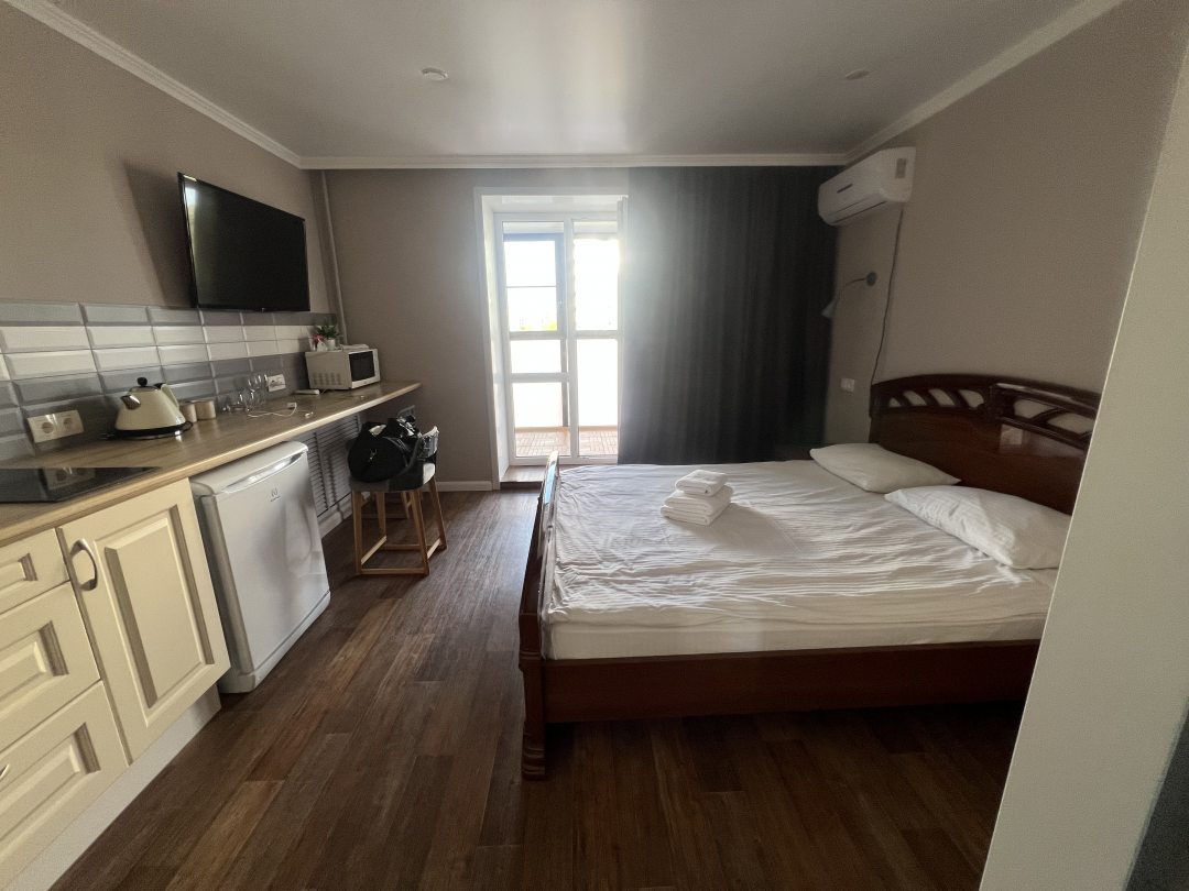 Апартаменты просторные и с хорошим современным ремонтом, цена при этом средняя. Внутри есть микроволновка и чайник, хотя конечно хотелось бы расширить кухню хотя бы плитой. В остальном все понравилось. Самое главное, что тихо и удобная кровать.