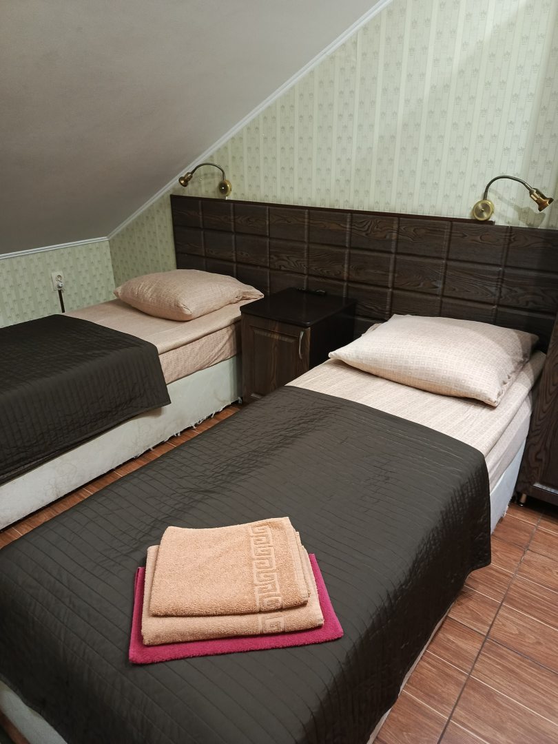 Гостевой дом очень уютный. Есть возможность заказать завтра, обед и ужин в кафе при гостевом доме. Каждый день в комнате производится уборка в номере.