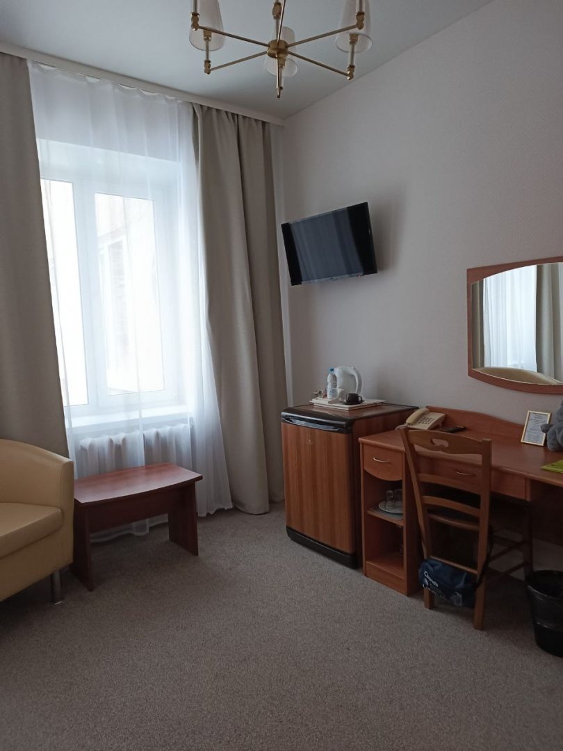 Из недостатков: номерной фонд требует обновления, особенно сантехника, трубы - в ванной стоял сильный неприятный запах канализации, не работал автоматический дезодорант, оставила заявку утром - обещали решить, пока гуляю по городу. Решили.... Дезодорант не залили, течь не устранили, видимо для решения проблемы запаха залили все хлоркой и распахнули дверь в номер(((( после возвращения в номер дышать было вообще невозможно, голова разболелась сразу, проветрить проблематично - мороз сильный на улице... В общем, лучше не обращаться было, ничем не помогли( ну и вид из окна не радовал, но это уже мелочи