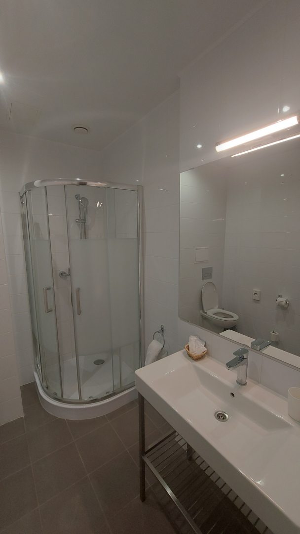 Из недостатков: слабый напор воды в душе, а утром еле тёплая вода, в которой некомфортно мыть голову.