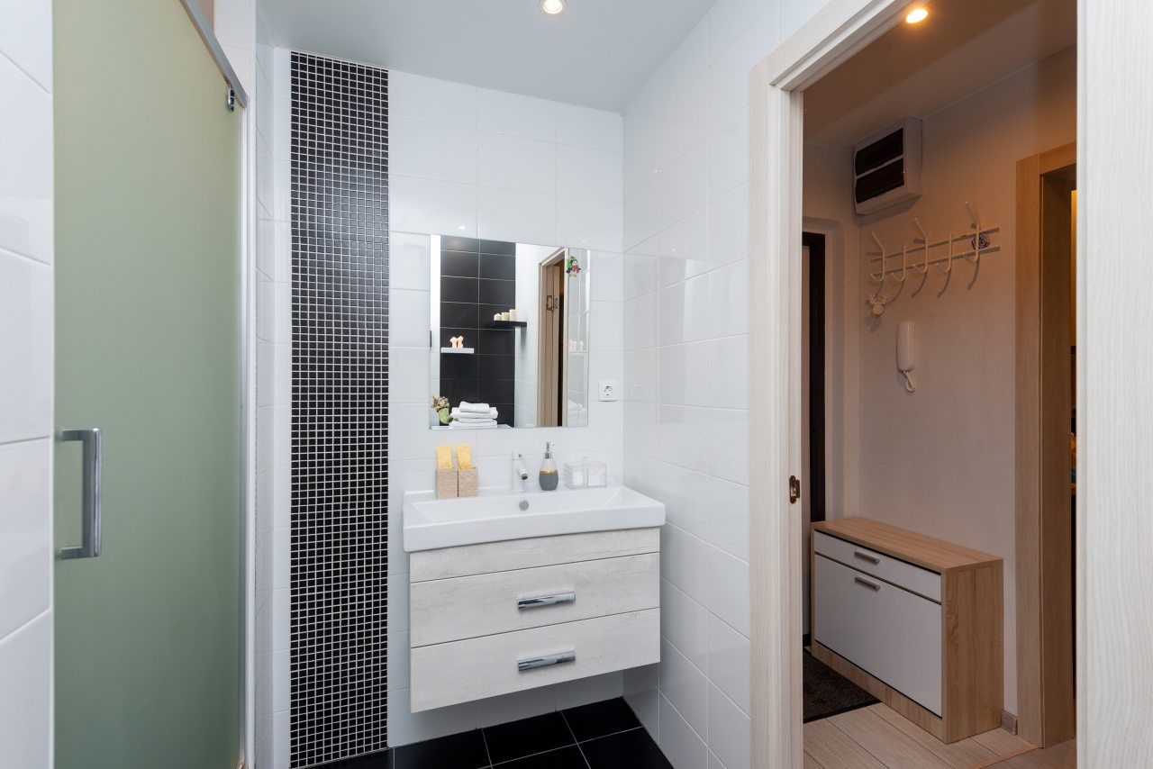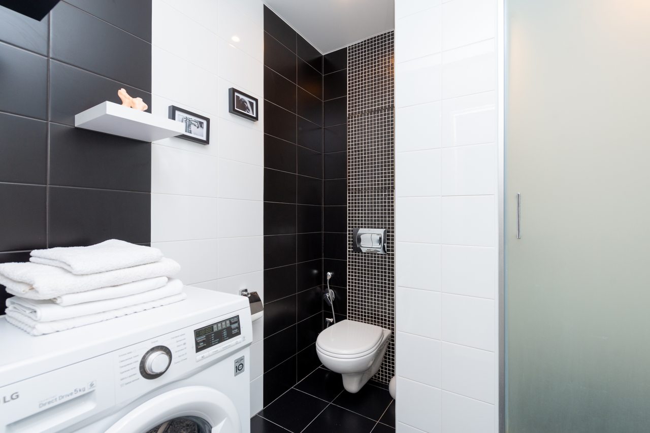 В квартире просторно, удобно разместиться с детьми. Всё содержится в порядке, никаких неприятных мелочей не встречается. Интерьер сделан сдержанно, не перегружает. Есть где посидеть вместе вечером и пообщаться. Хорошее отопление, не чувствуется холода. Ванная чистая и ухоженная, приятно пользоваться.