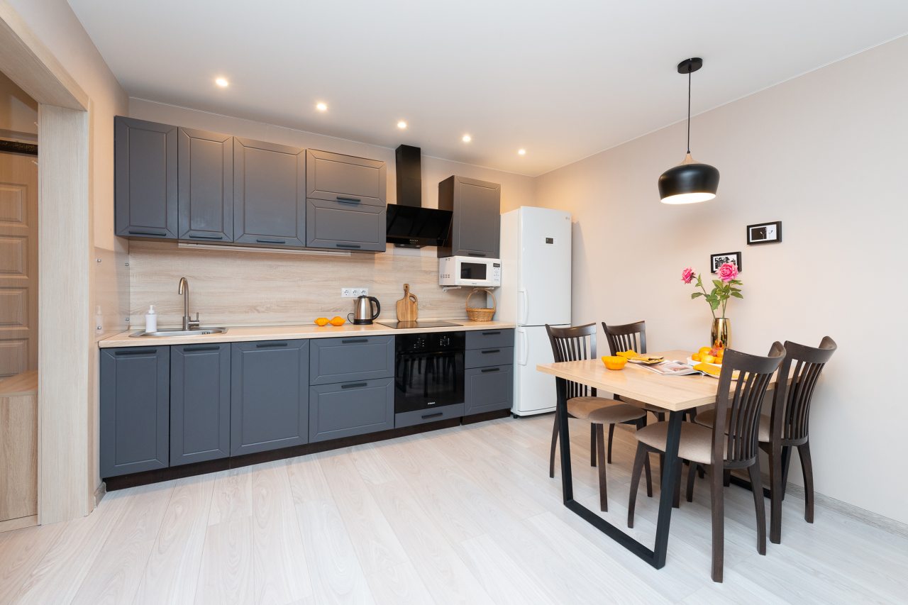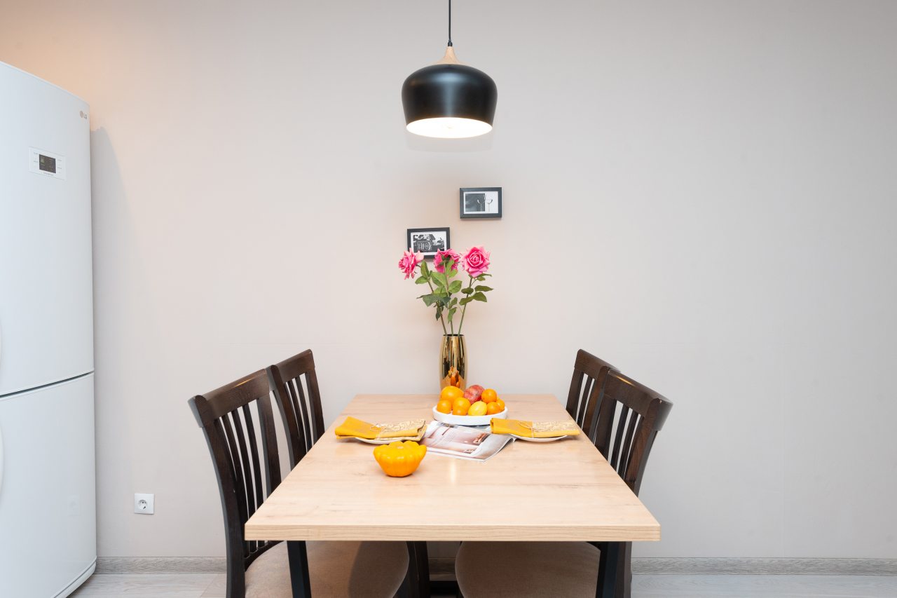 Это хорошая просторная квартира, в которой нас 5 человек с комфортом разместилось. Приезжали мы сюда по делам, а также была еще культурная программа. В итоге все успели. Приятно было уставшими возвращаться в уютную квартиру на отдых. Укомплектованная кухня тоже пригодилась, хотя больше ели в городе.