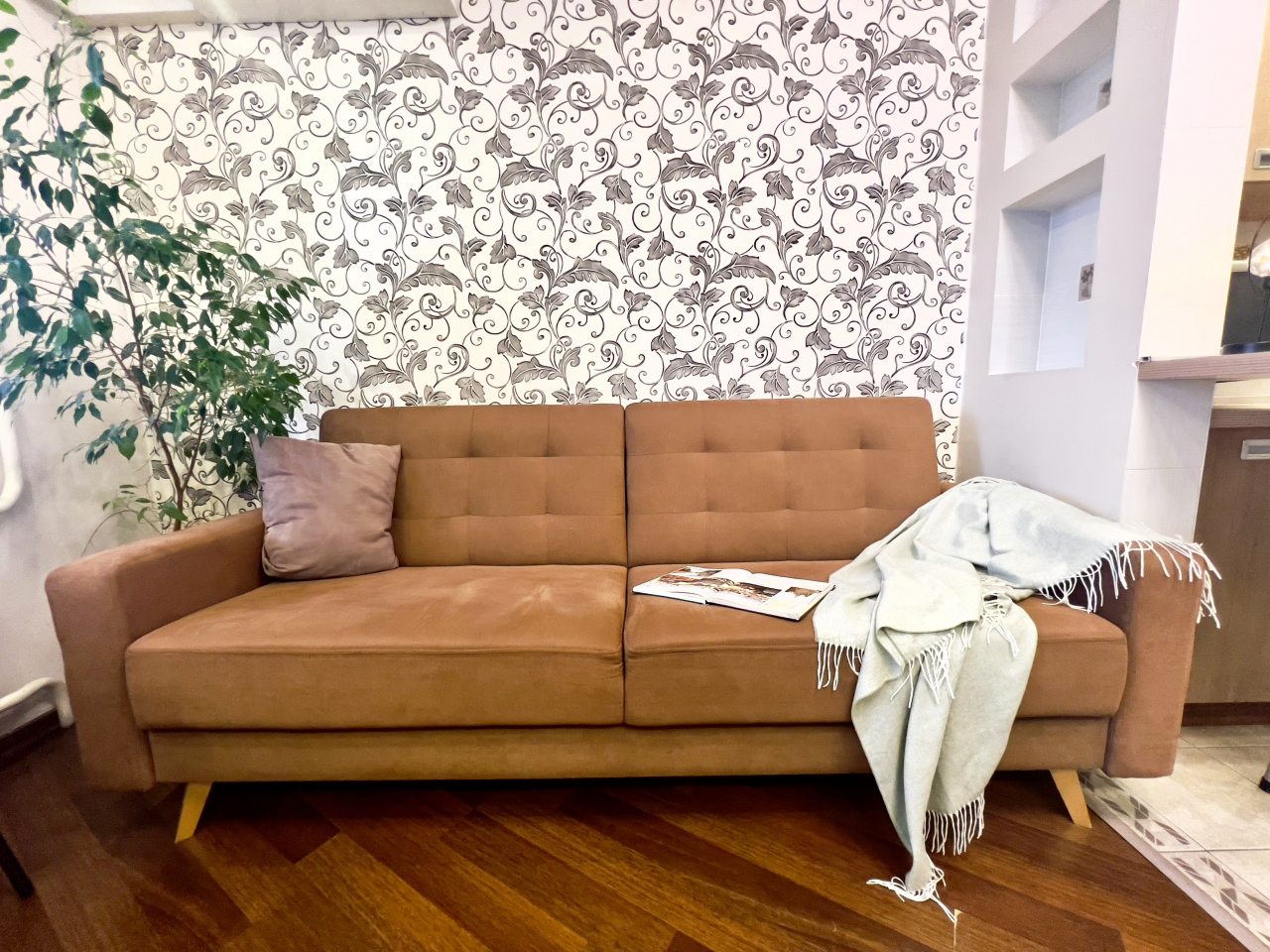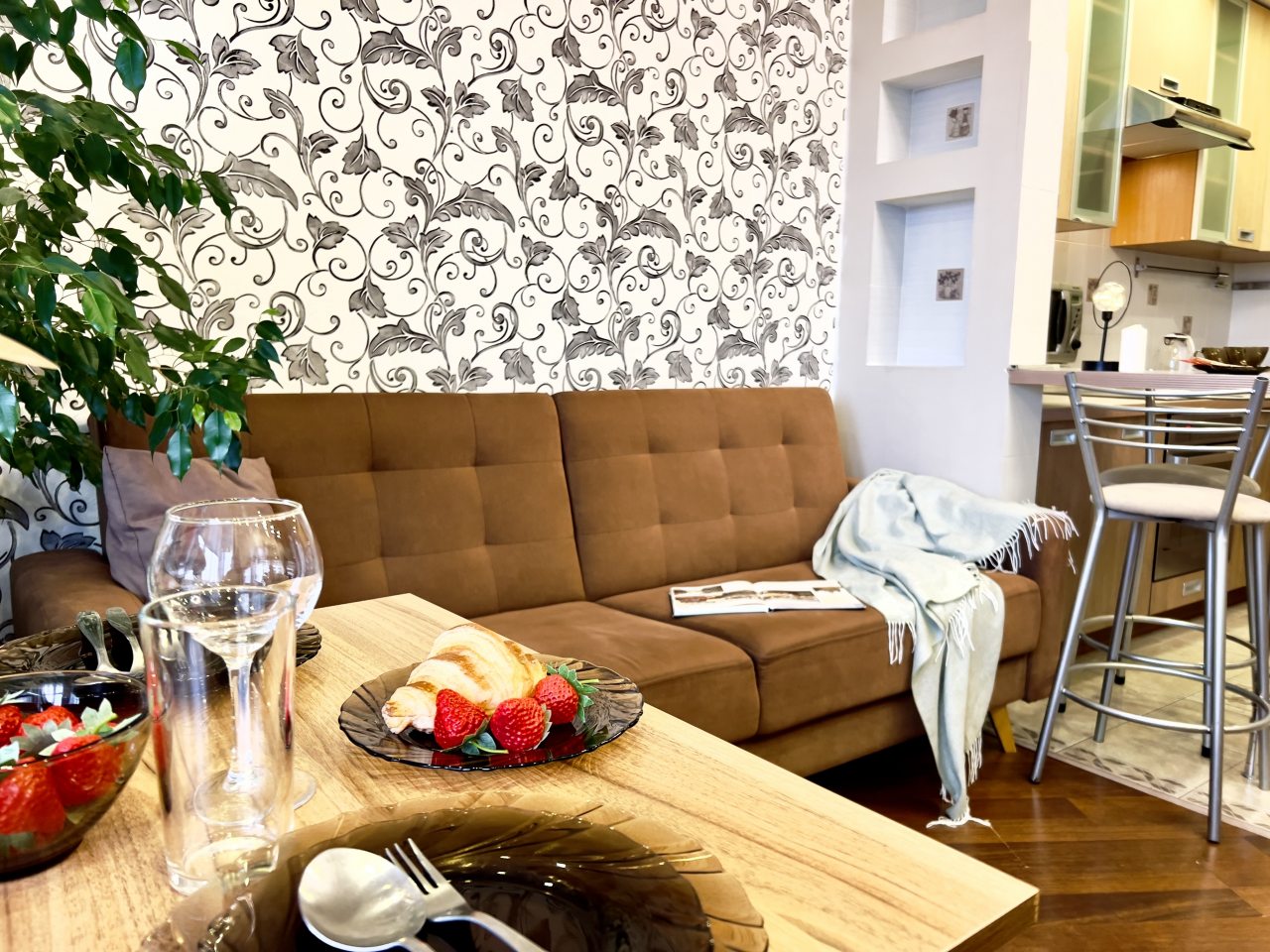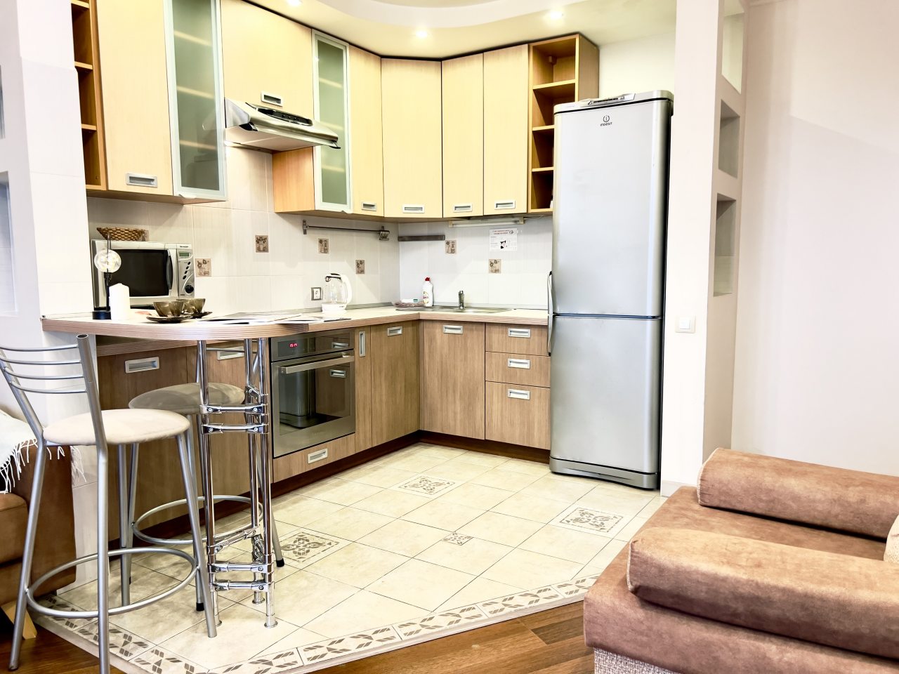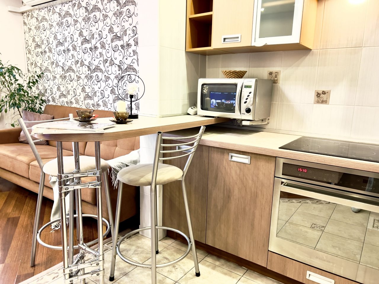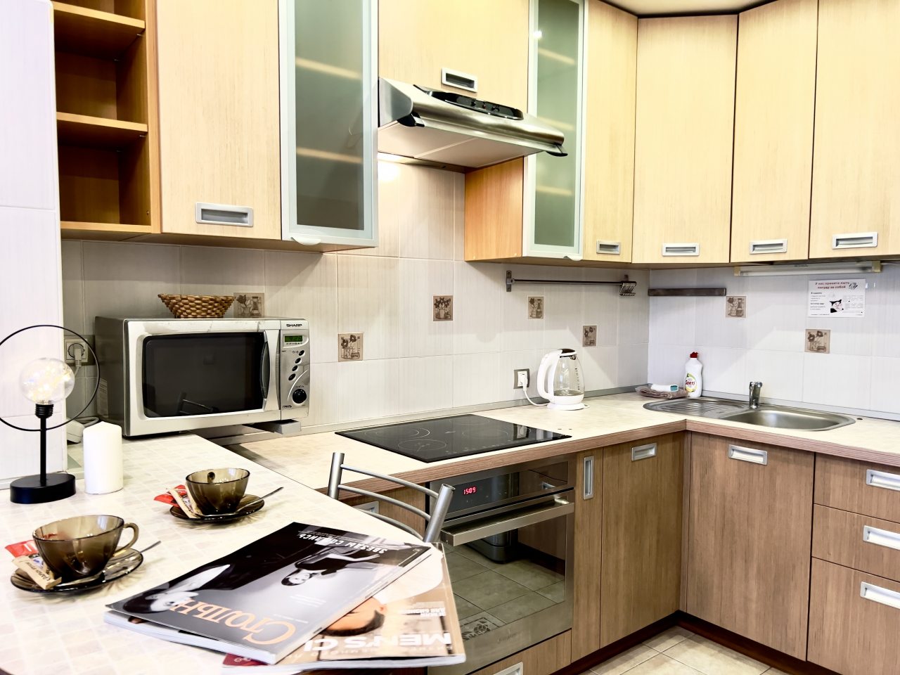 Внутри приятно пахло, и было чисто до блеска. Удобное расположение позволило быстро добираться до центра и обратно. Хозяева оставили инструкцию по пользованию бытовой техникой, что сильно облегчило задачу. Вечерами было особенно приятно отдыхать у телевизора с чашкой чая. Хорошо, что есть полноценная кухня, где можно спокойно готовить. Окна выходят на двор, что добавляет уединения.