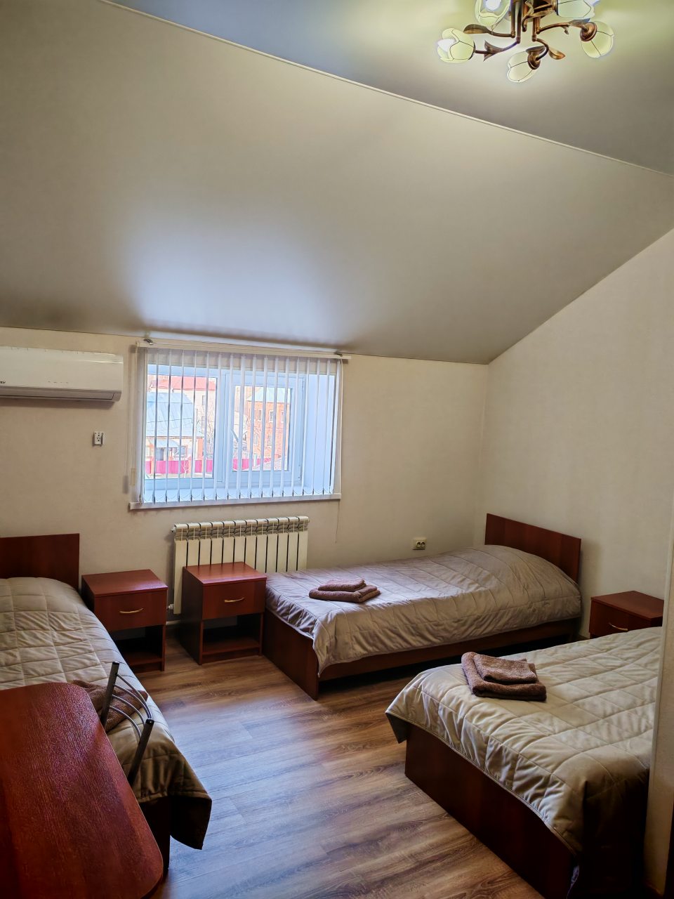 Пребывание в гостинице было приятным и комфортным. Номер был безупречно чистым, с аккуратно застеленными кроватями. Хотя в номере были предусмотрены спальные места для четырех человек, я имел возможность насладиться его уютом и уединением в одиночестве. Для удобства гостей в номере имелась отдельная ванная комната. Для хранения вещей были предусмотрены закрывающиеся шкафы. Общая кухня, оборудованная необходимой посудой, плитой, чайником, СВЧ и холодильником, давала возможность приготовить пищу по своему усмотрению.