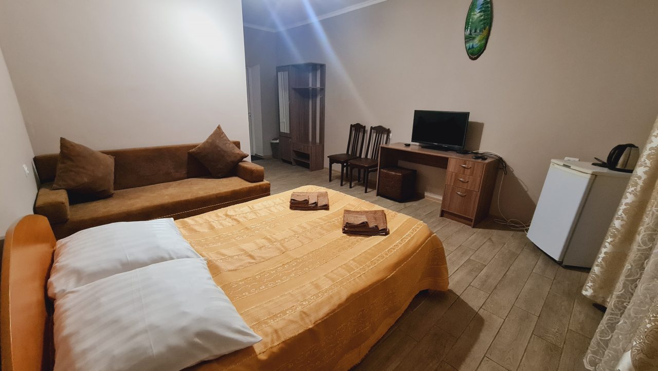 Из недостатков: если вы едете с семьей поплавать, проезжайте мимо. Я отдыхала с двумя детьми. Рядом компания не выпивших, а пьяных людей с детьми. Сначала дети ели сухарики в бассейне, потом присоедились их родители с алкоголем и сигаретами. Прям в бассейн. Никому из администрации дела до этого не было. Про номер. ПОЛЧИЩА МУРАВЬЁВ, ЧАЙНИК С ИЗВЕСТЬЮ В САНТИМЕТР, ЗАВТРАК ДВА ЖИРНЫХ МАСЛЯННЫХ БЛИНА И БУТЕРБРОД С МАСЛОМ. Разовый стаканчик с пакетиком чая и сахар. Ложек нет. Воду берите с того самого чайника. Горничная по просьбе принесла чистый чайник, очевидно для персонала.