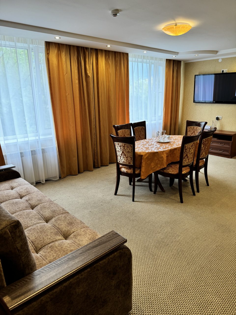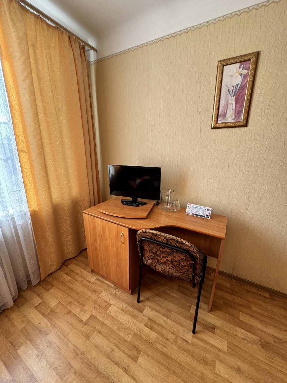 Для того чтобы переночевать, решил тут снять номер. Я об этой гостинице слышал разное от многих людей. Меня привлекло еще то, что она в центре, а я подумал, что могу еще и в театр перед дорогой успеть сходить. Относительно цены – все мне подходило. Я оплатило картой, что также меня устраивало. Сама гостиница с типичной обстановкой, есть талончик на еду.