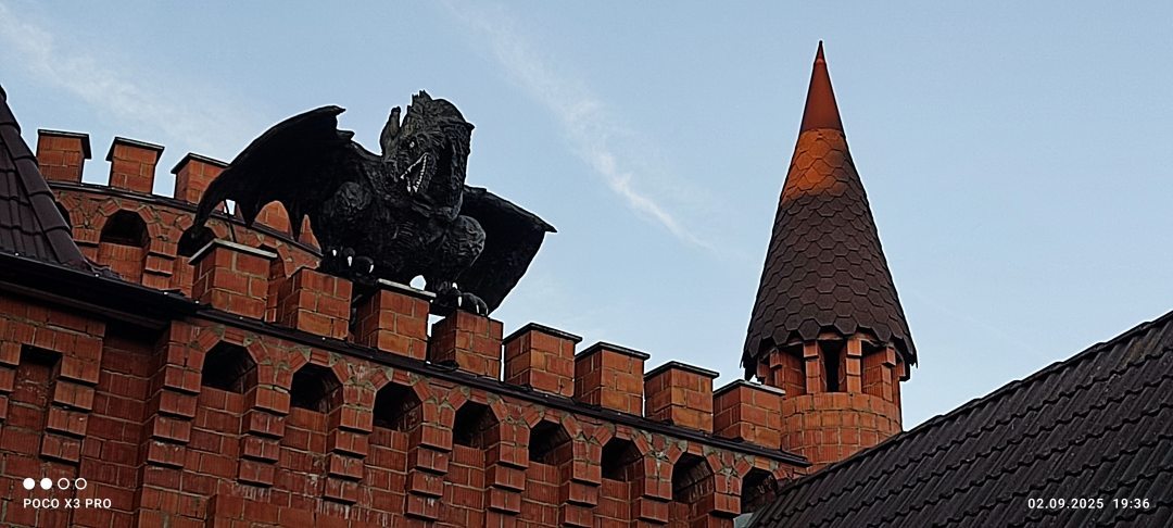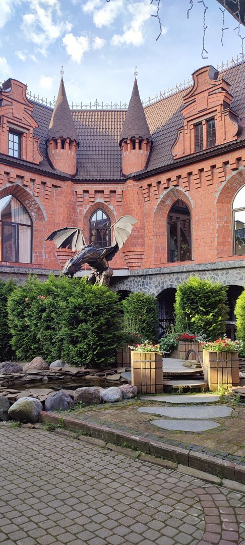 Прекрасный отель в стиле рыцарского замка. Очень атмосферное место, 5 минут езды о центра, при этом очень тихий спокойный район в частном секторе. Отличные вкусные завтраки, классный бассейн!