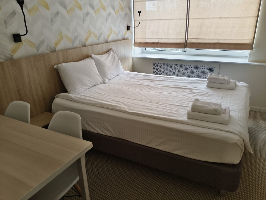 Сама гостиница находится в центре, очень удобно, шаговой доступно располагаются столовые и кафе, с 5 минутах магазин пятерочка. Девочки на ресепшене отзывчивые, вежливые. Номер соответствовал описанию, чистый, все что надо есть