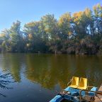 Отличное место для отдыха, приезжали сюда с семьей, прекрасно провели время вместе. Домик у нас был уютный, места всем хватило. На кухне есть все необходимое: посуда, микроволновка, чайник и т.д., так что голодными мы не ходили. Место тихое, рядом с рекой, можно сразу выйти на берег и купаться. Также, есть различные настольные игры: шахматы, теннис и другие. Мы обязательно приедем сюда еще раз, нам все понравилось!