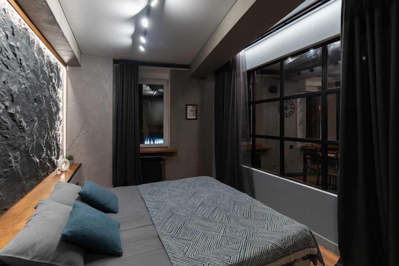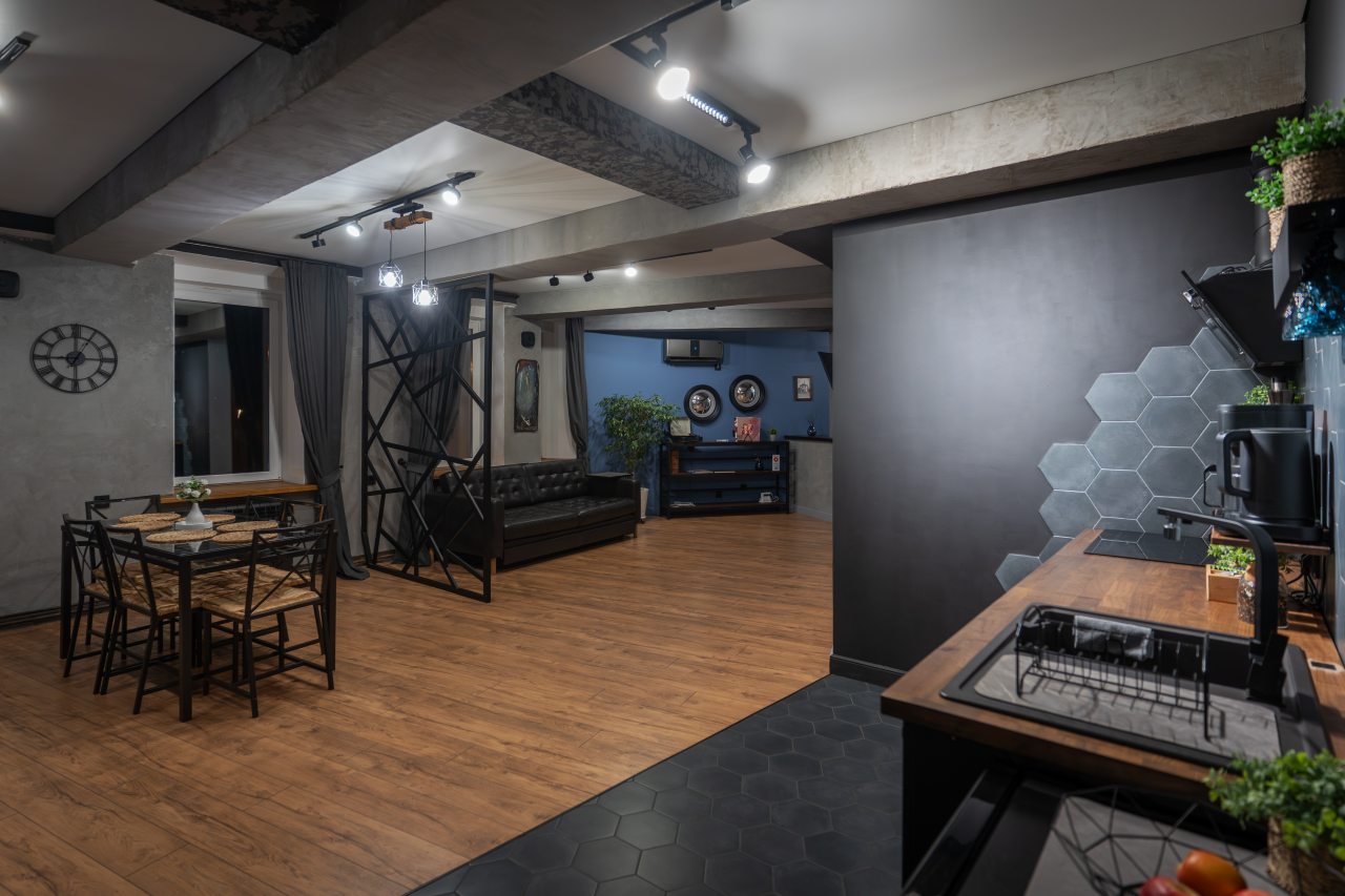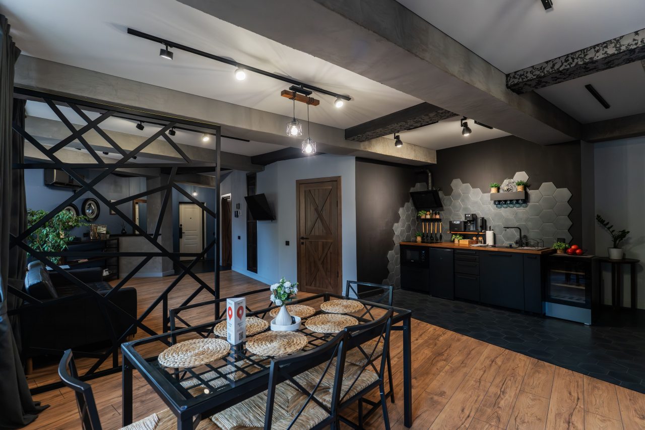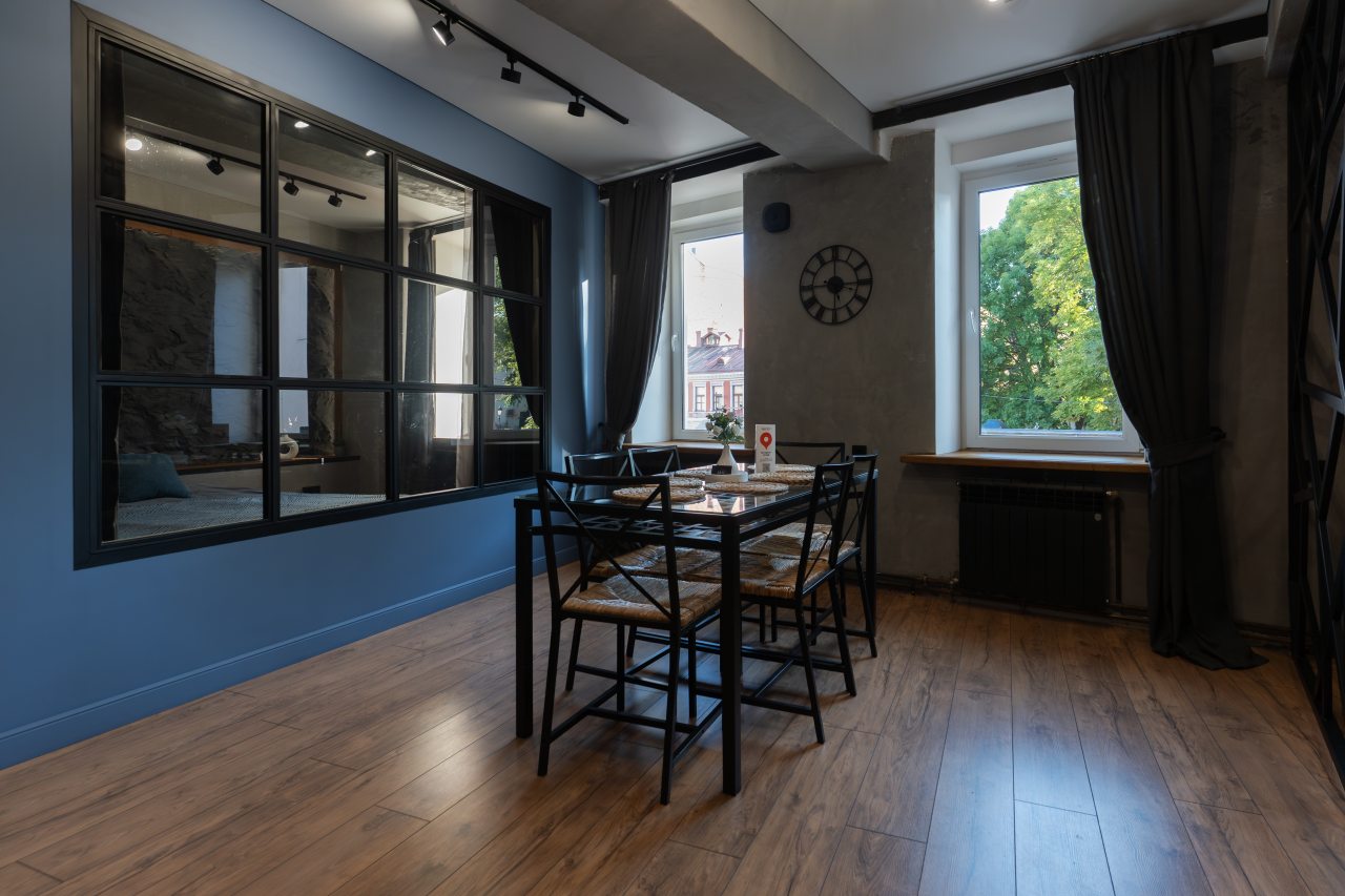 В самом центре города! Безумно стильные апартаменты, дизайнеру отдельное спасибо за такую красоту. Кухня прекрасно укомплектовано. Красивые столовые приборы качественные, много мелких полезностей. Все чисто.