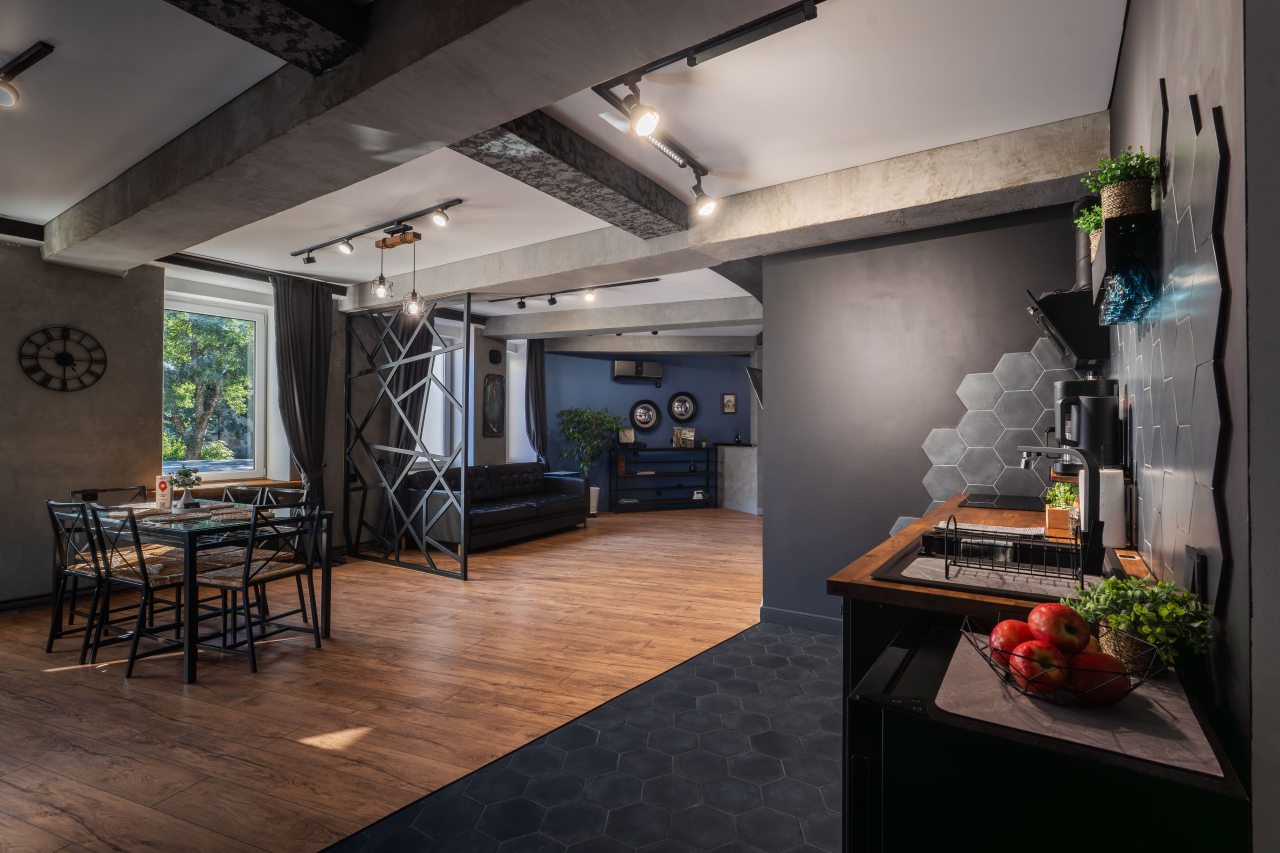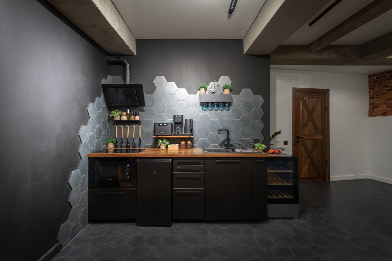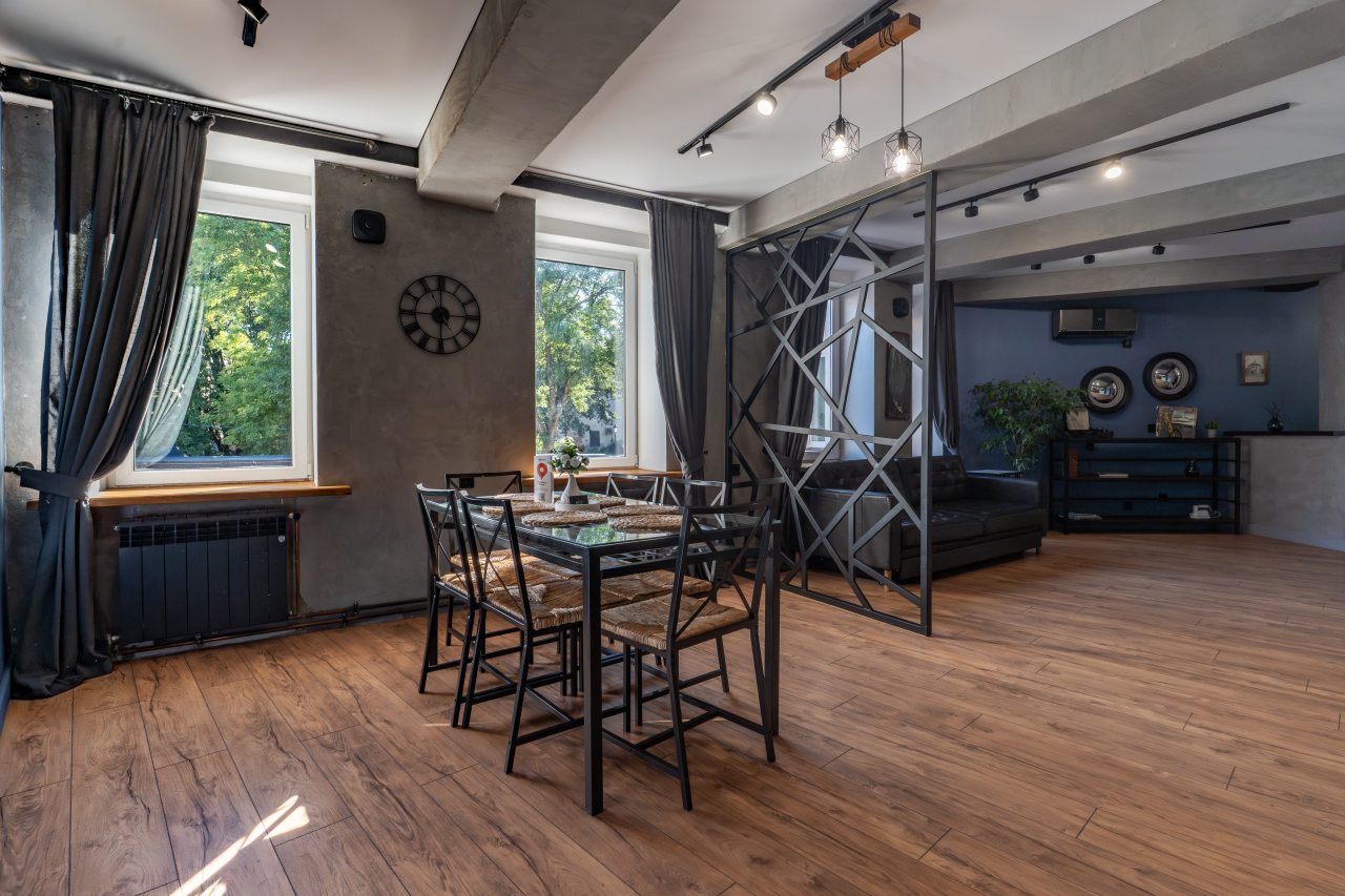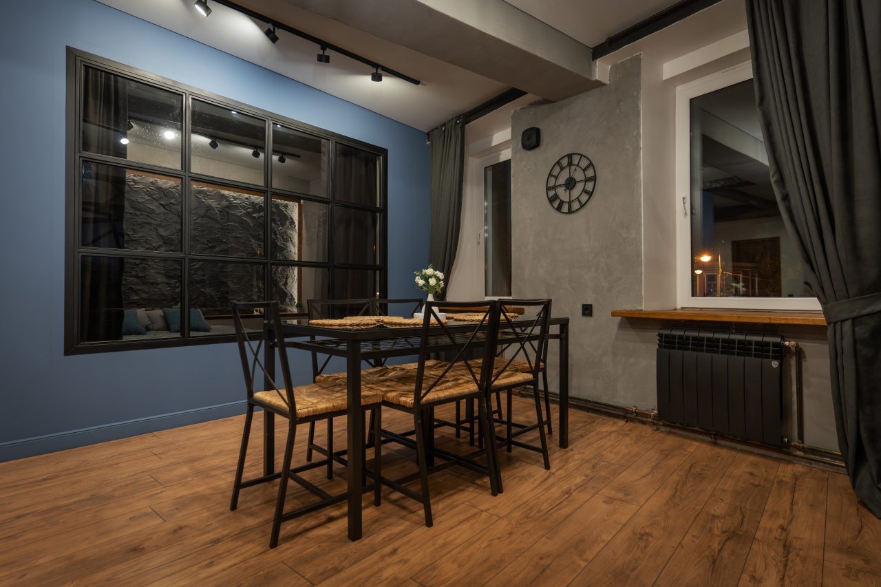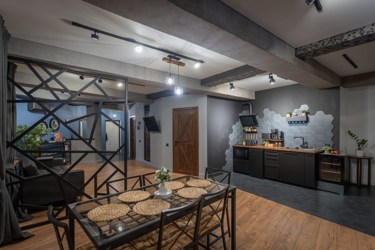 В самом центре города! Безумно стильные апартаменты, дизайнеру отдельное спасибо за такую красоту. Кухня прекрасно укомплектовано. Красивые столовые приборы качественные, много мелких полезностей. Все чисто.