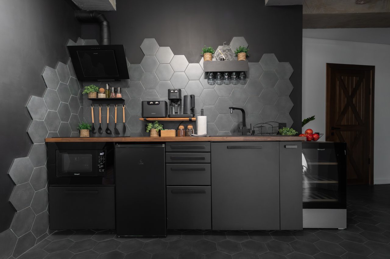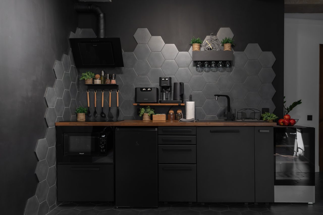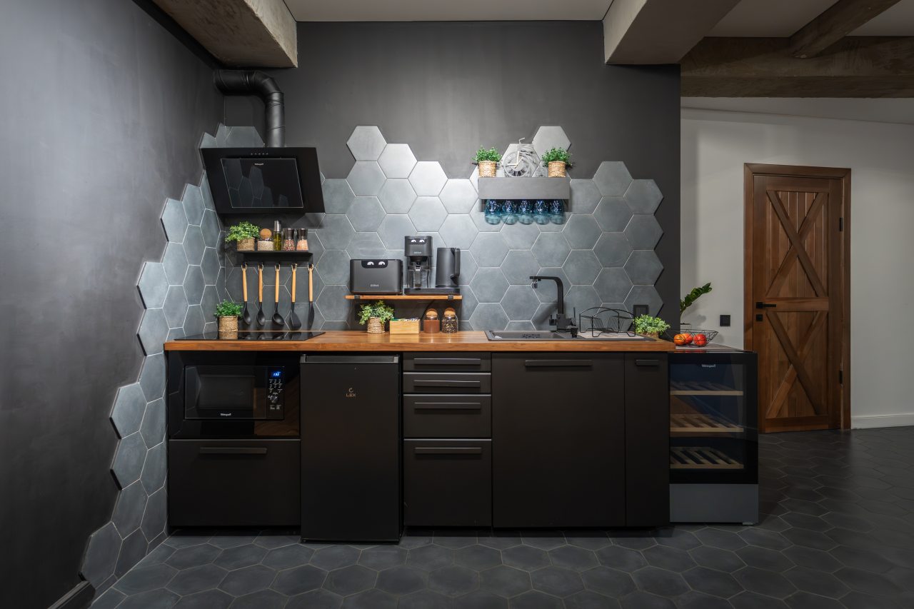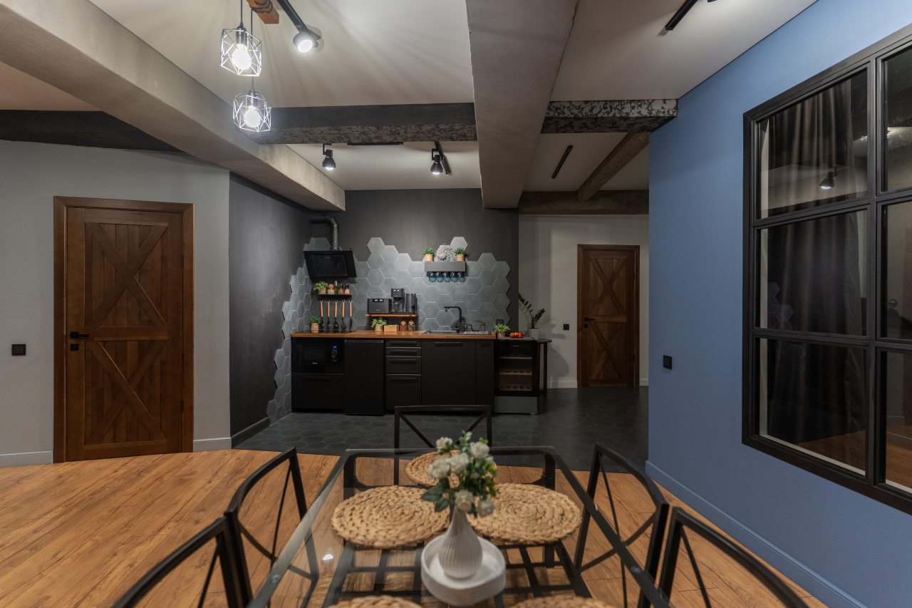 В самом центре города! Безумно стильные апартаменты, дизайнеру отдельное спасибо за такую красоту. Кухня прекрасно укомплектовано. Красивые столовые приборы качественные, много мелких полезностей. Все чисто.