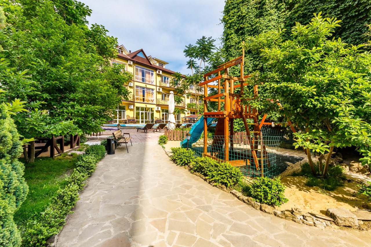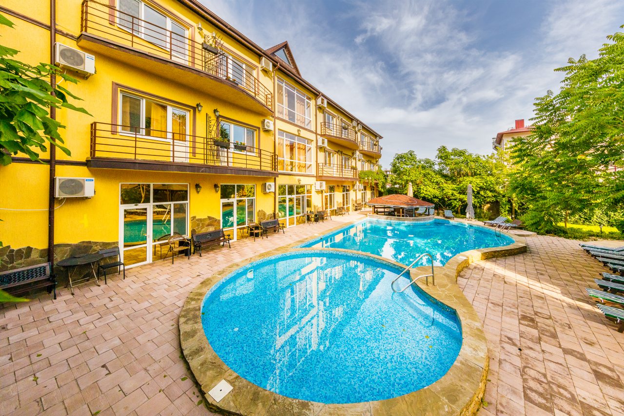 Остановились в этом гостевом доме отдохнуть всей семьей. Мы прекрасно провели время, есть все удобства для пребывания с детками, даже можно воспользоваться коляской. Также имеется детская площадка и игровая комната. Приятно порадовало оснащение номера и большой бассейн с лежаками. Отличное отношение персонала к гостям, все максимально вежливо и комфортно.
