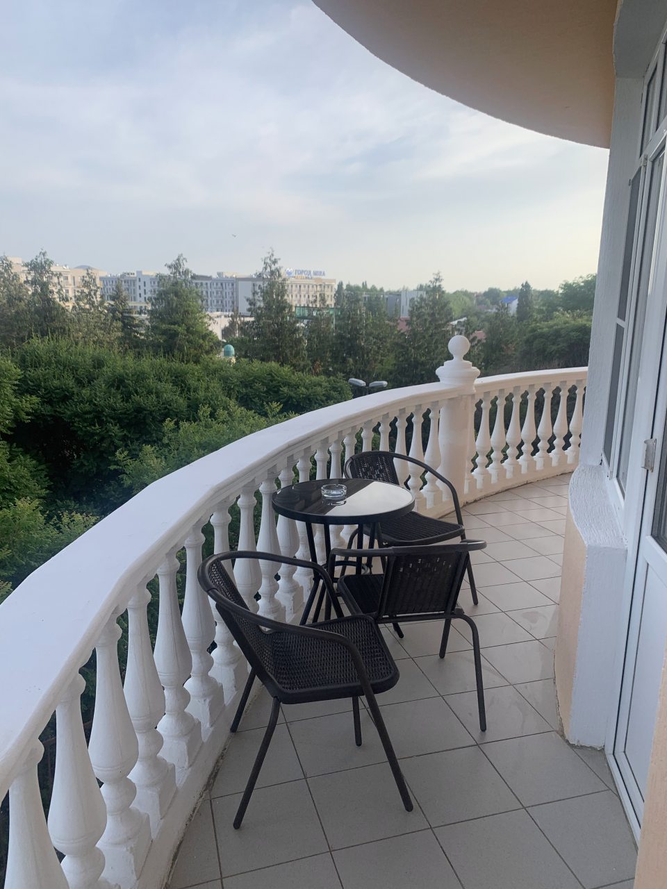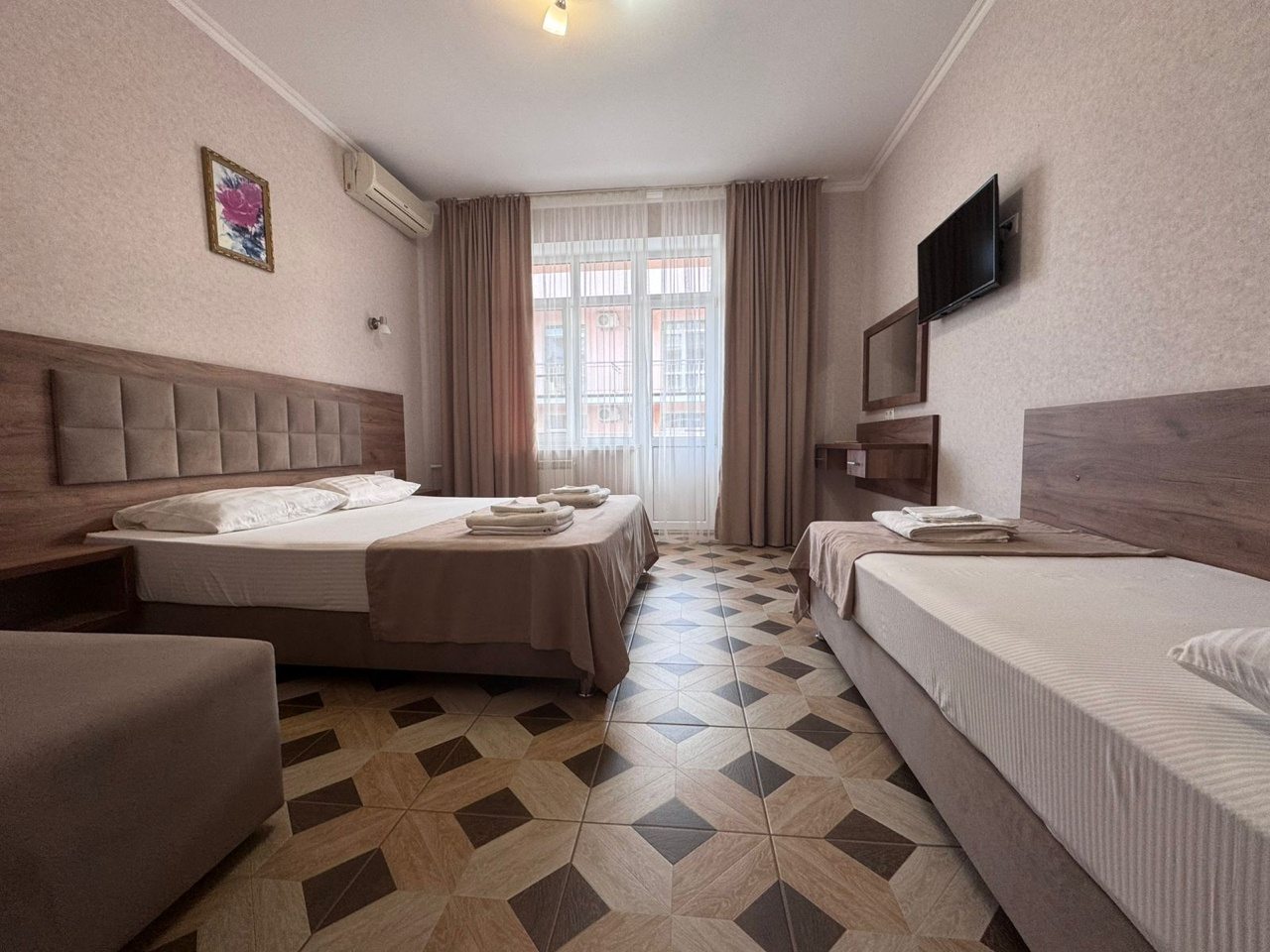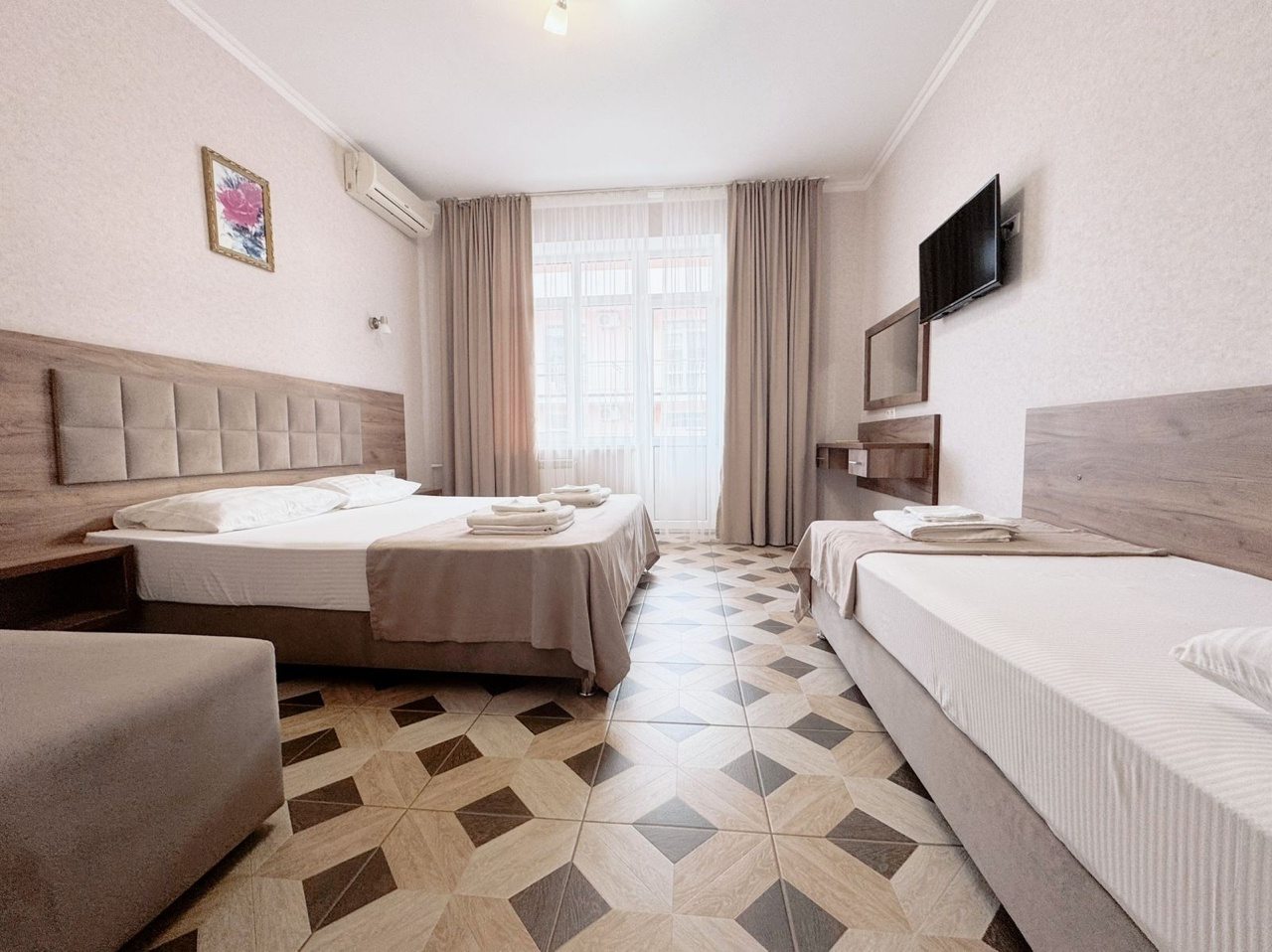Выбрали этот отель из-за его современного фасада и стильного оформления — в реальности всё так же, как на фото. Просторная территория с бассейном, уютные беседки, детская площадка — отдыхали с комфортом. Номера свежие, видно, что здание новое и всё ещё в идеальном состоянии. Удобное местоположение — и до набережной недалеко, и шум с улицы не мешает. Кормят вкусно, а столовая чистая и светлая. Вечером приятно посидеть на балконе или в дворике.