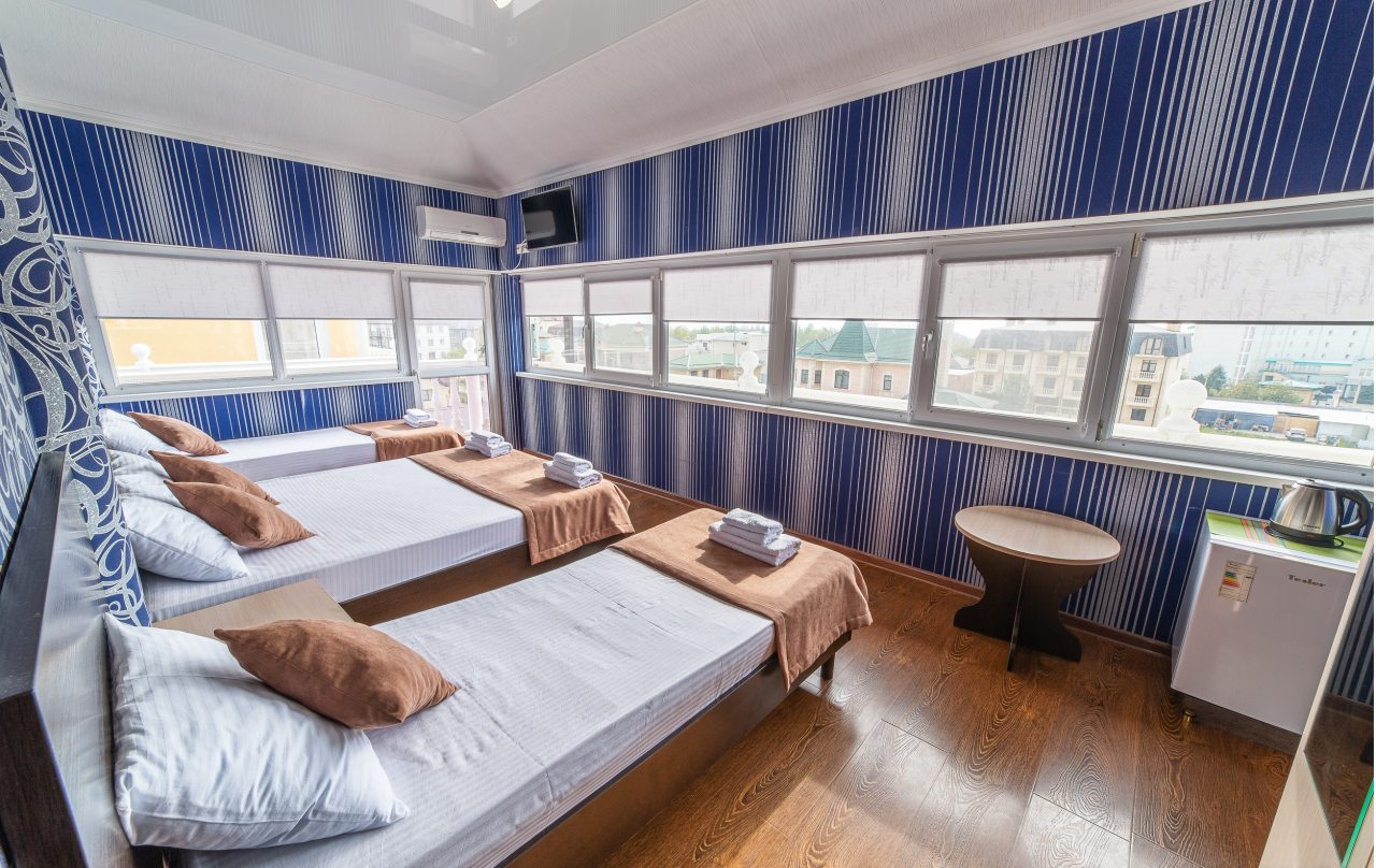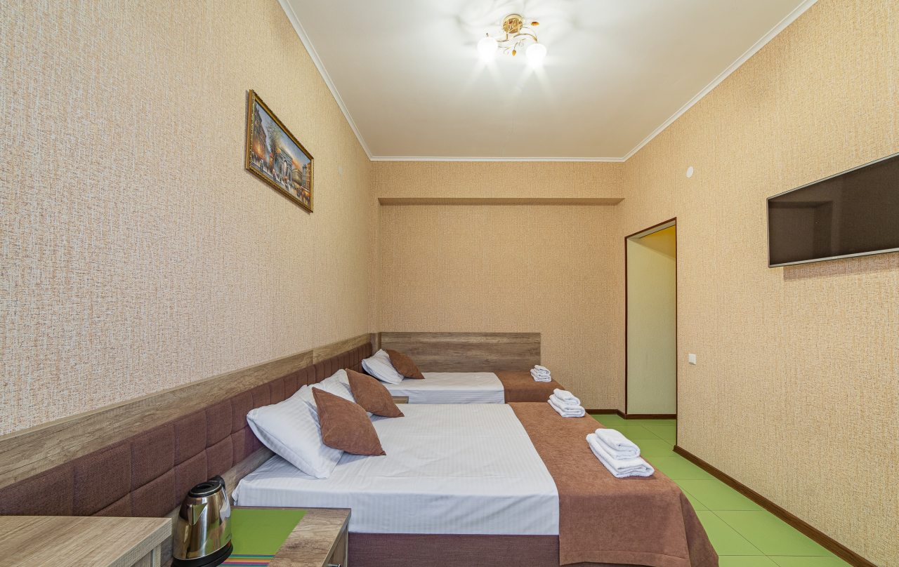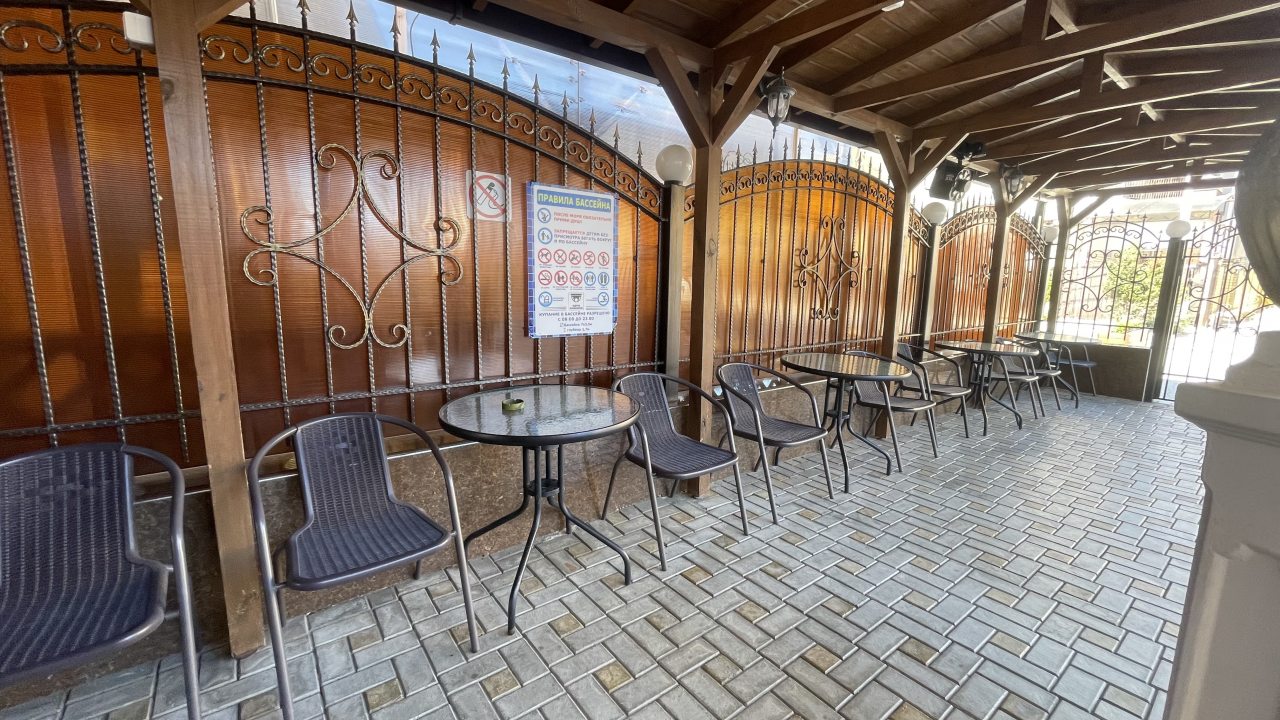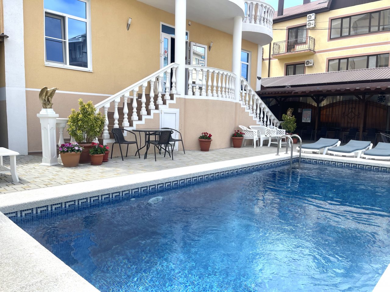 Бассейн подогреваемый чистейший , купаться вечером одно удовольствие, трансфер ездит до моря и забирает с утра до вечера по расписанию ,это вообще очень порадовало очень,столовых кафешек очень много, пять минут пешком и центр, Витязево покорил меня , отель чистый с ремонтом хорошим