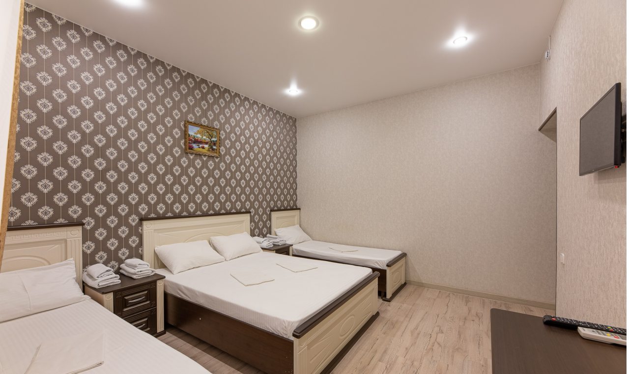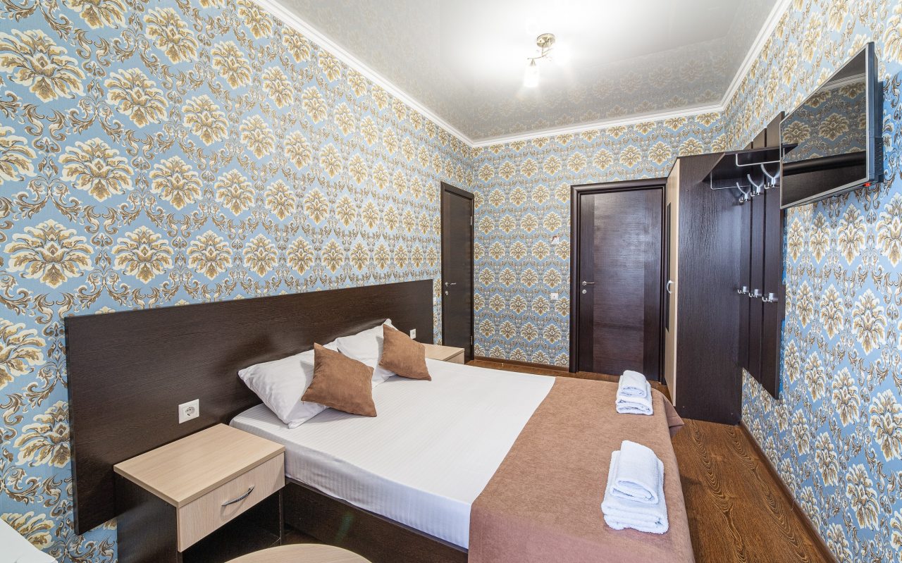 Номер стандартный, есть в нем просторная кровать, шкаф небольшой для одежды. Постельное хорошего качества. Матрас упругий, без пятен, посторонних запахов. Подушки новые. На стене телевизор плоский имеется. Работает интернет. Хорошо, что розетки возле кровати. Звукоизоляция отличная, никого не слышал. Сейф имеется. Я рекомендую посетить этот отель.