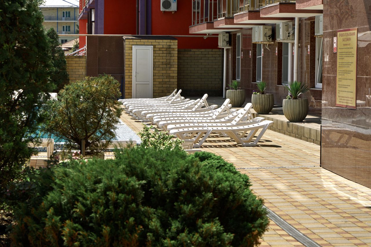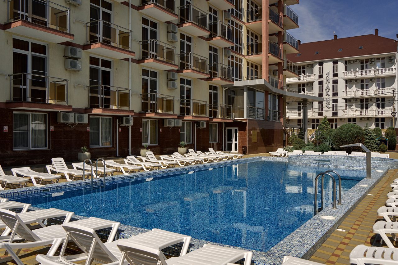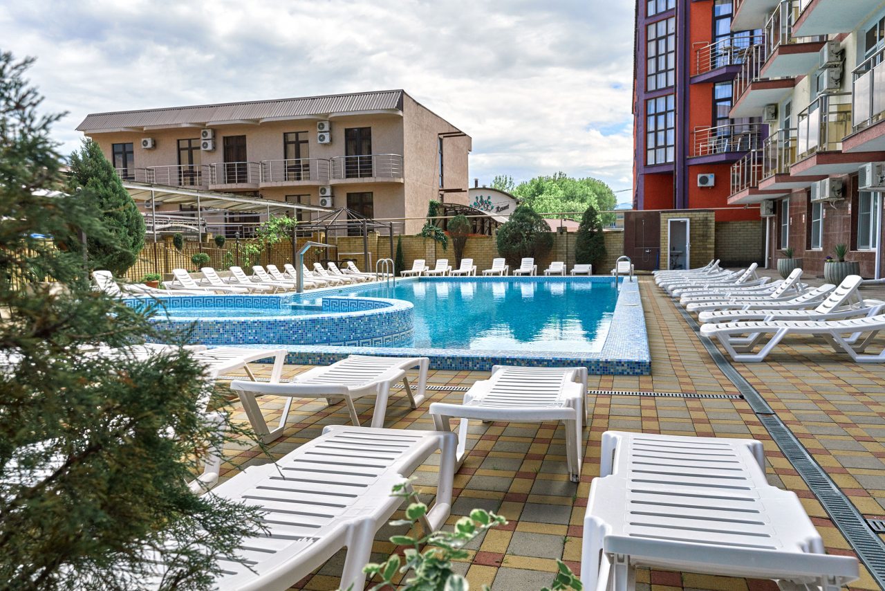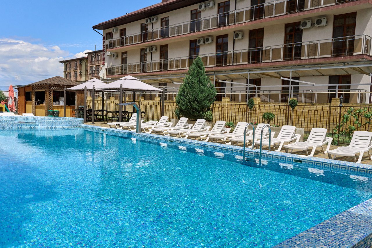 Останавливались в июле — отель оставил яркое впечатление благодаря отличной территории и доброжелательной атмосфере. Много зелени, красивый ландшафтный дизайн и уютные уголки для отдыха создают ощущение загородного пансионата. Бассейн чистый, вода комфортной температуры, дети были в восторге. В номере всё аккуратно и просто, постельное бельё качественное. Завтраки вкусные, порции сытные. До моря минут десять неспешным шагом.