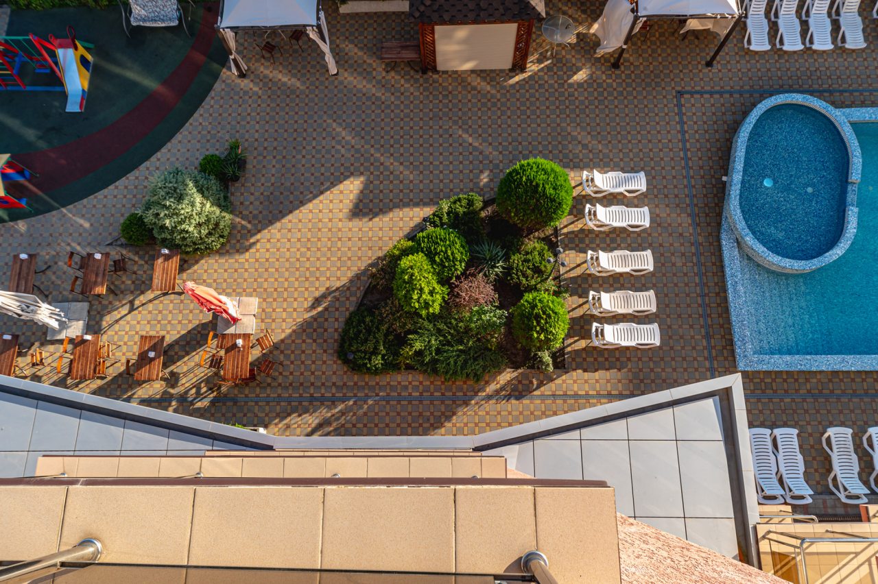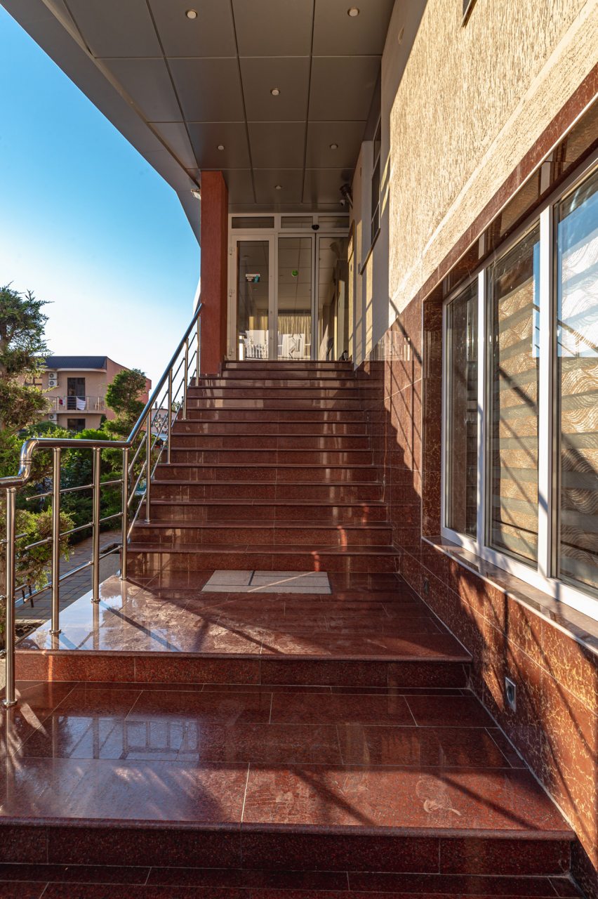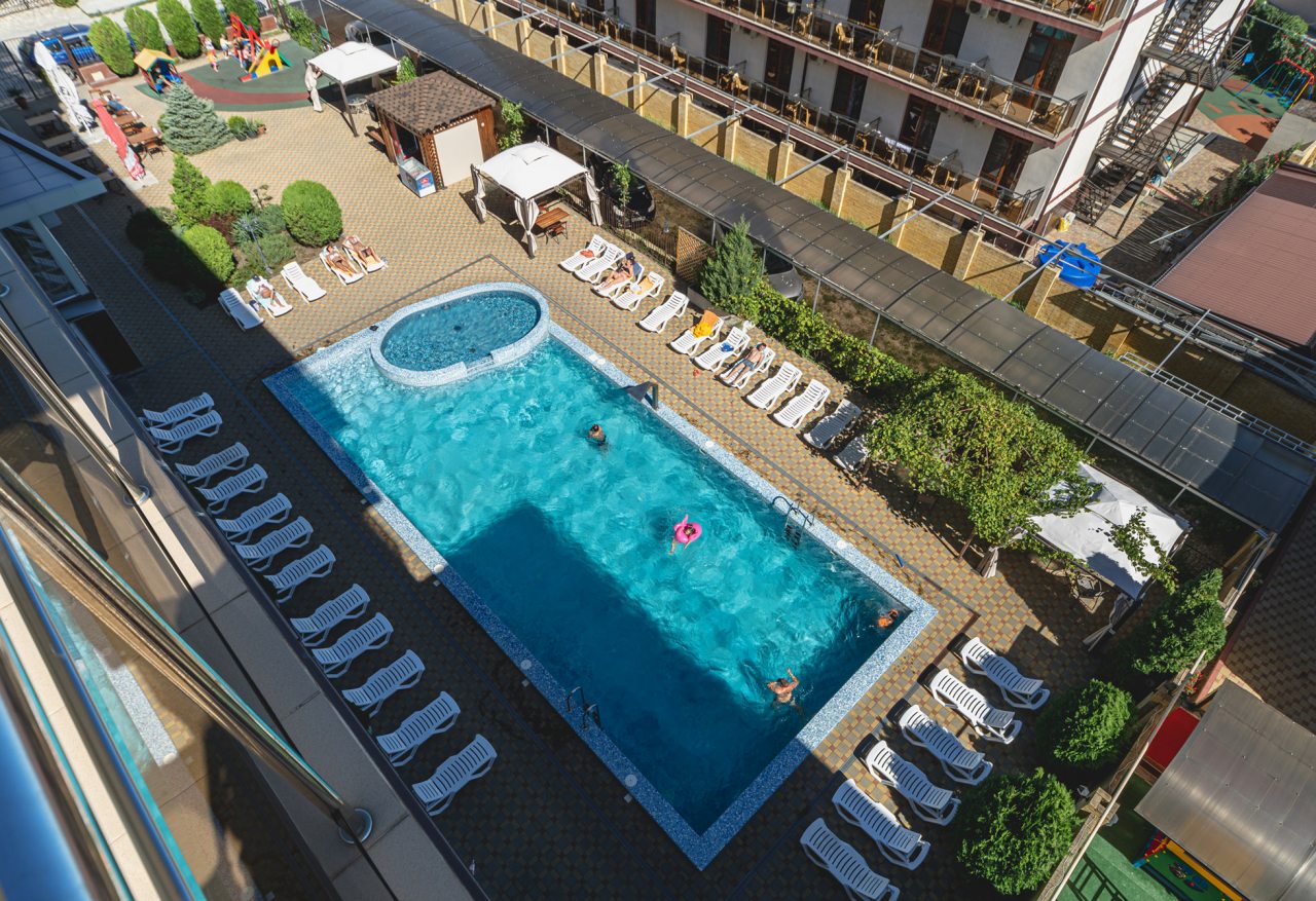 Останавливались в июле — отель оставил яркое впечатление благодаря отличной территории и доброжелательной атмосфере. Много зелени, красивый ландшафтный дизайн и уютные уголки для отдыха создают ощущение загородного пансионата. Бассейн чистый, вода комфортной температуры, дети были в восторге. В номере всё аккуратно и просто, постельное бельё качественное. Завтраки вкусные, порции сытные. До моря минут десять неспешным шагом.