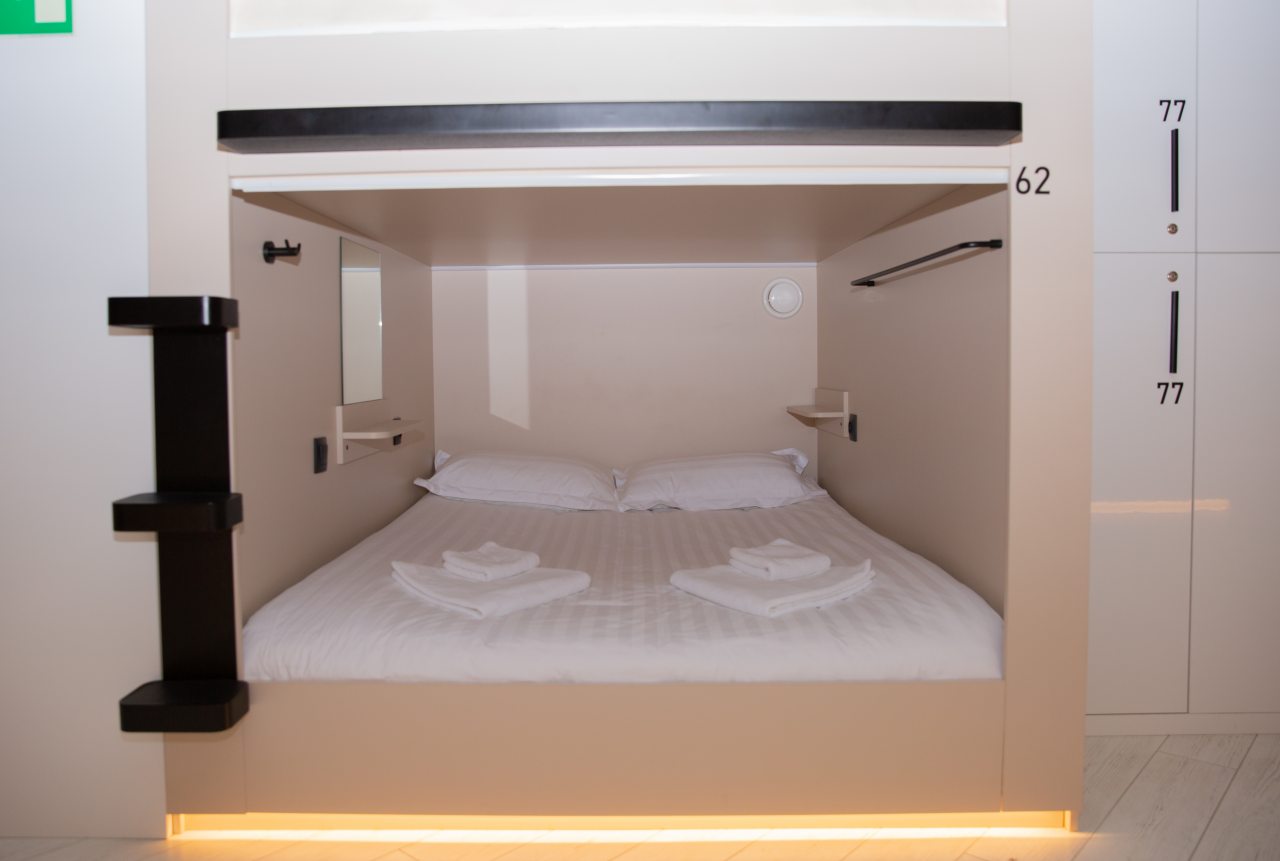 Хороший, современный хостелл, где вместо обычных кроватей капсулы. Чисто, белоснежные бельё и полотенца. Так же предоставляется тапочки, зубные наборы, беруши. Современные душевые где так же есть гель и шампунь, ватные палочки и диски, фен.