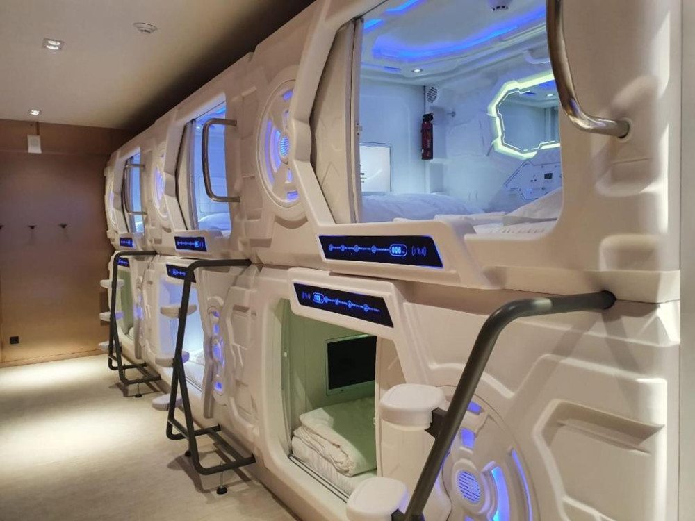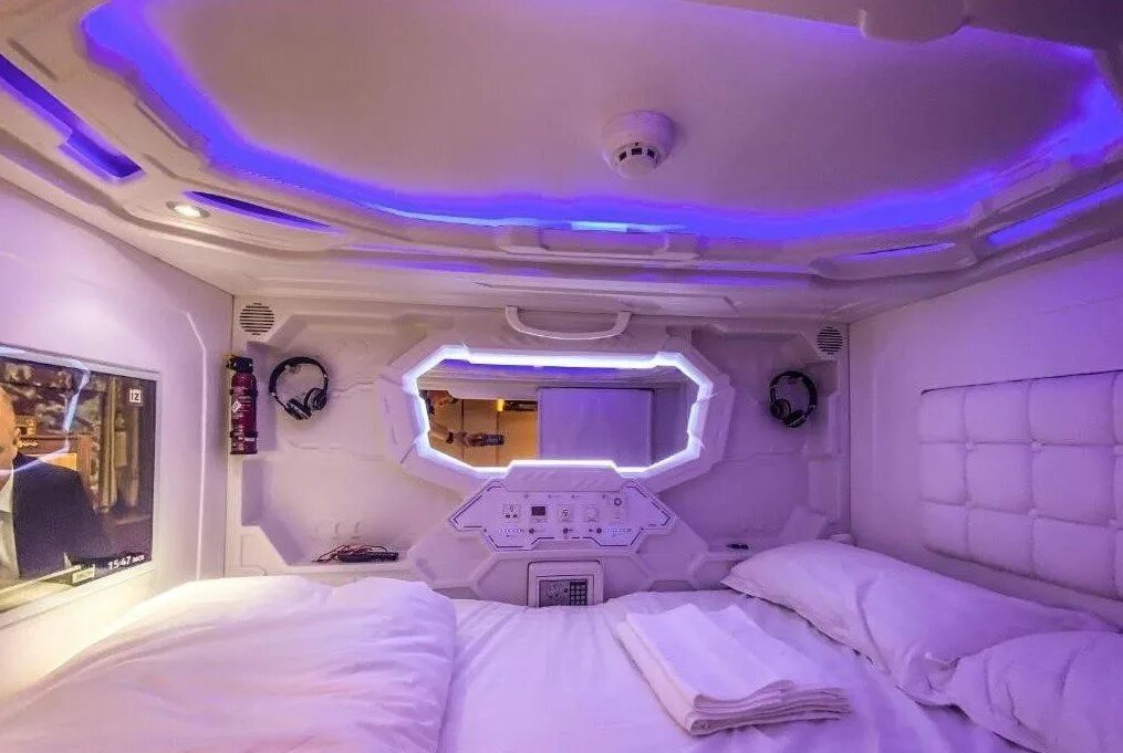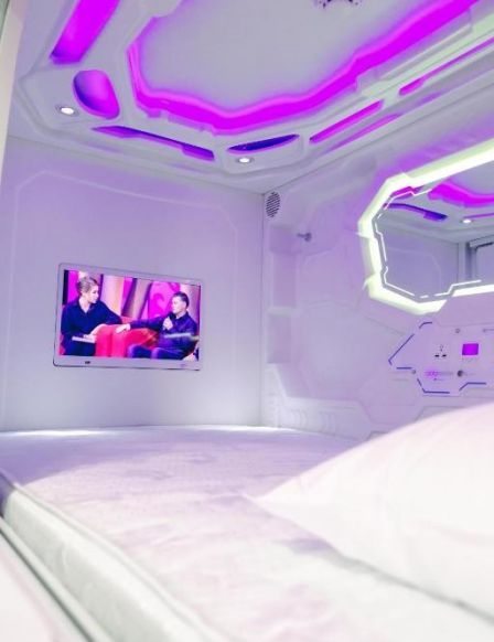 Очень удобная капсула, похожая на космическую. Звукоизоляция хорошая, вентиляция регулируется. Также регулируется подсветка. Матрац очень удобный, спать комфортно. Удобное расположение, в центре города. Есть телевизор.
