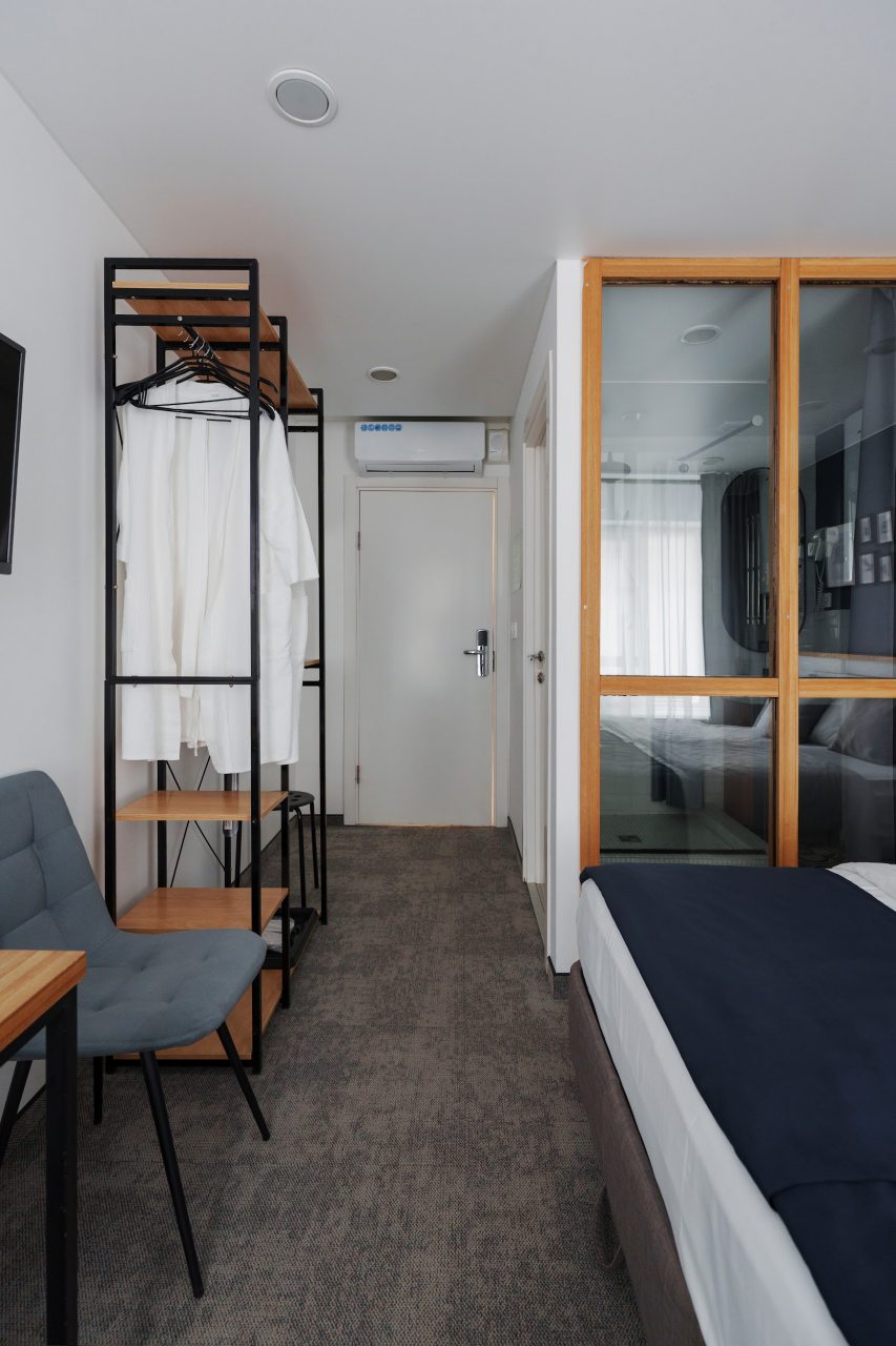 Просто потрясающий стильный отель в центре, находится рядом с ТЦ, поэтому вокруг кафе, рестораны, магазины. Сам номер в отеле идеально подходит для двоих. Все такое новенькое, есть халаты, чисто везде. Остались очень довольны.