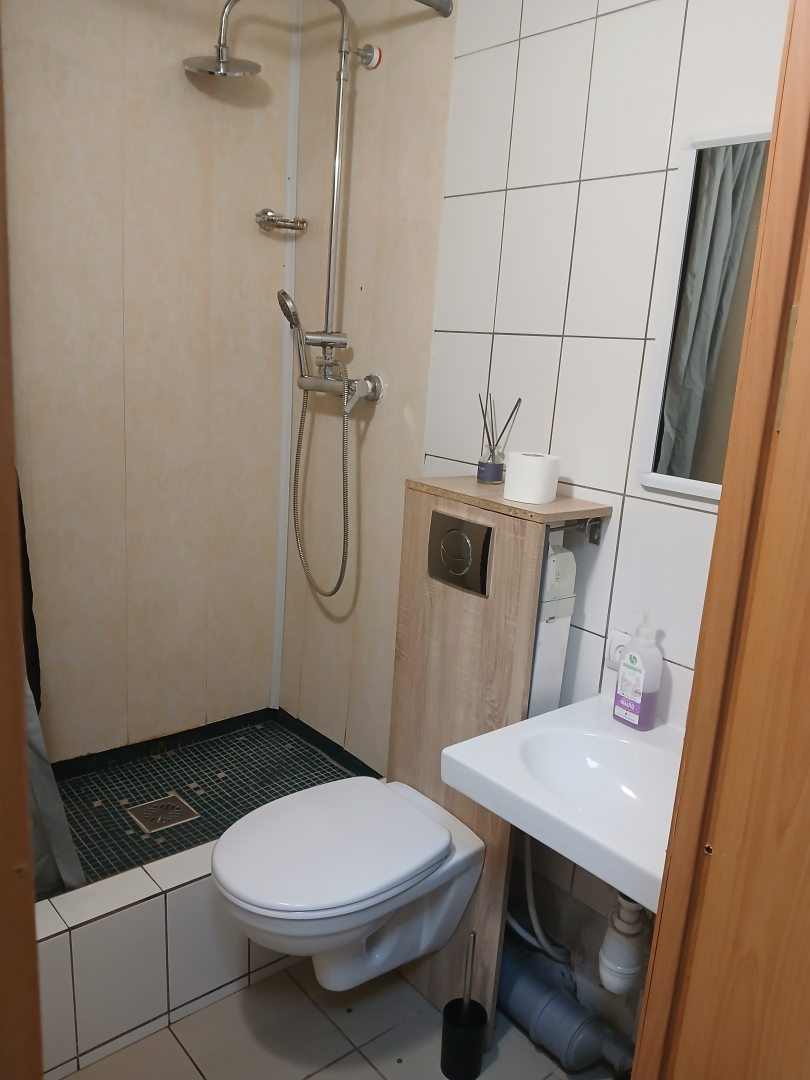 Из недостатков: общие кухонные принадлежности в крайне неприглядном виде: грязный чайник, грязная микроволновка, запах нечистот и неисправной канализации в коридоре.