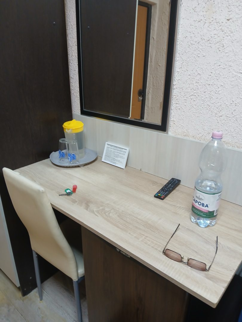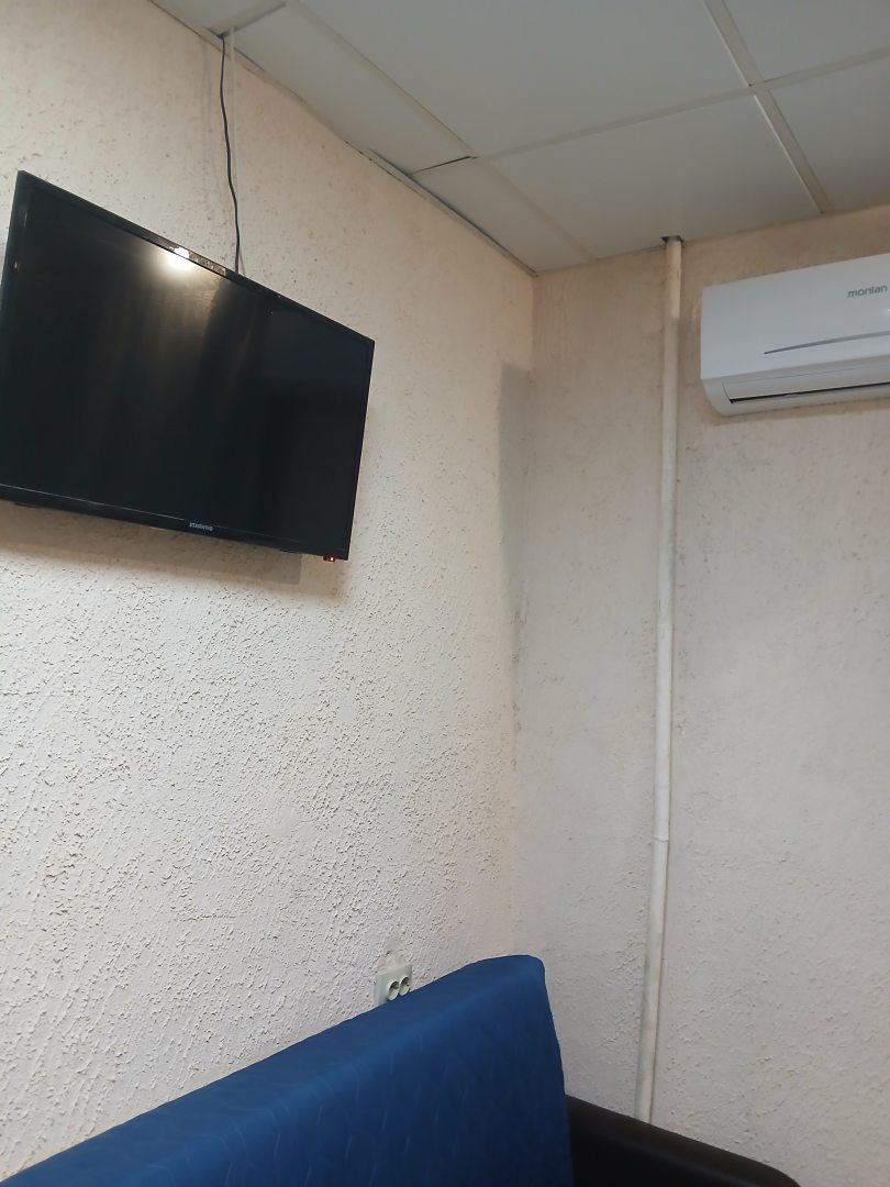 Бра и розетки с каждой стороны кровати, хороший смеситель с лейкой подсолнух с хорошим напором воды, просторный холодильник, расположение мини-отеля в глубине жилого комплекса, тишина, много зелени, чистый воздух и одновременно близость к центру города.