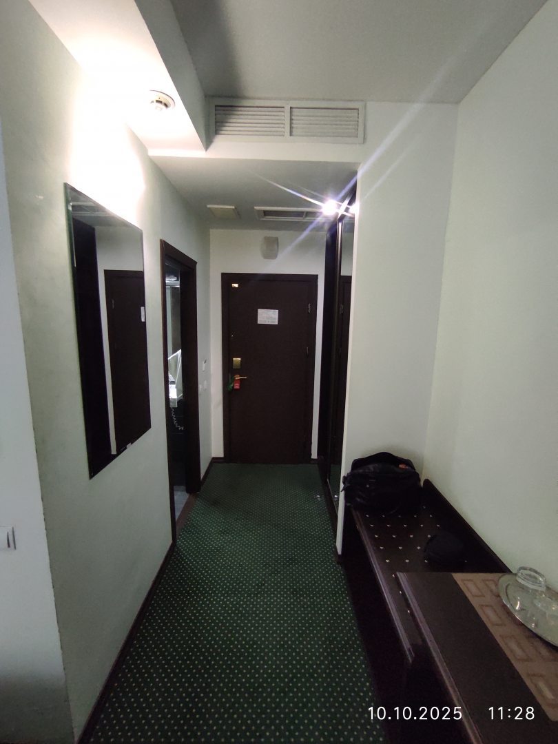 Из недостатков: я проживал в части отеля, которые относится к хостелу. Он находится в цокольном, считай, подвальном этаже. В номере чисто, но очень экономно. Нет ни одноразовых тапочек, ни окна, ни даже освежителя воздуха в туалете, хотя, наверное, сказался мой ранний заезд и мне не успели в номер это все положить. В номере также нет кондиционера и мало розеток. Например, над столом, за которым можно и поработать, могли бы сделать хотя бы пару розеток, чтобы можно было, не бегая по номеру, зарядить сразу ноут, телефон или еще какой-то гаджет. В целом, учитывая, что в номере только ночуешь, вполне сносно. Да и цена соответствует сервису. Для более комфортного проживания есть более дорогие номера.