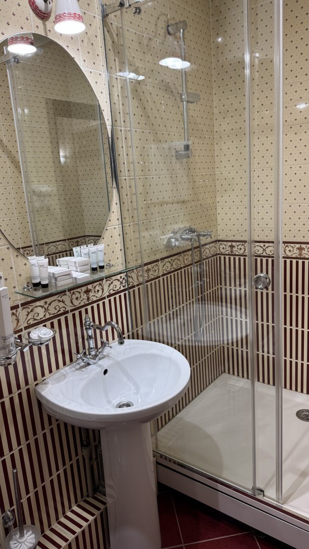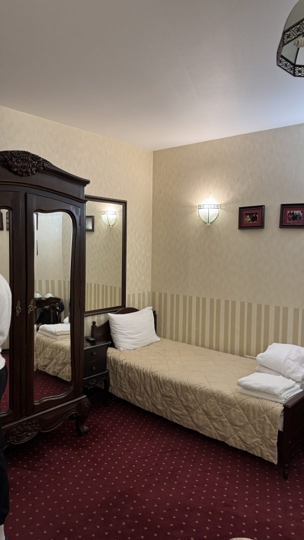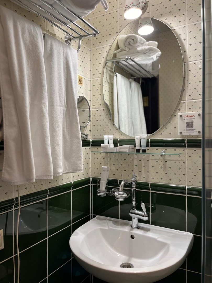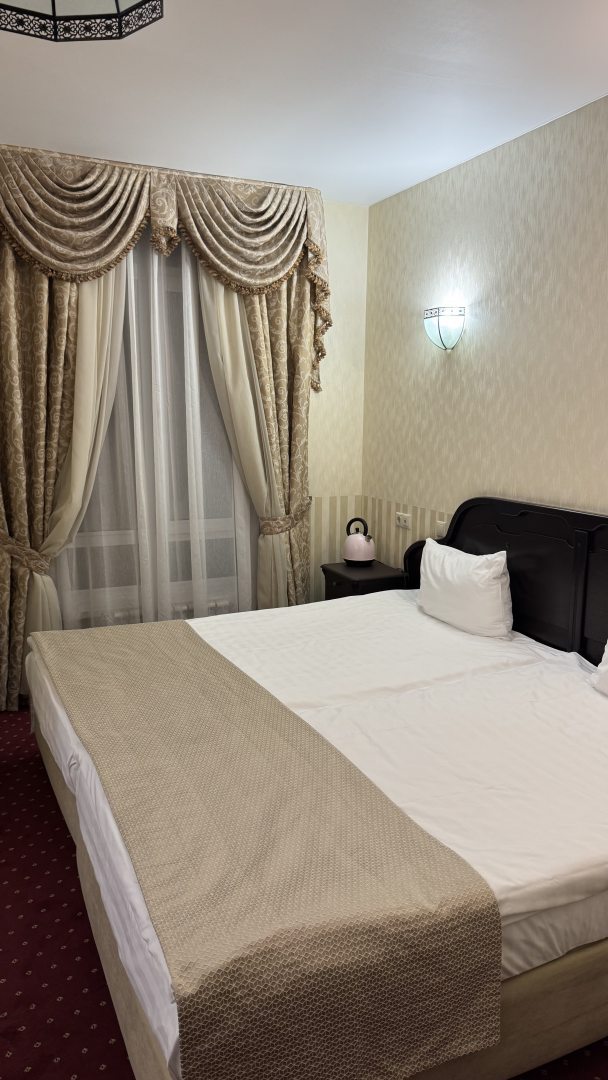 Бронировали два двухместных номера Делюкс. Разместили на 3 этаже. В одном из номеров даже было дополнительное третье спальное место. Все чисто, опрятно, косметические принадлежности (шампунь, гель, зубной и бритвенный набор, мыло, шапочки для душа) в наличии. Чайник, питьевая вода, чай. В каждой ванной установлен бойлер. Удобные тапочки, мягкие полотенца и халаты в достаточном количестве и не застираны. Две кровати сдвинуты вместе, но на качество сна никак не влияло. Матрасы не продавлены, в меру мягкие, выспались. На первом этаже бар, там же с утра завтракали. Не смотря на то, что заселились в ночь с субботы на воскресенье (в баре было много людей), в номерах оказалось тихо. Тематика прослеживается на всей территории отеля и в каждом номере, интересно и приятно было оставаться. Удобный выезд на М4, даже без навигатора. При случае обязательно вернемся еще. 27.09.25