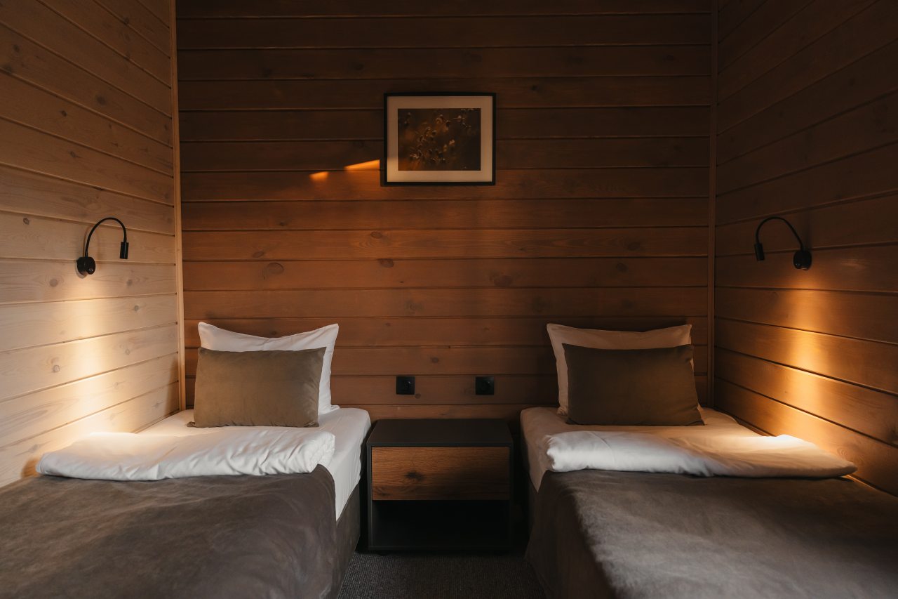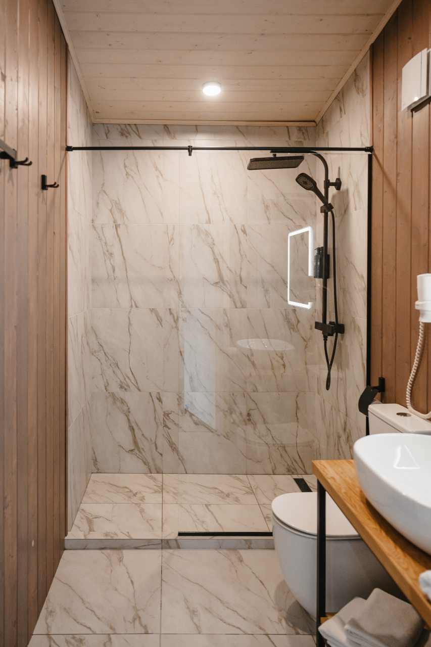 Заселились в домик и внутри нас порадовал стильный и ухоженный интерьер. Ванная комната класс, панорамные окна открывают красивый вид. В номере есть телевизор с различными приложениями. Спальни, хоть и небольшие, оказались уютными с комфортными матрасами. На территории обнаружили подогреваемый бассейн и рядом с ним мини-бар.
