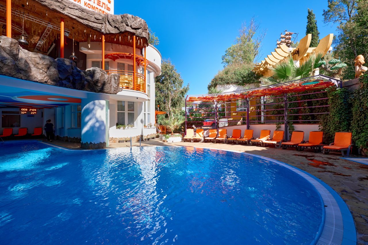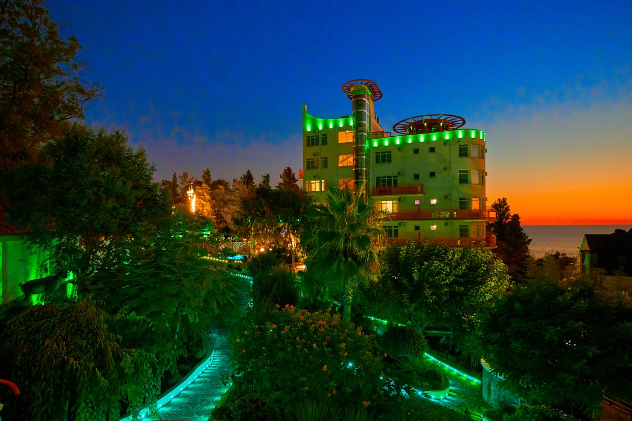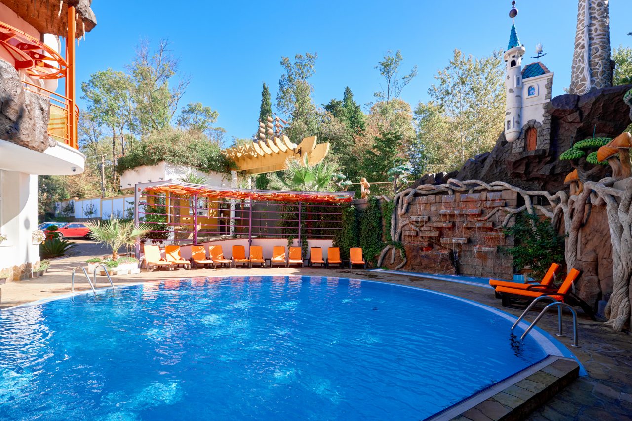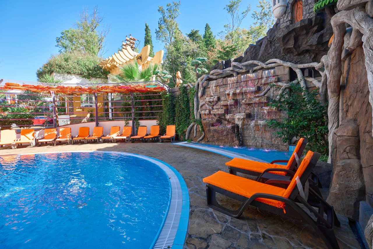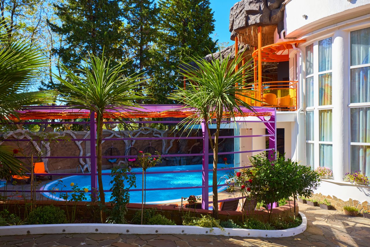 В этом году отдыхали в Сочи, и забронировали оригинальный отель в Якорной щели. Находится он в двух шагах от моря, и достоин прицельного внимания. Территория очень красивая, много декора, светящегося в темноте. Есть огромный бассейн на территории, лежаки. Номеров тоже достаточно, мы свой бронировали задолго до заезда. В нашем двухместном стандарте была предусмотрена даже небольшая зона кухни. Кровать большая с отличным матрасом. Можно и отдыхать, и кушать готовить. На территории функционирует и кафе с системой шведский стол. В общем все условия!