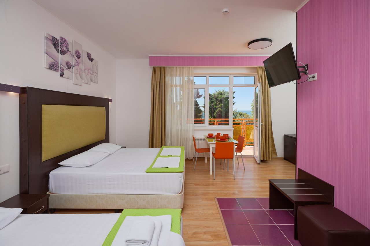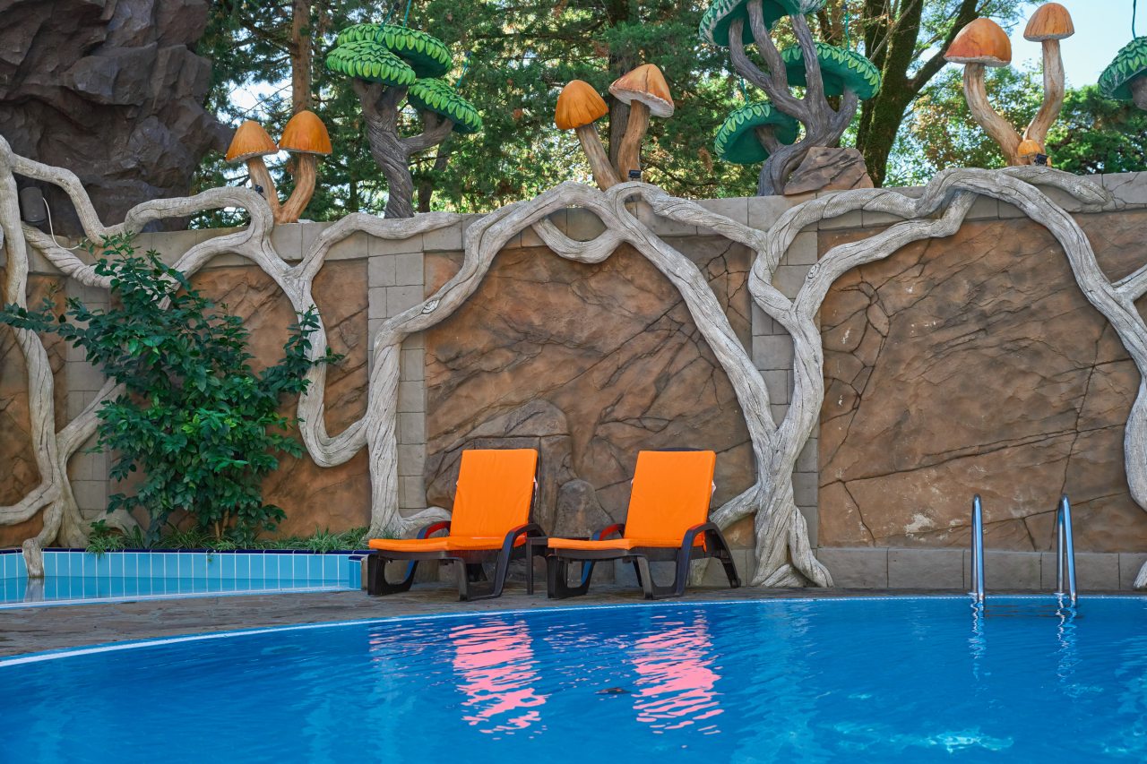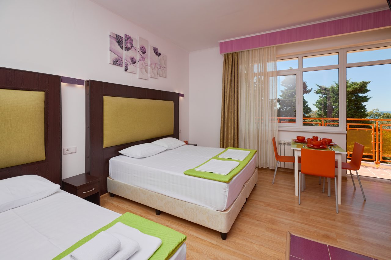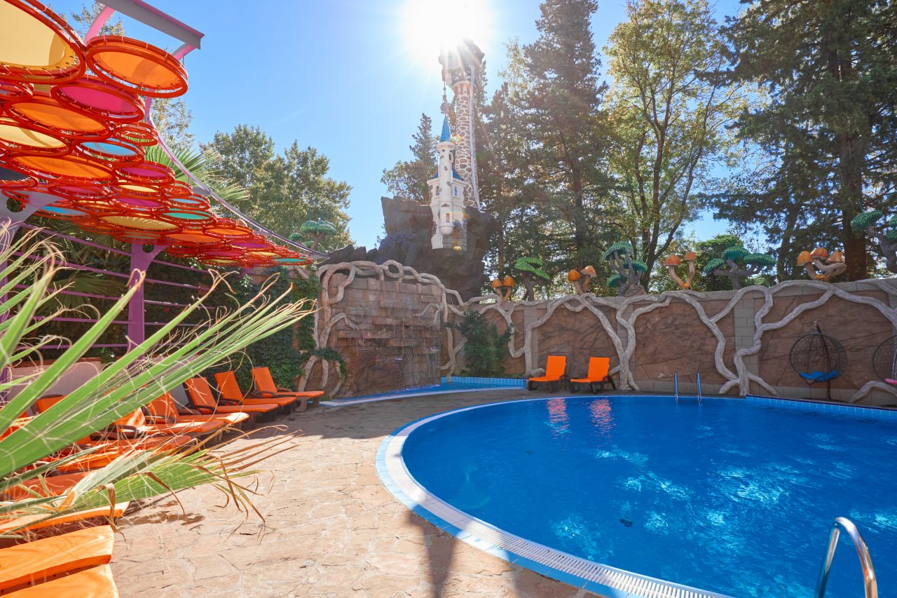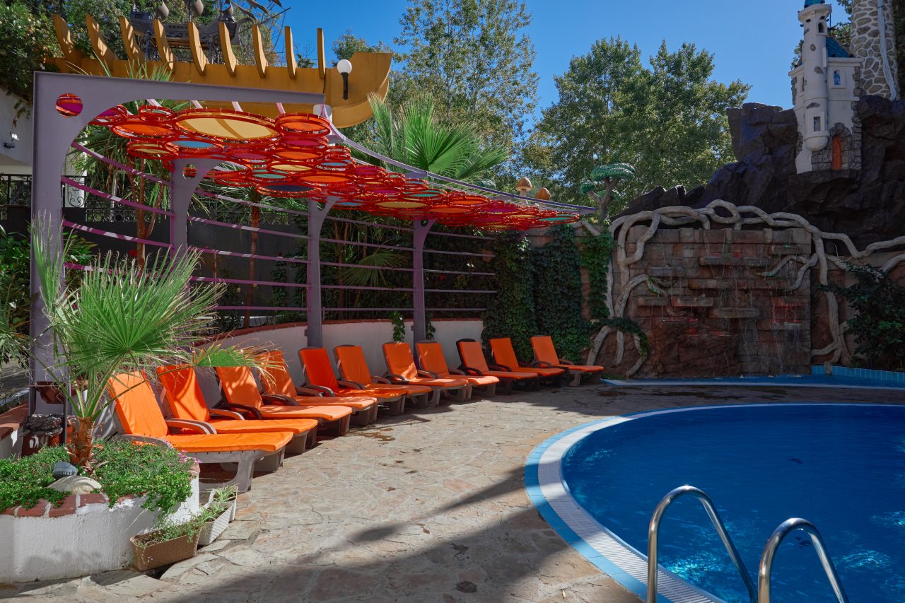 В этом году отдыхали в Сочи, и забронировали оригинальный отель в Якорной щели. Находится он в двух шагах от моря, и достоин прицельного внимания. Территория очень красивая, много декора, светящегося в темноте. Есть огромный бассейн на территории, лежаки. Номеров тоже достаточно, мы свой бронировали задолго до заезда. В нашем двухместном стандарте была предусмотрена даже небольшая зона кухни. Кровать большая с отличным матрасом. Можно и отдыхать, и кушать готовить. На территории функционирует и кафе с системой шведский стол. В общем все условия!